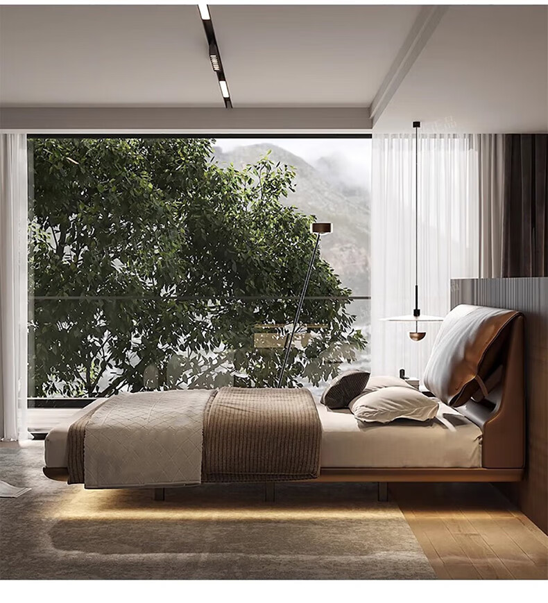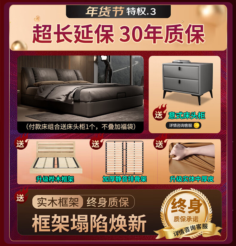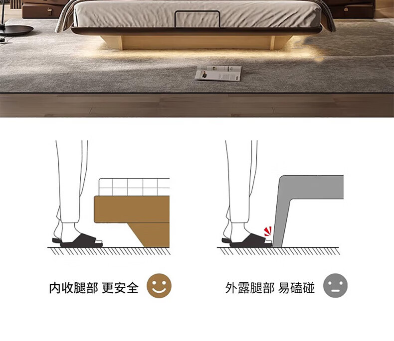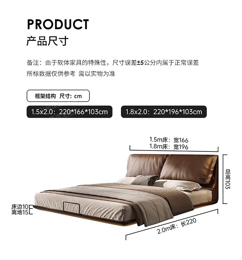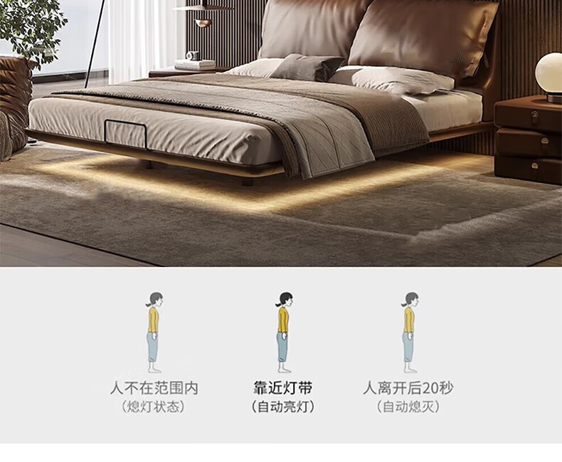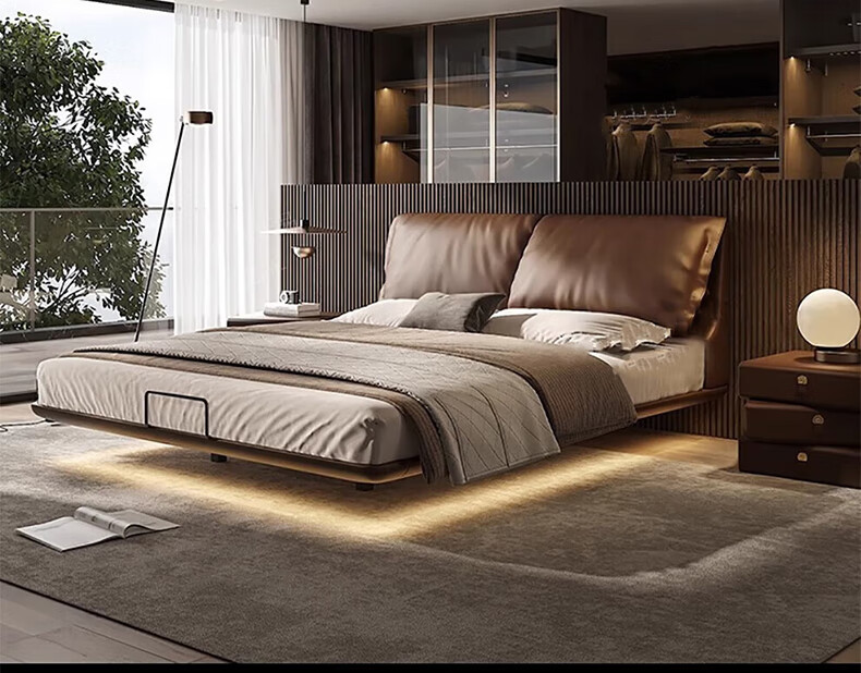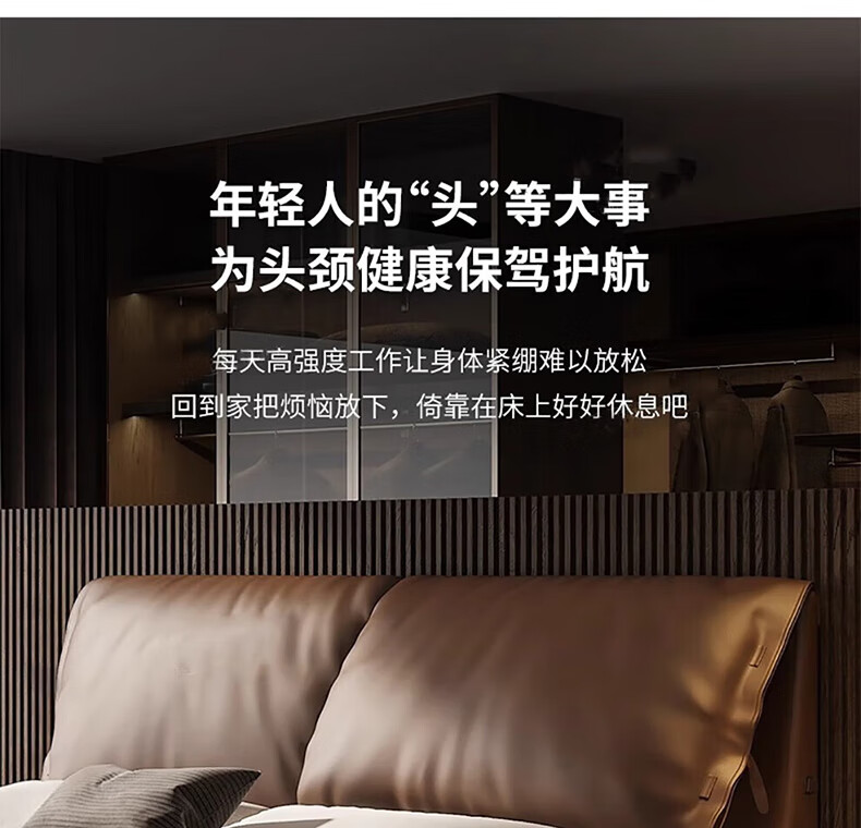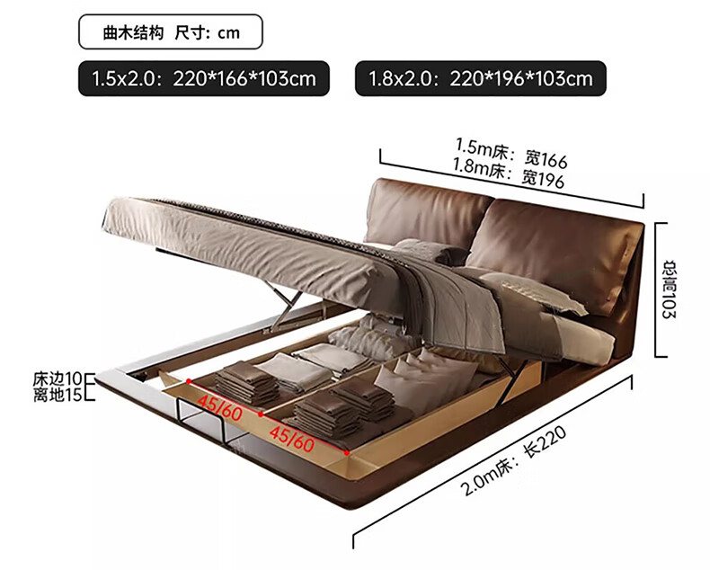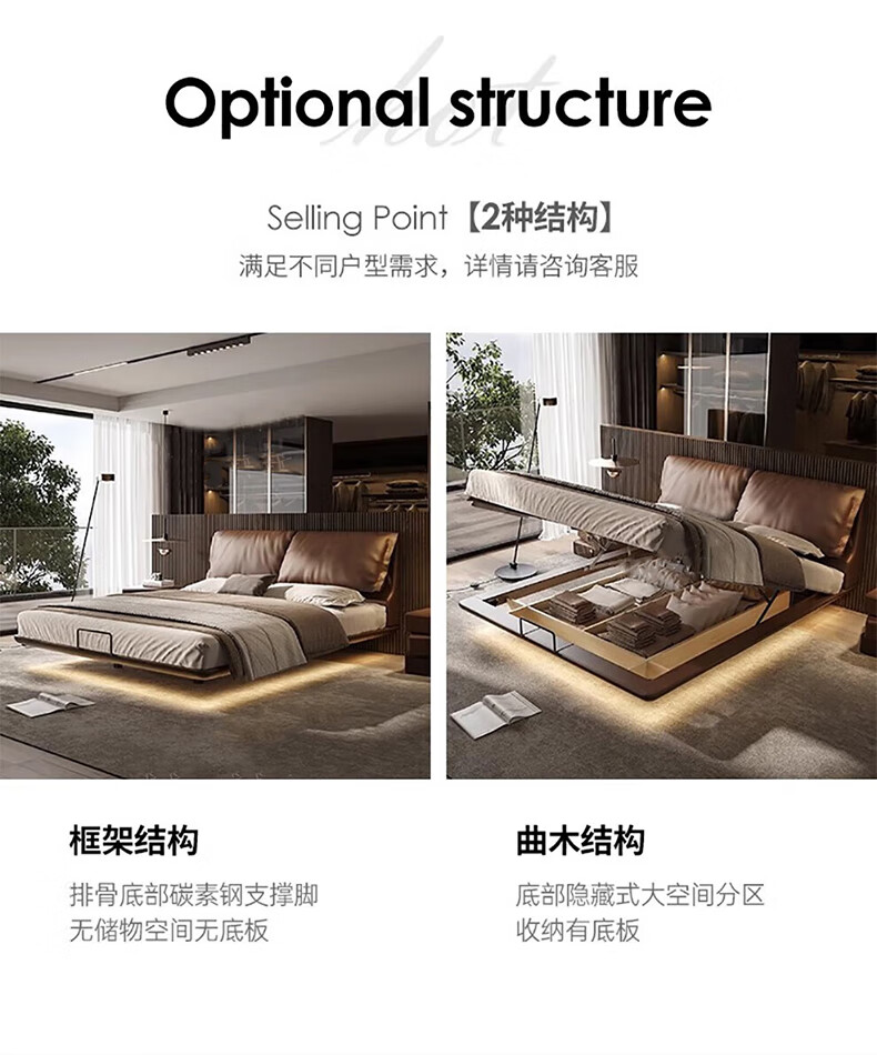 Madili Elephant Ear Leather Bed Italian Minimalist Master Bedroom King Bed Light Luxury Modern Simple Storage and Storage Drawers Leather Bed Store Quality First Layer Cowhide Single Bed 1.8m*2m High Box Structure Stable and Not Shaking