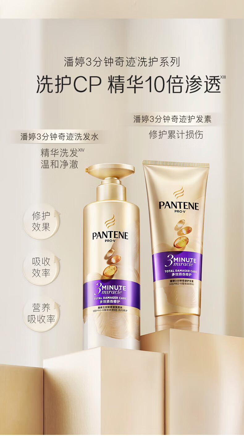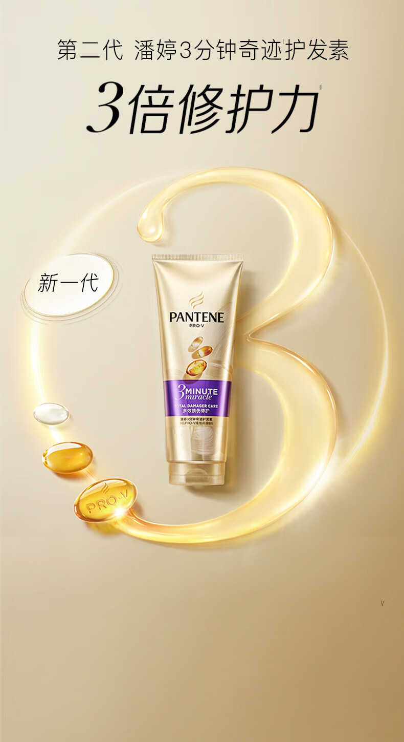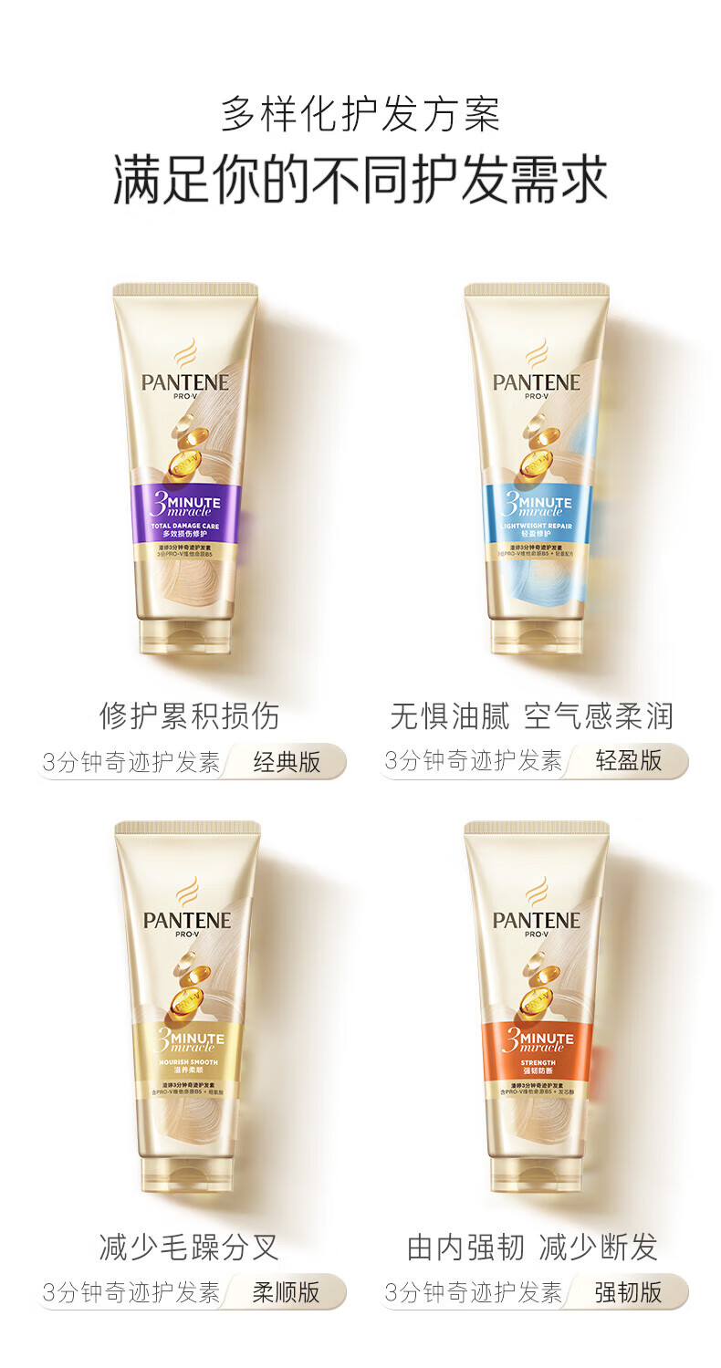 PANTENE Hair Mask 3 Minutes Three Minutes Miracle Conditioner Conditioning Essence Repairs Dyeing, Perm, Dryness, Improves Frizz, Multi-effect Damage 180ml+40ml