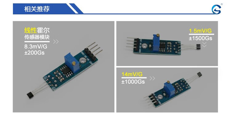Linear Hall sensor module with high sensitivity 8.3mV/G analog output to detect magnetic field strength sensing switch