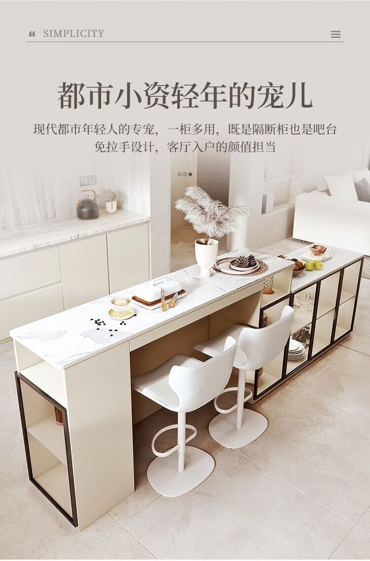 GUISENBAO Bar Table Rotating Sideboard Integrated Multifunctional Storage Wine Cabinet Partition Cabinet Modern Light Luxury Style Open Back Cabinet DD1 Cabinet White/Beige Available Slate Countertop