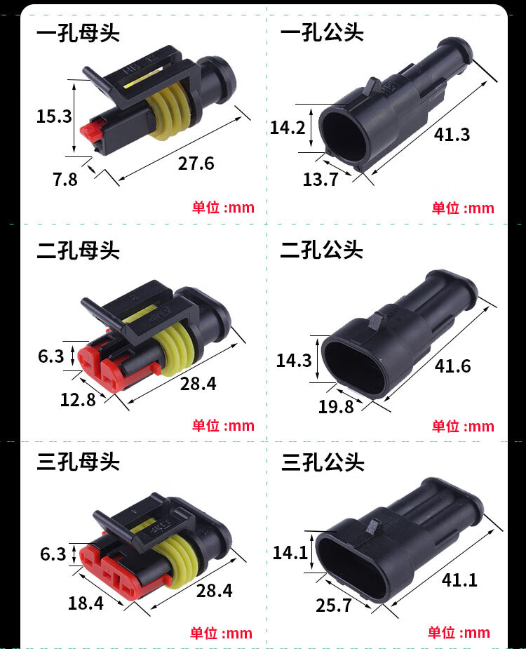 AMP car waterproof plug 3/4p male and female plug wire speed terminal block HID conversion connector connector two holes with line 25cm five sets