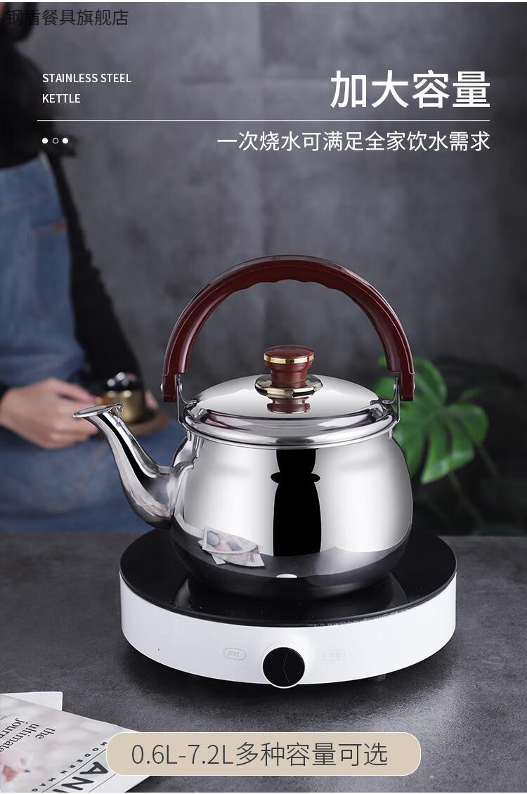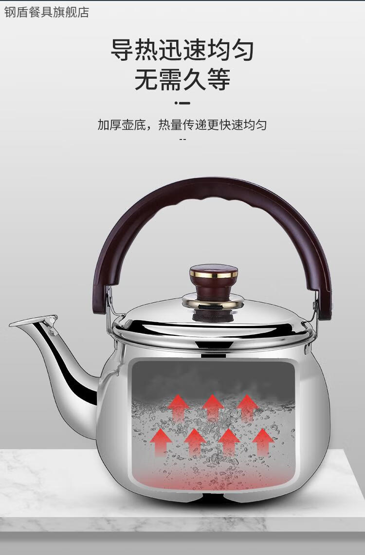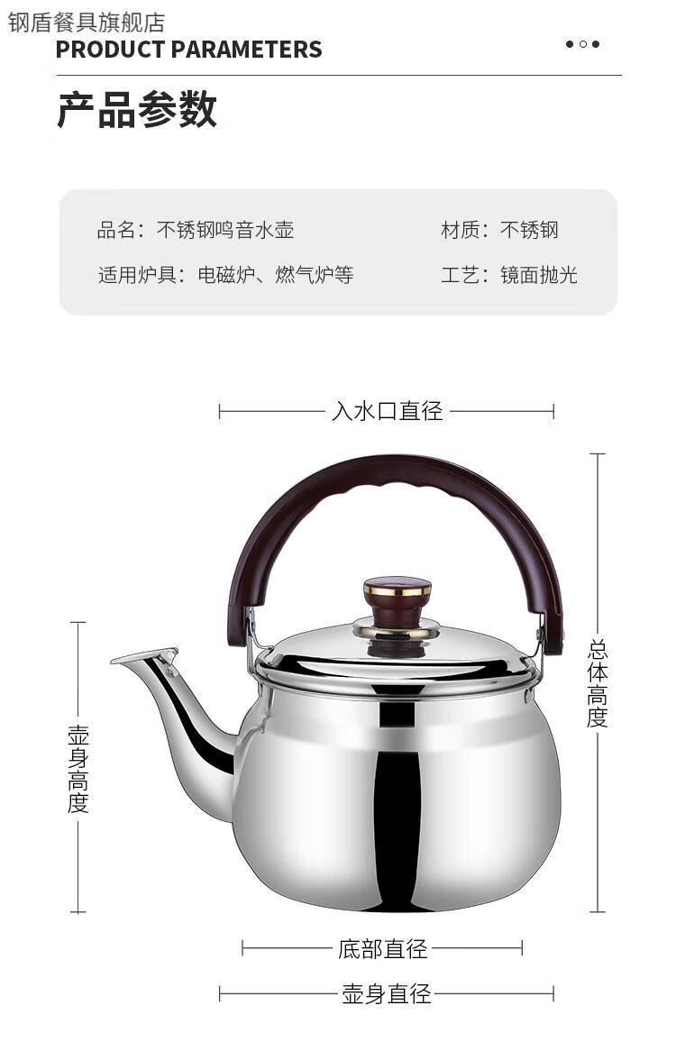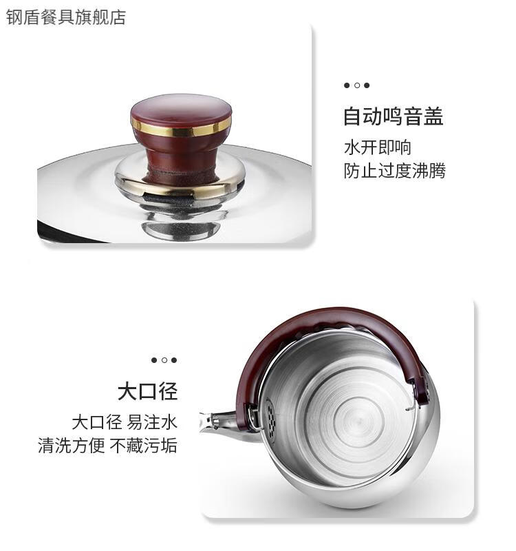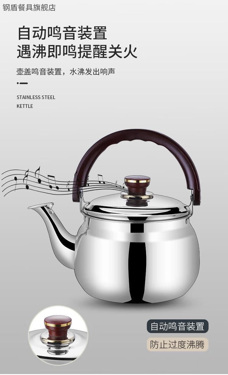 Steel shield stainless steel large capacity kettle gas thickened chime kettle gas induction cooker teapot household 0.6L 14CM (titanium kettle) (201 models) stainless steel thickened kettle