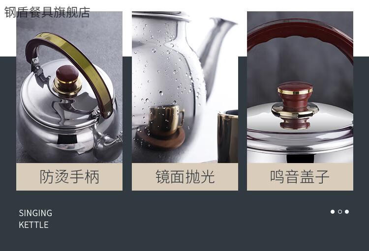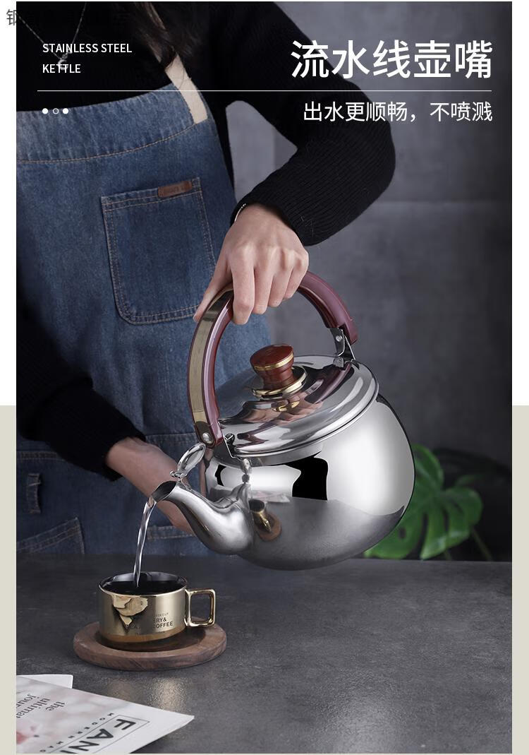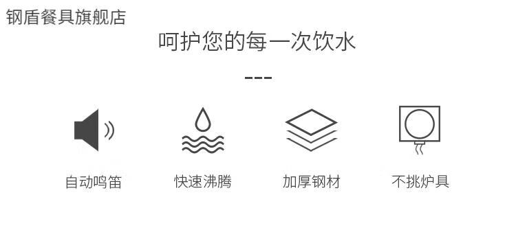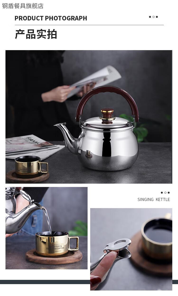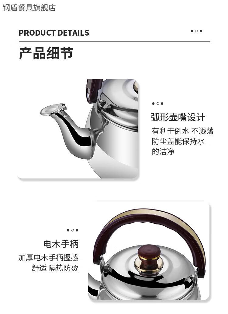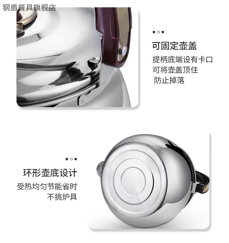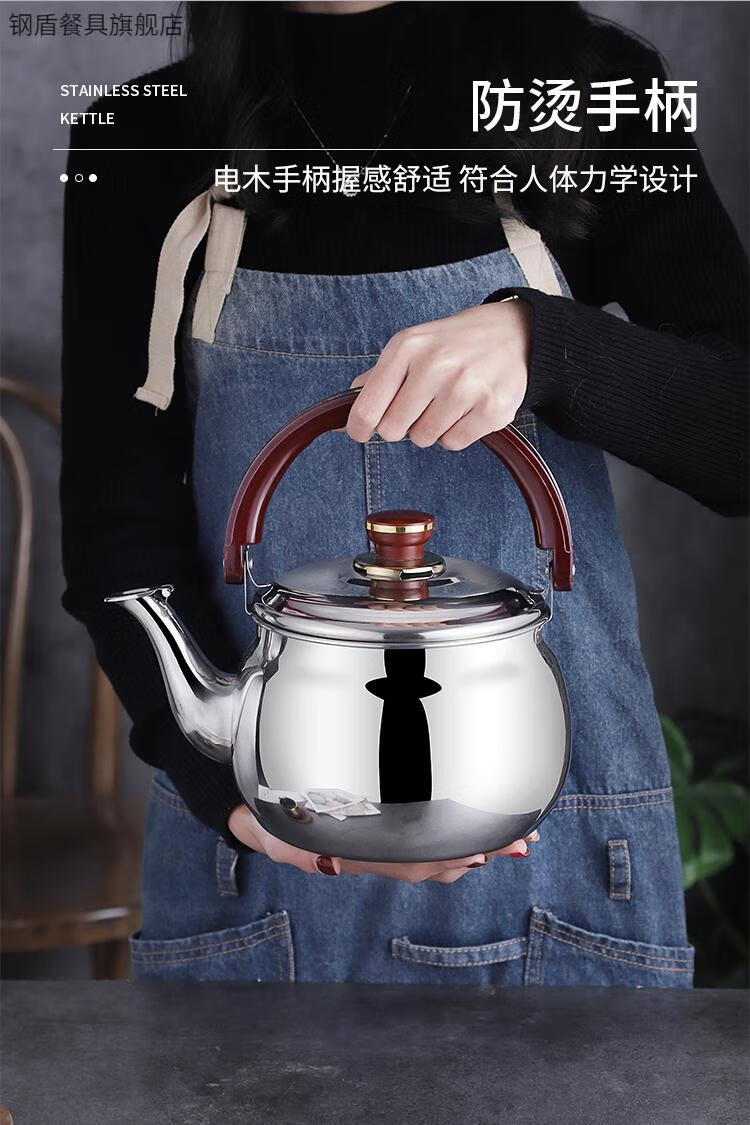 Steel shield stainless steel large capacity kettle gas thickened chime kettle gas induction cooker teapot household 0.6L 14CM (titanium kettle) (201 models) stainless steel thickened kettle