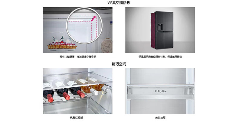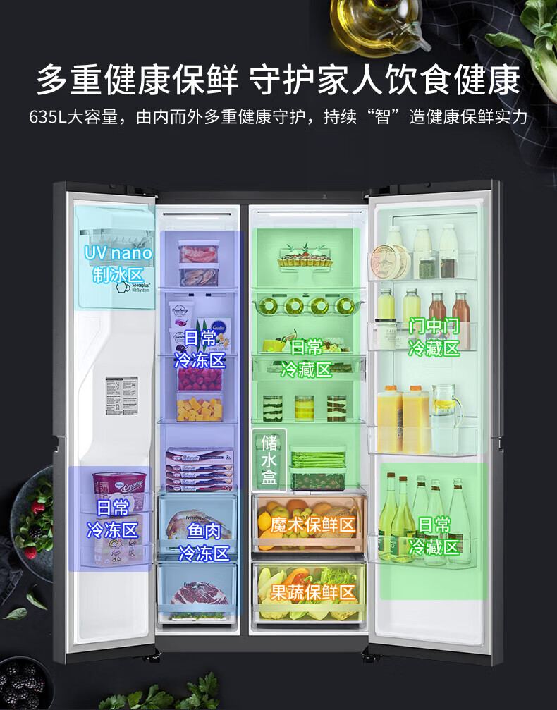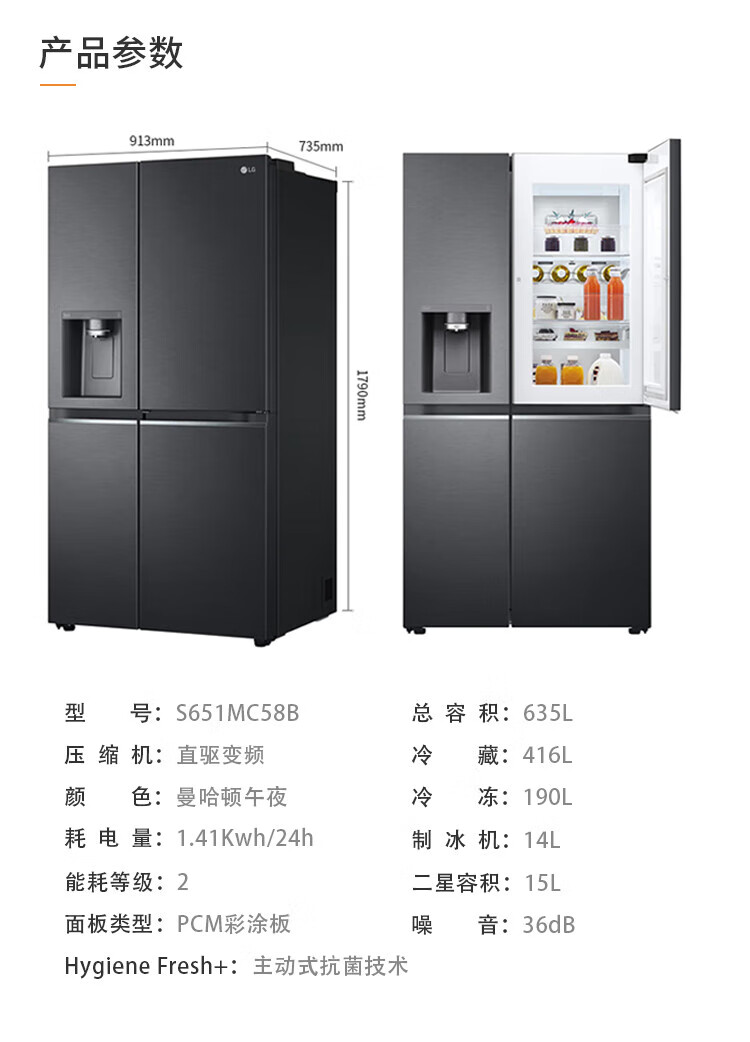 LG Refrigerator S651MC58B Intelligent Automatic Ice Maker 635L Air-cooled Variable Frequency Computer Temperature Control Ice-Cold Set LG S651MC58B Midnight Black