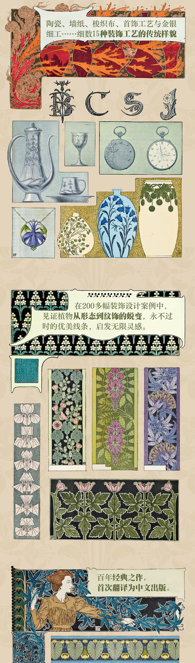 在时间洪流中沉淀百年的植物与工艺之书新艺术大师莫里斯·皮亚尔-韦纳伊创作集植物装饰艺术之大成陶瓷、墙纸、梭织布、首饰工艺与金银细工……细数15种装饰工艺的传统面目鸢尾、百合、蒲公英、常春藤和雪花莲……唤醒70种植物形态的大师手绘在200多幅装饰设计案例中,见证植物从形态到纹饰的蜕变,领会装饰艺术家的通才与返璞归真百年前,工业运动已经兴起,但世界远没有现在流转得那么快。一位秉持着“手工”与“自然”信念的艺术家,在老师的工作室里苦学多年、也独立创作多年后,决定为手工艺撰写一本书,为以自然为归属的装饰艺术撰写一本总结性的著作。他希望有人能够记住在工业之前手工艺的面目,更希望他们一代一代之间传承的、对家与自然的信念在加速演变的世界中仍能为人的生活带来宁静和滋养。他行走在乡间、在庭院,细细描摹自己看到的每一株植物:蒲公英、常春藤、铁线蕨、白芷……从各种角度描写它们的纹理、色泽、形态,叶子、花苞、花蕊等