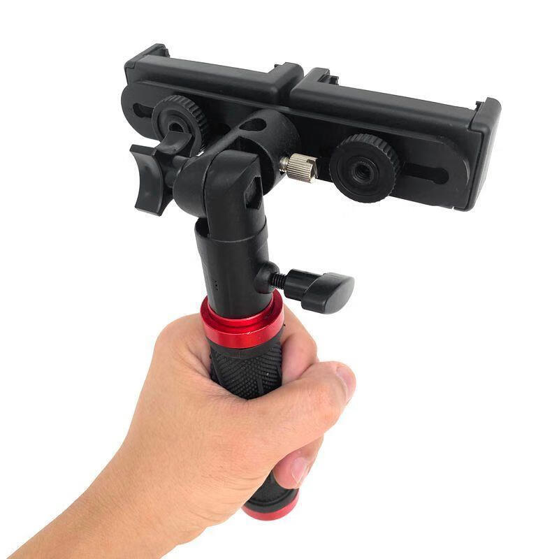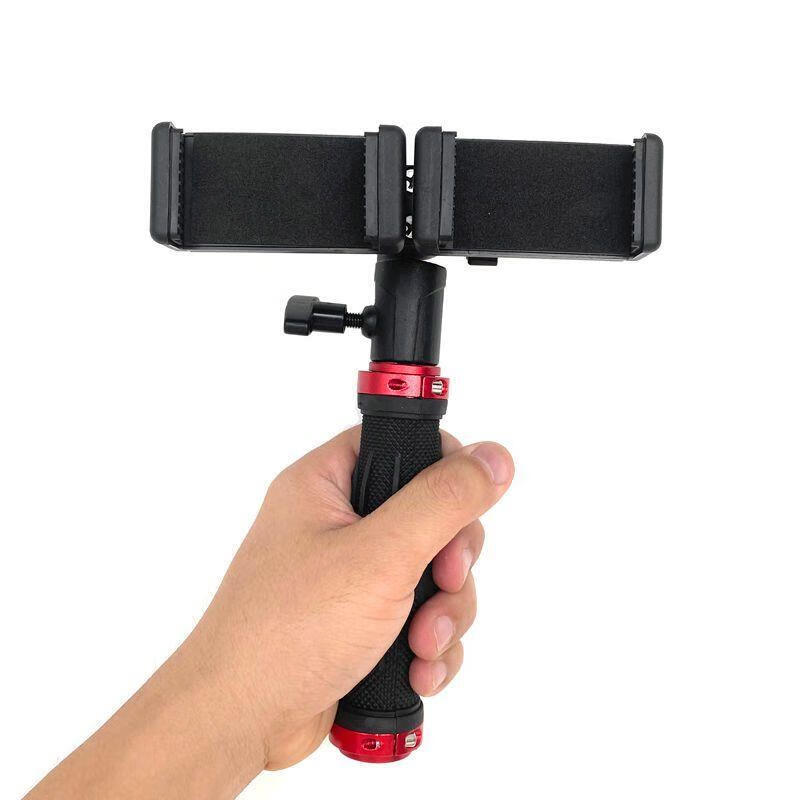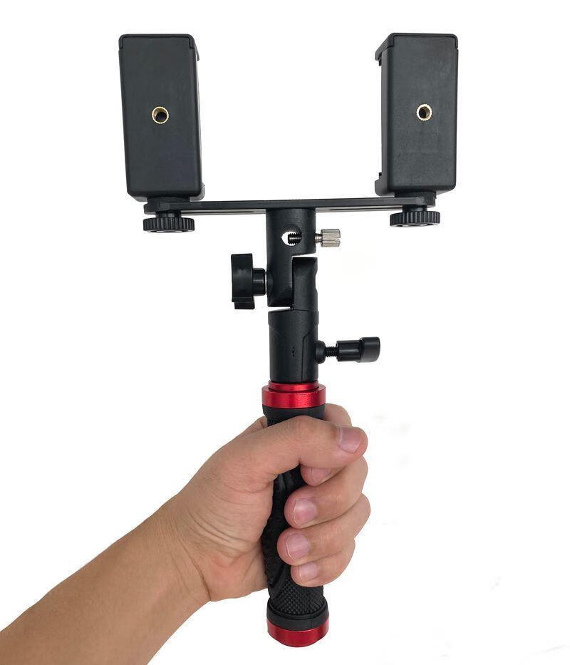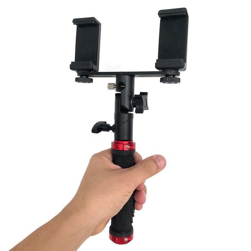Svenwan is suitable for outdoor handheld dual mobile phone holders, one-to-two shooting live broadcast brackets, desktop tripods, portable two-position customized models, customized models, two-position cameras + red handheld handle