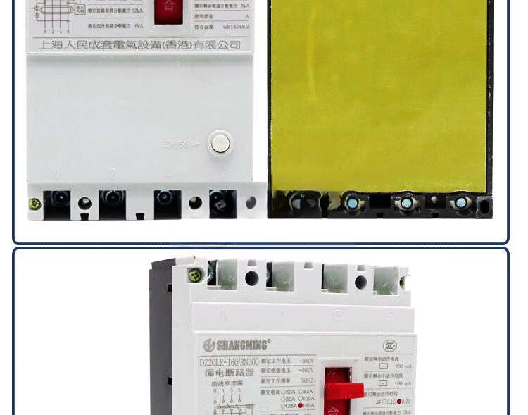 Suitable for leakage circuit breaker DZ20L-160A/4300 three-phase four-wire switch 3P+N 250A