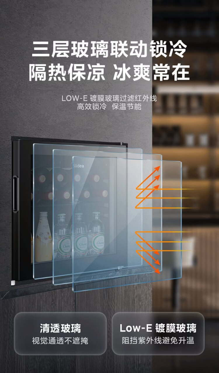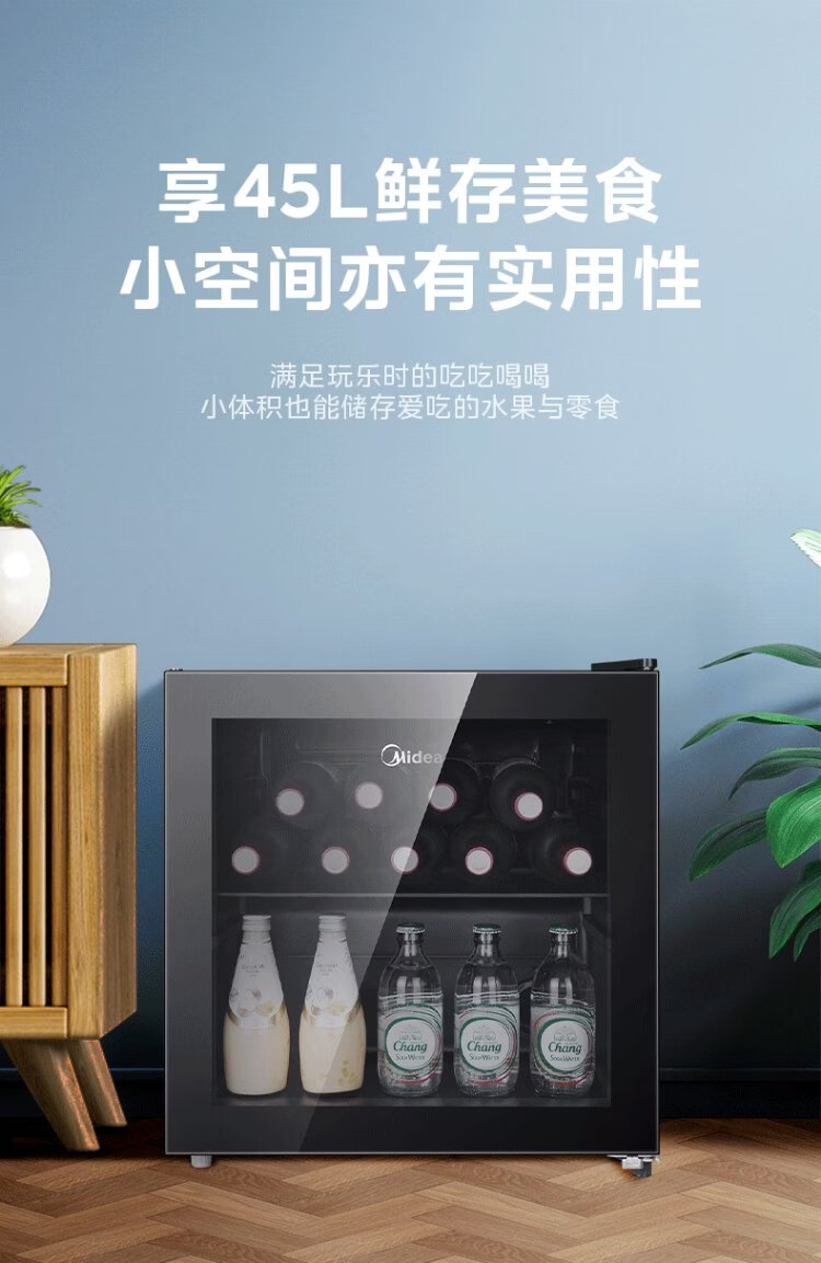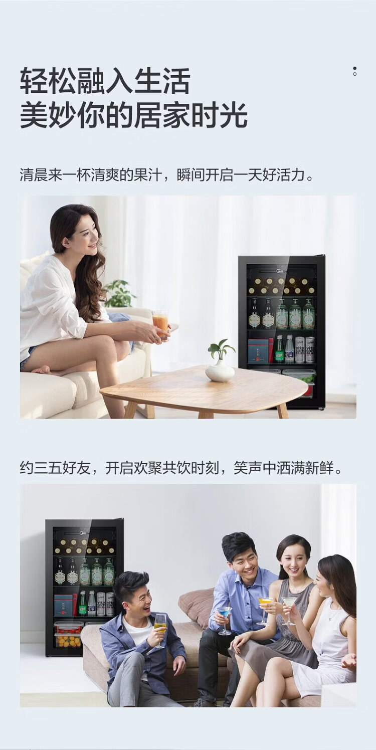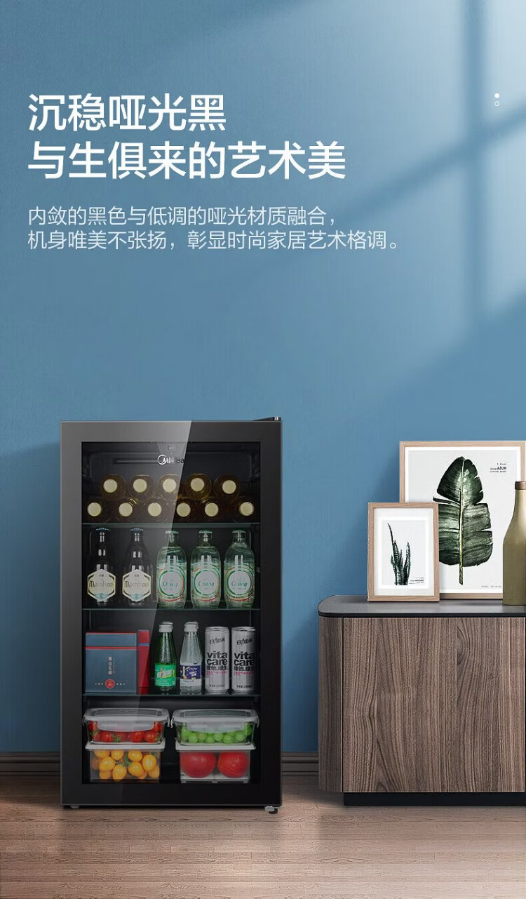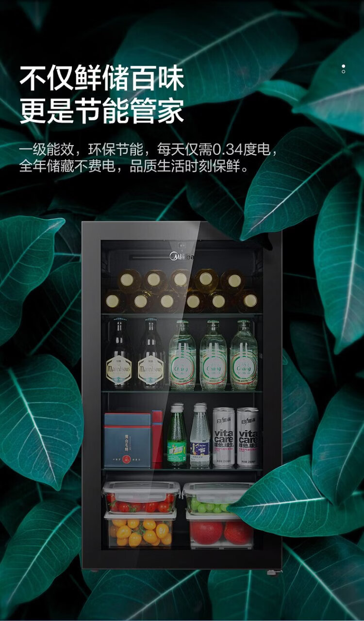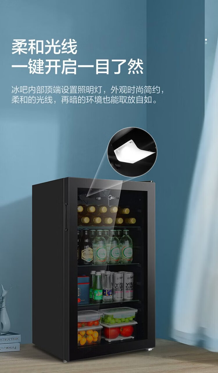 Midea Ice Bar Household Wine Cabinet 95L Small Refrigerator 30-Day Guaranteed Price Level 1 Energy Efficiency Display Cabinet Refrigerator Beverage Cabinet Single Door Fresh Cabinet Office Living Room Tea Cabinet Level 1 Energy Efficiency | Desk Built-in Dual Use | 95L Black