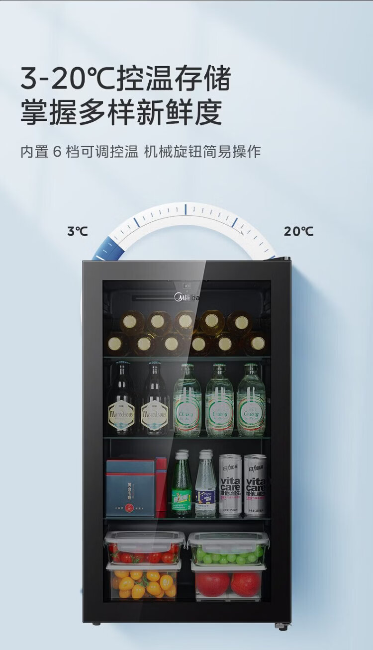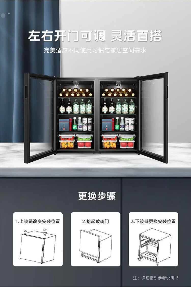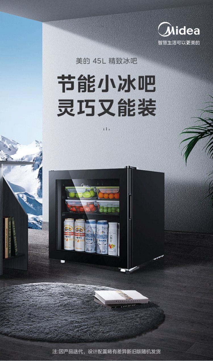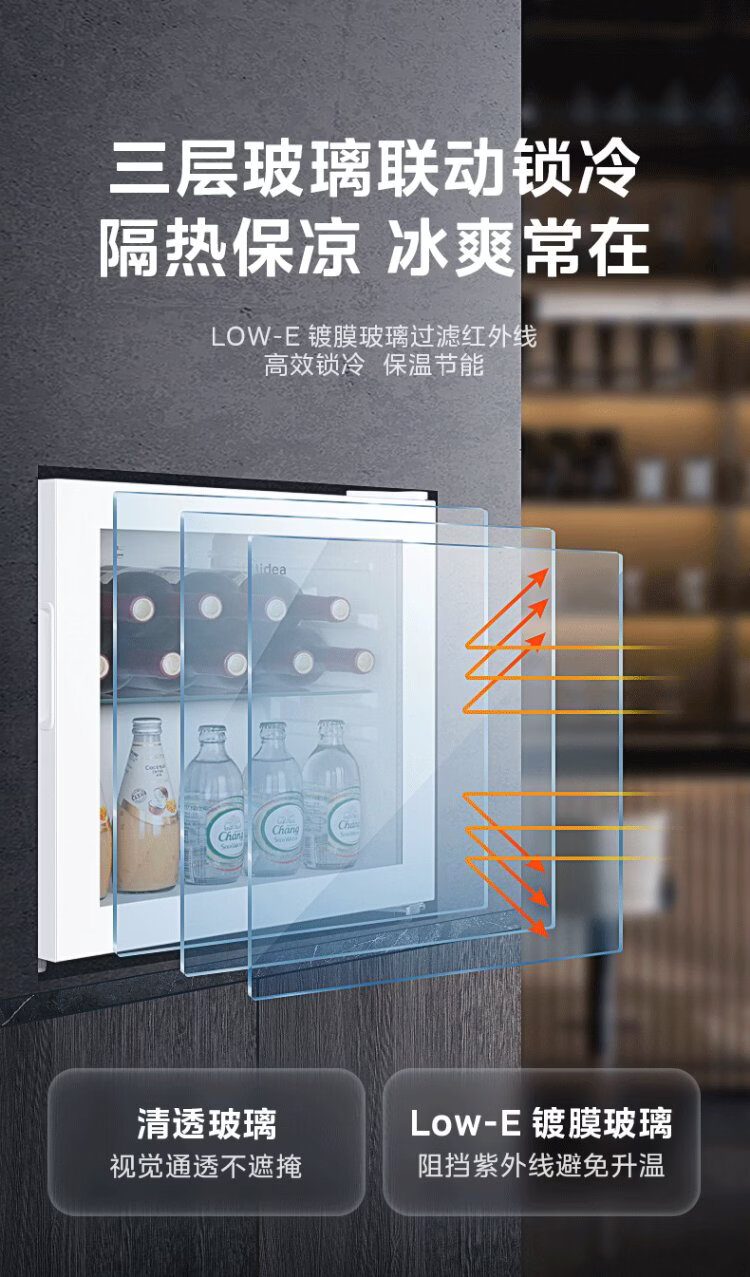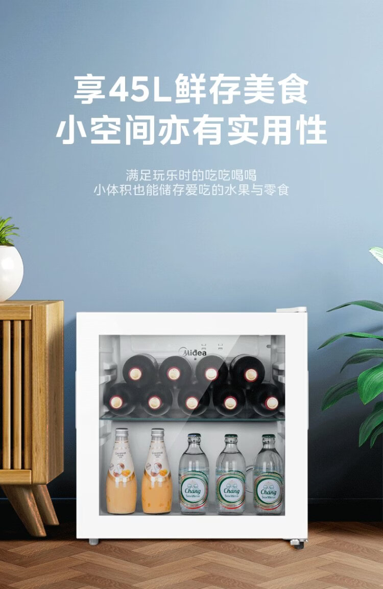 Midea Ice Bar Household Wine Cabinet 95L Small Refrigerator 30-Day Guaranteed Price Level 1 Energy Efficiency Display Cabinet Refrigerator Beverage Cabinet Single Door Fresh Cabinet Office Living Room Tea Cabinet Level 1 Energy Efficiency | Desk Built-in Dual Use | 95L Black