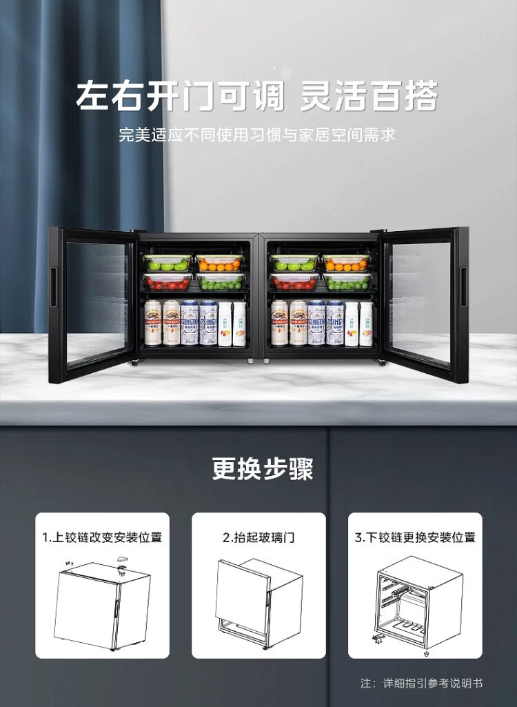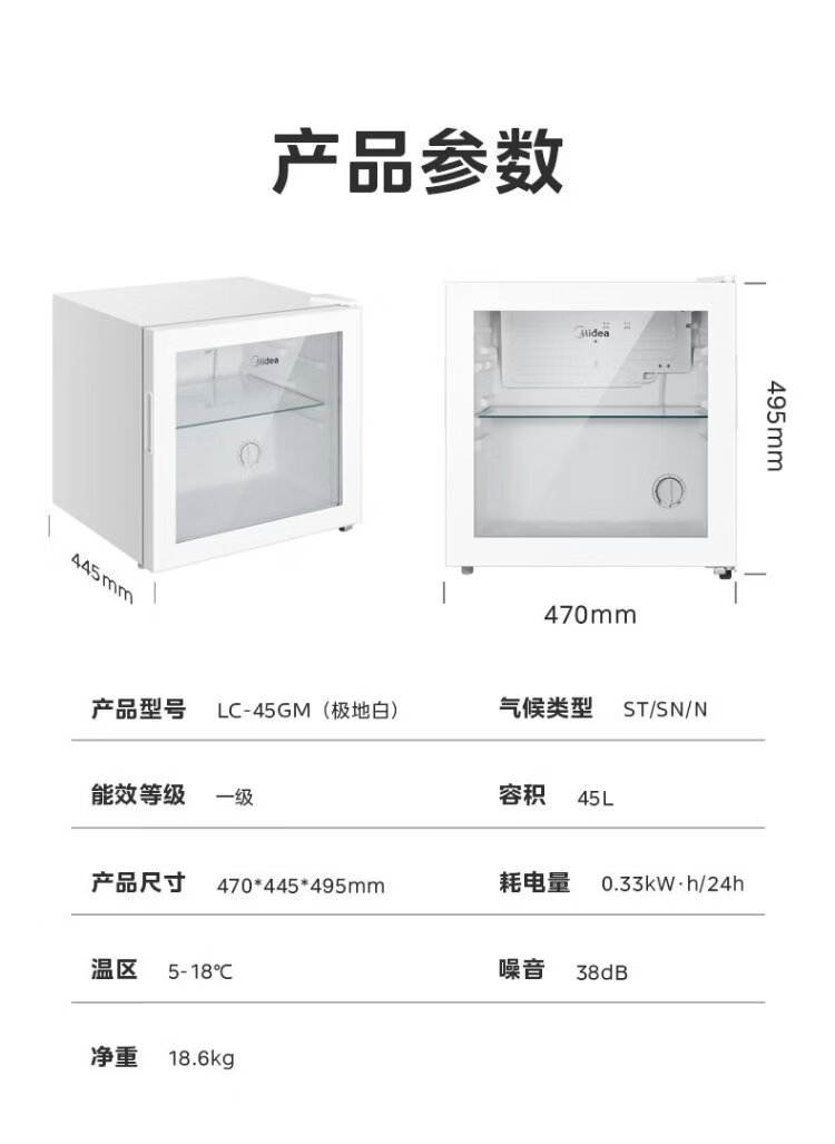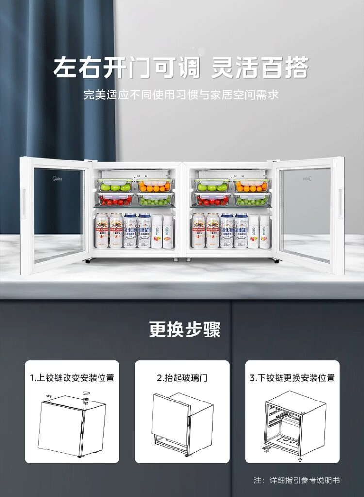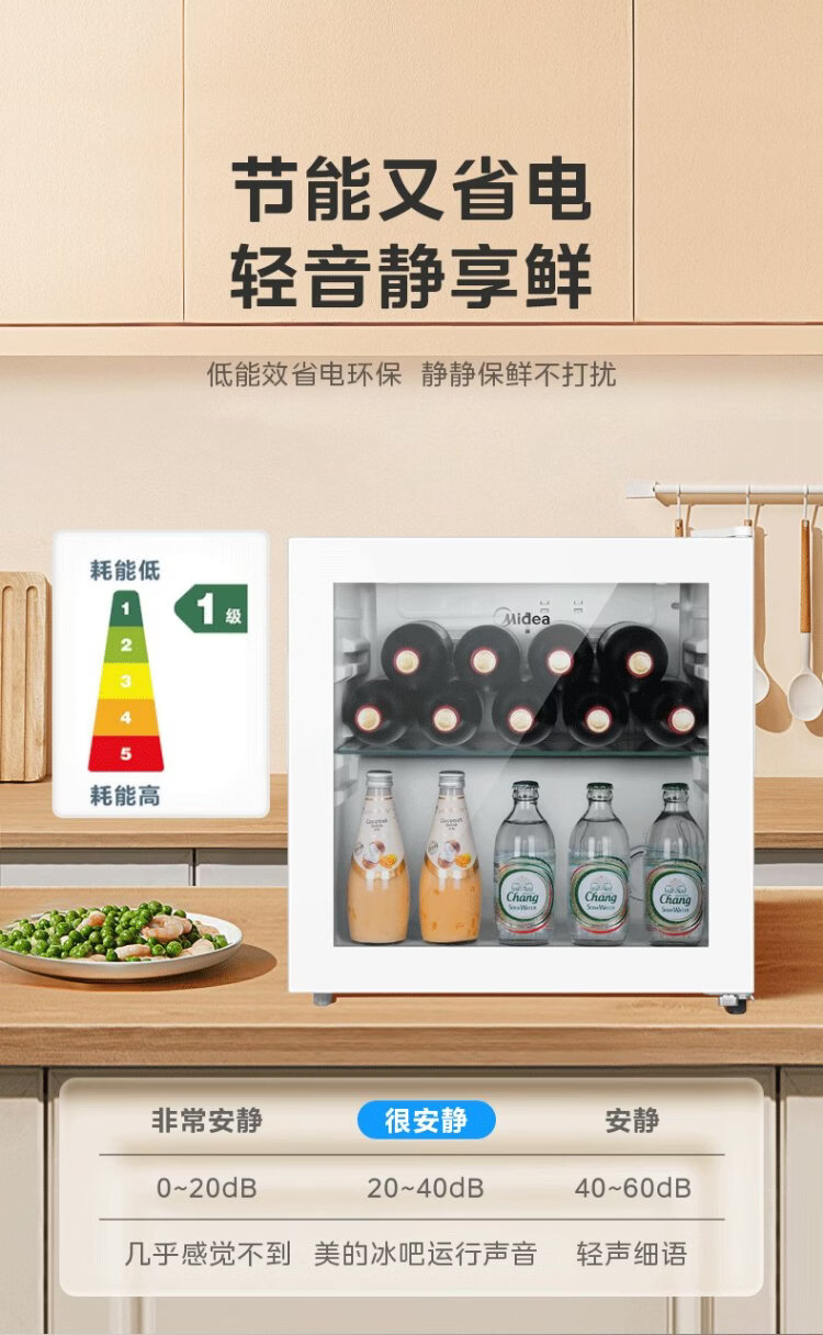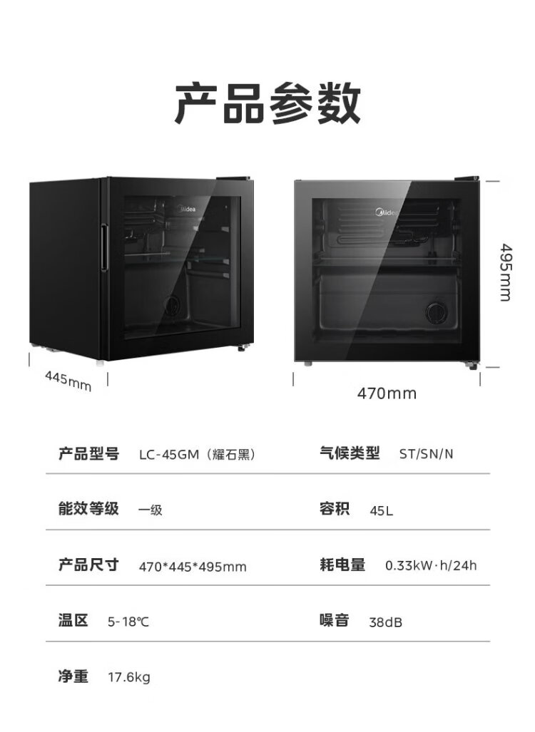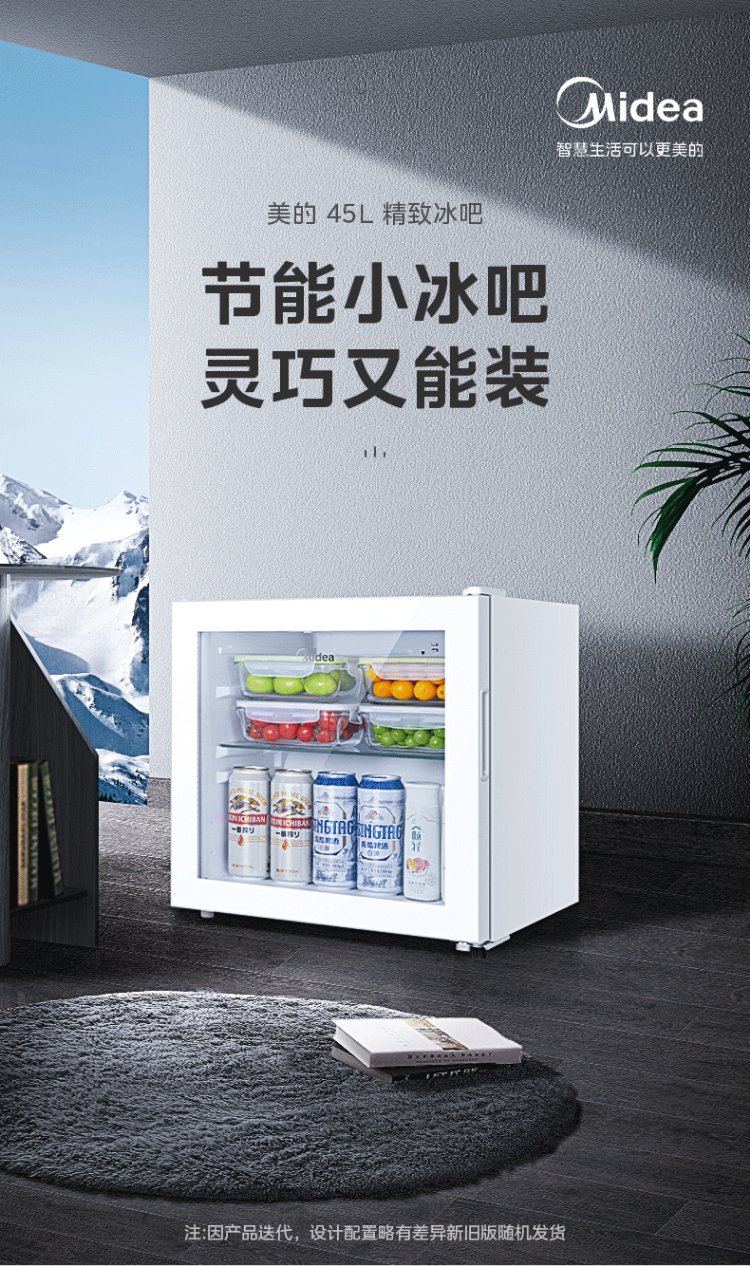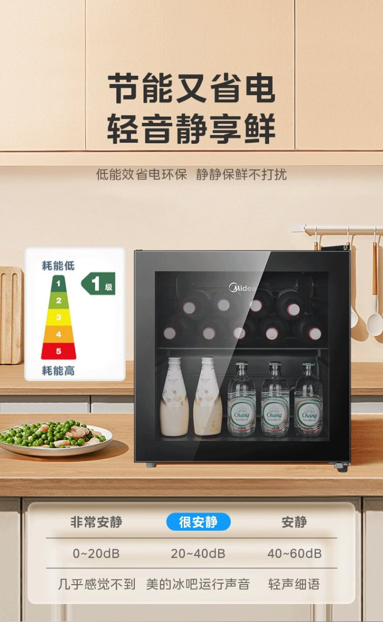 Midea Ice Bar Household Wine Cabinet 95L Small Refrigerator 30-Day Guaranteed Price Level 1 Energy Efficiency Display Cabinet Refrigerator Beverage Cabinet Single Door Fresh Cabinet Office Living Room Tea Cabinet Level 1 Energy Efficiency | Desk Built-in Dual Use | 95L Black