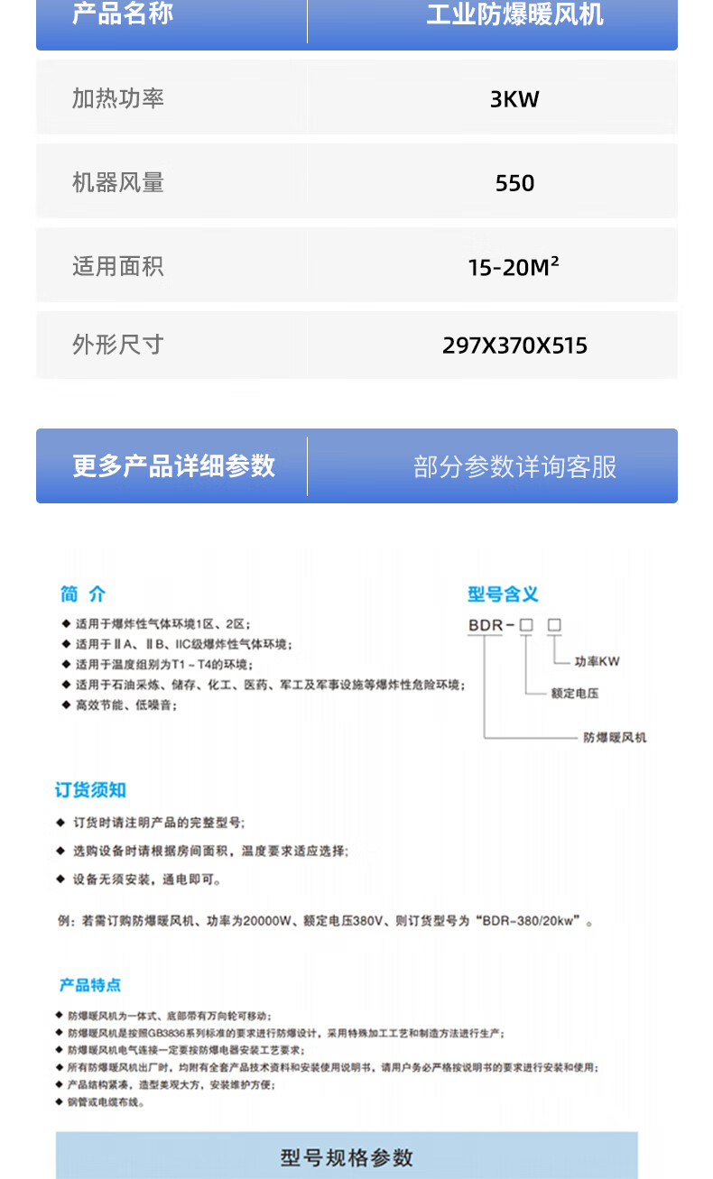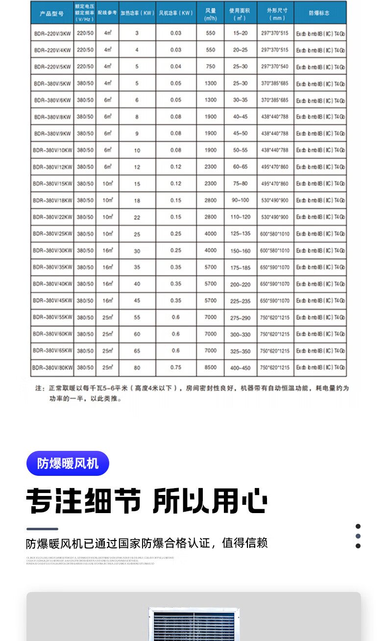 Xinhe explosion-proof electric heater industrial high-power paint room chemical hot air stove furniture factory drying heater oil mining and other flammable and explosive environments use BDR-380V/5KW customized 7