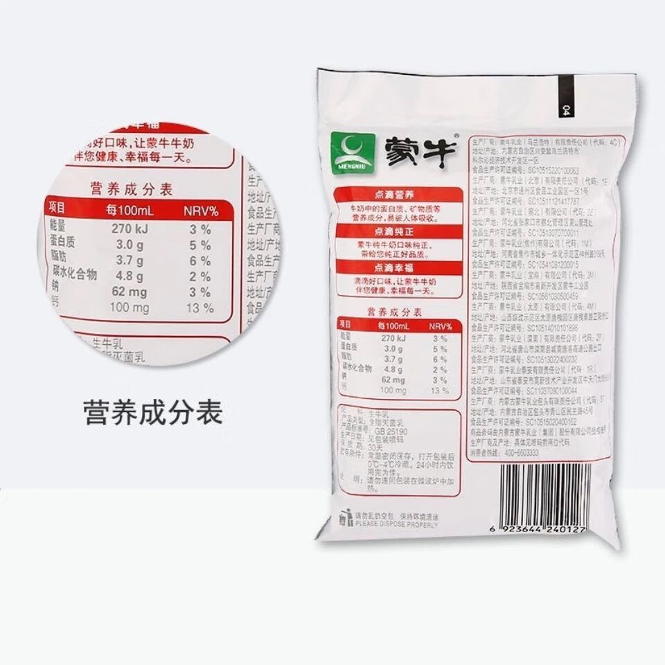 Mengniu pure milk Baileys bag 200mL/bag of milk Baileys bag*16 bags