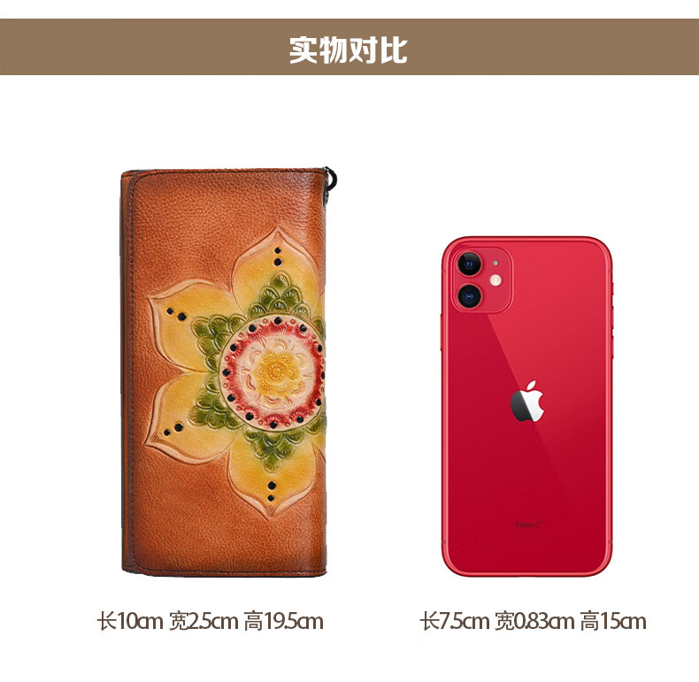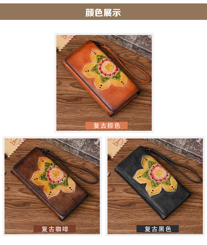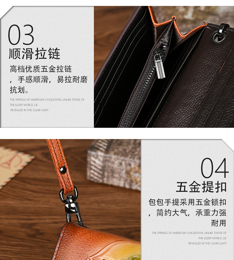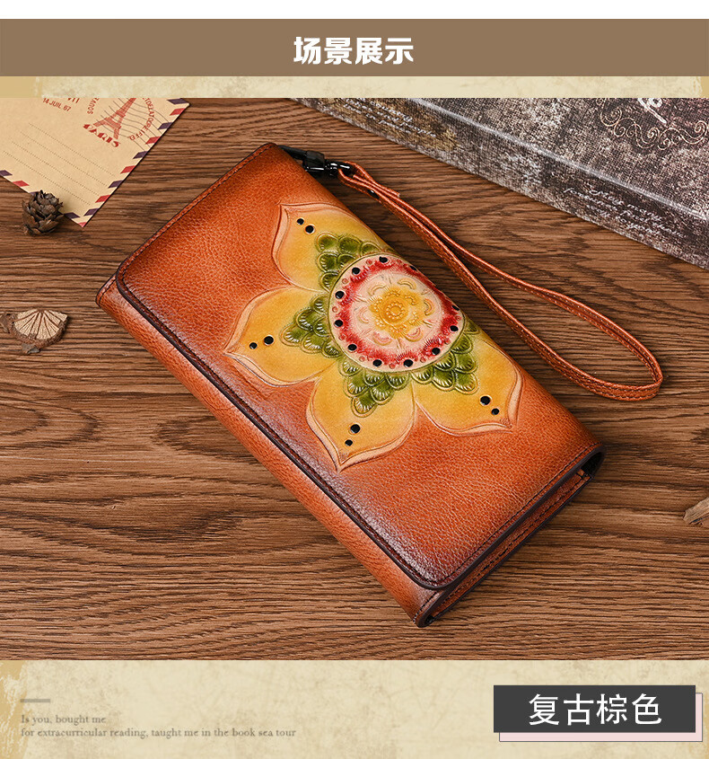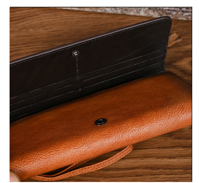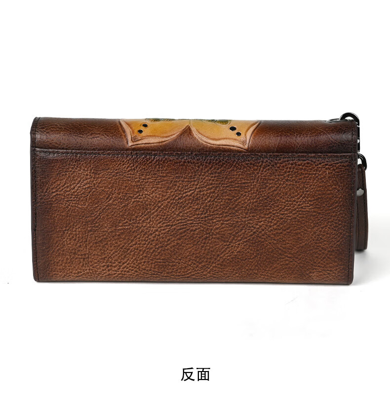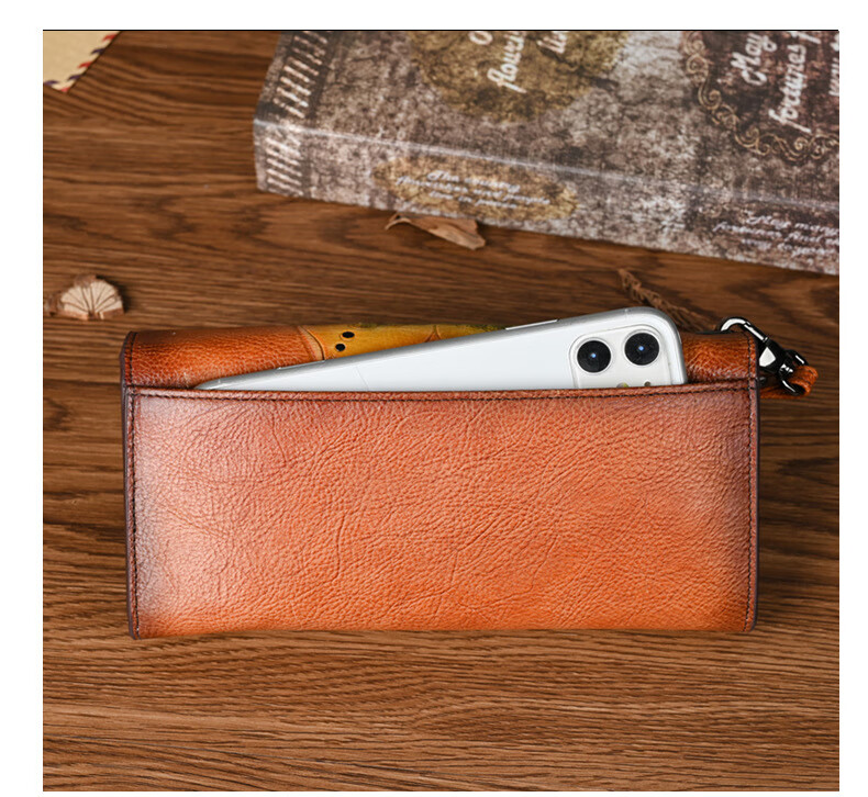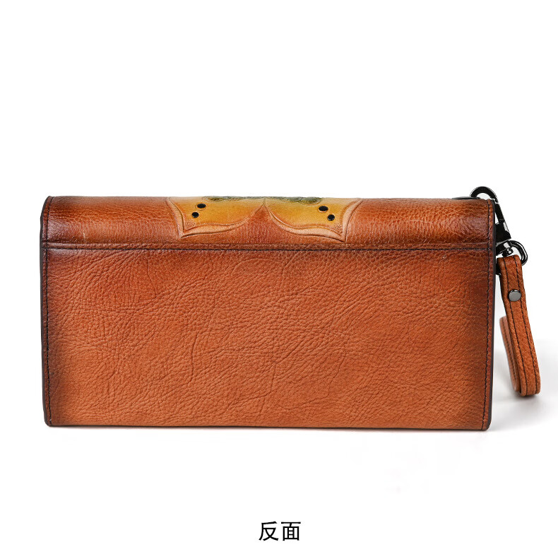 Orpheus Original Retro Clutch Handmade Long Clip Long Women's Wallet Genuine Leather New Cowhide Wallet Women's Mobile Phone Bag Women Brown
