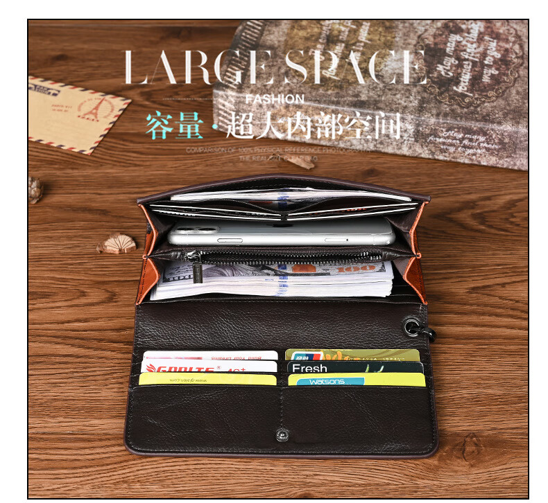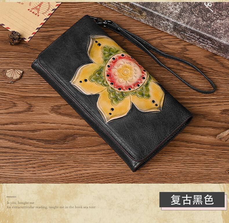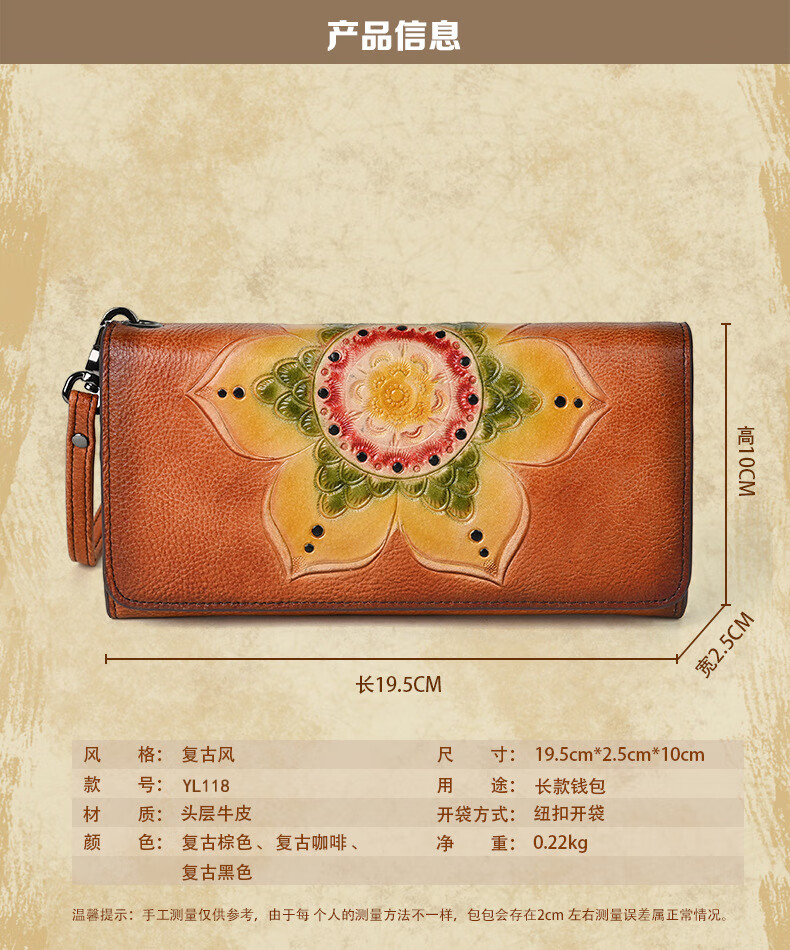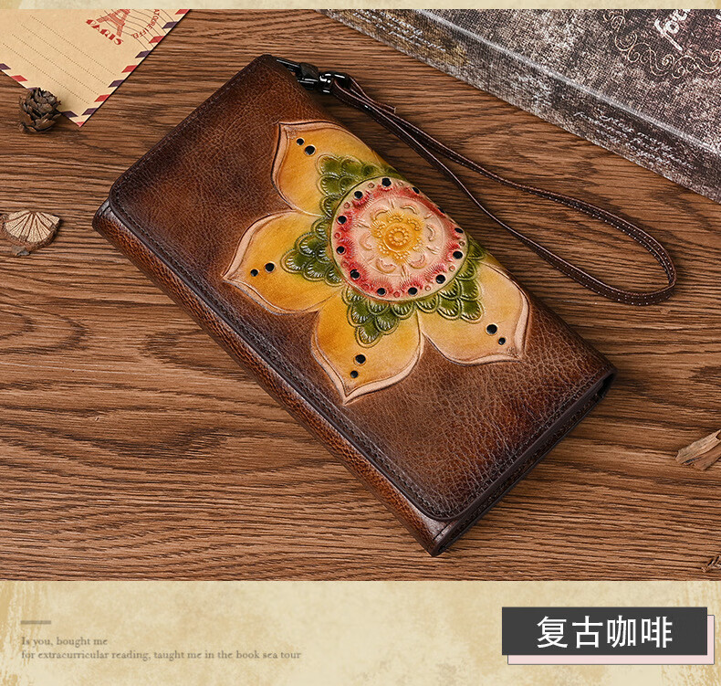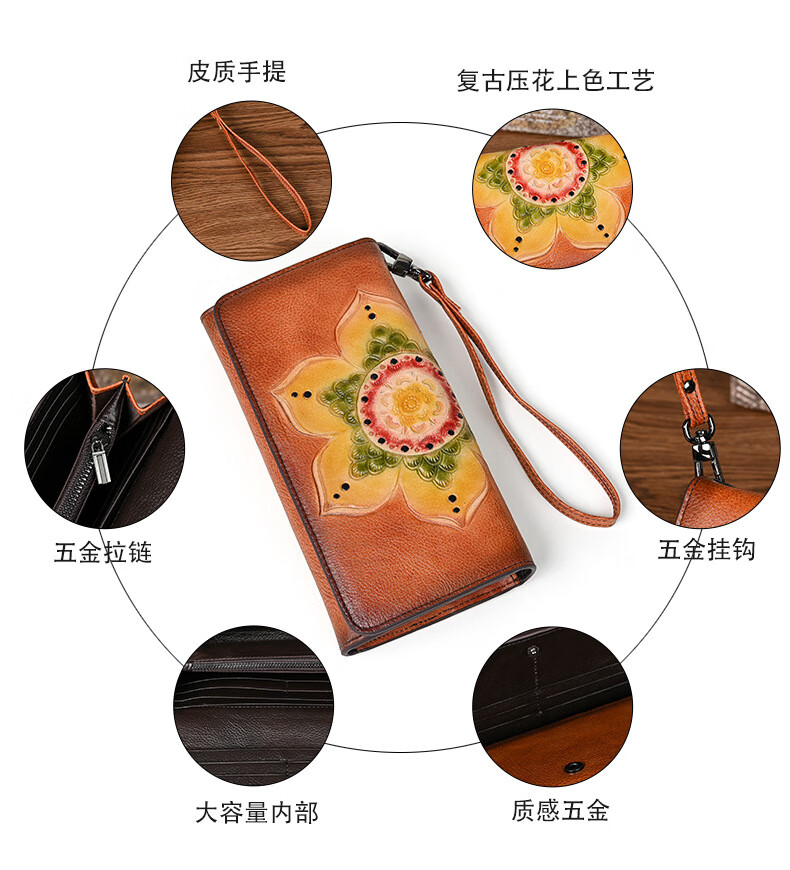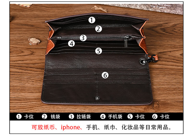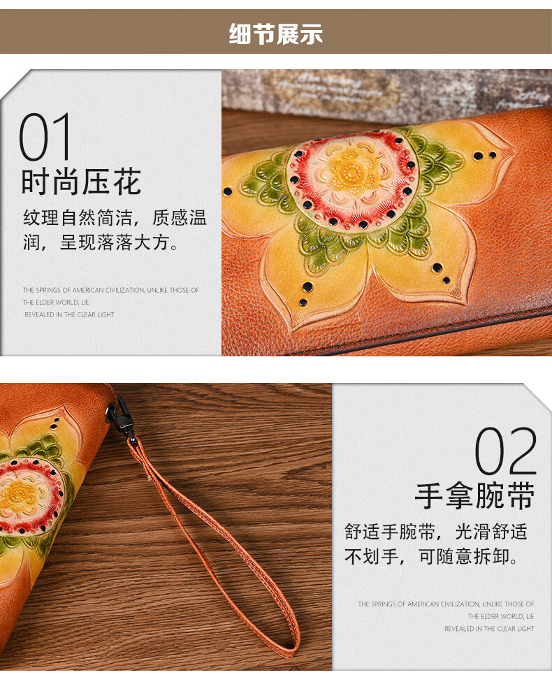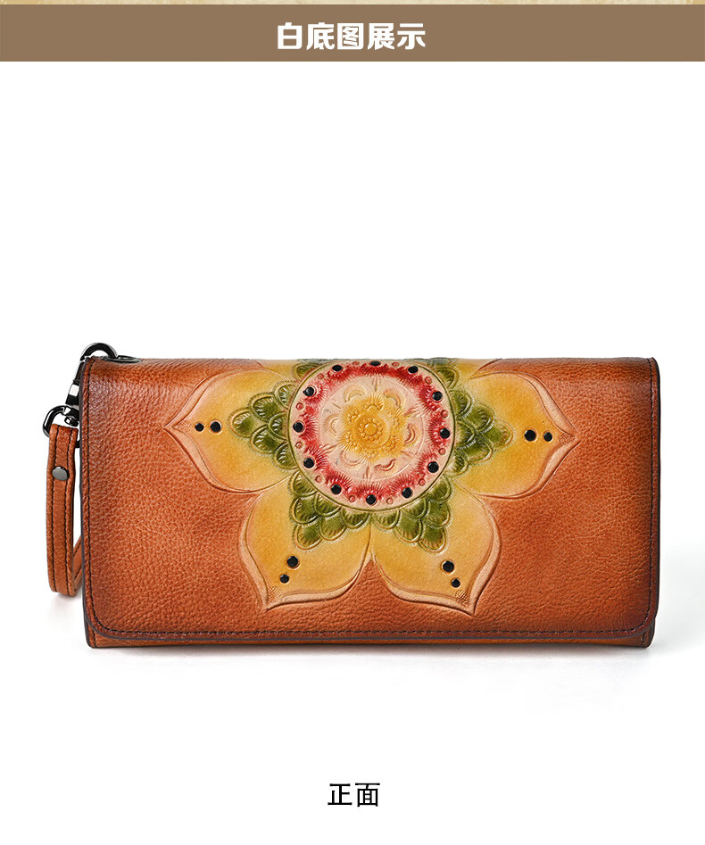 Orpheus Original Retro Clutch Handmade Long Clip Long Women's Wallet Genuine Leather New Cowhide Wallet Women's Mobile Phone Bag Women Brown