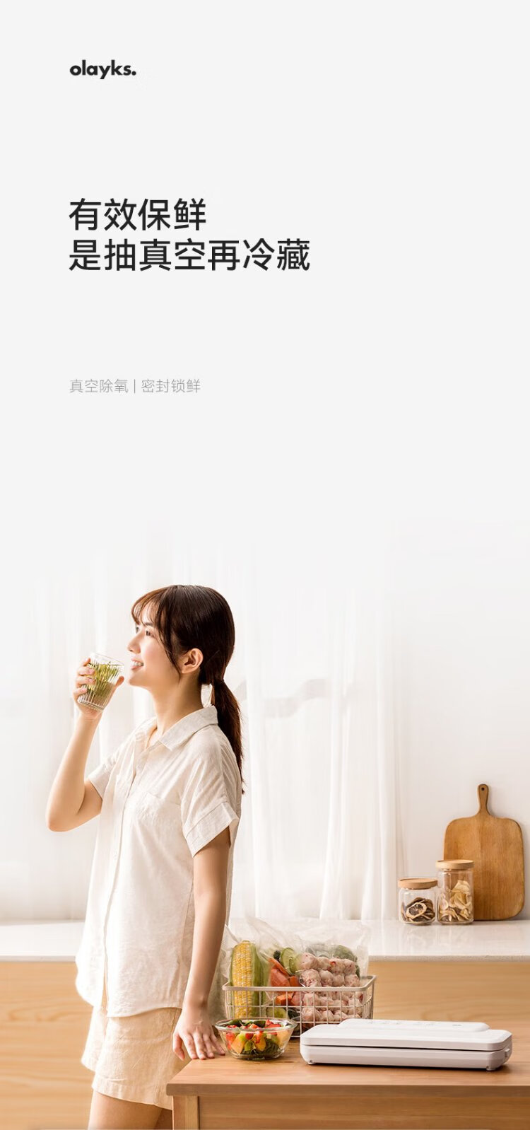 Olek instant vacuum sealing machine small household vacuum machine food packaging sealing machine plastic sealing machine smart model (with 2 rolls of large sealing bags)