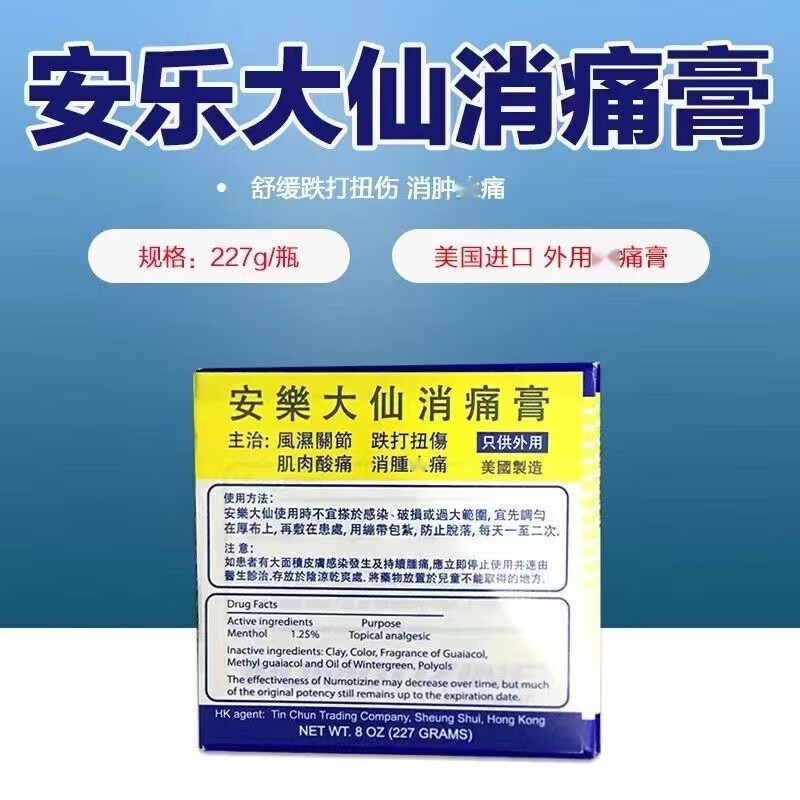 Anle Daxian Hong Kong imported original Anle Daxian anti-inflammatory ointment 228g, bruises, sprains, muscle soreness, anti-inflammatory pain, quick-release Hong Kong Anle Daxian anti-inflammatory ointment 228g 1 bottle