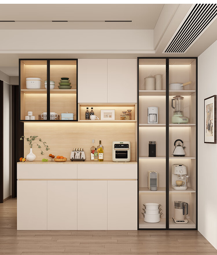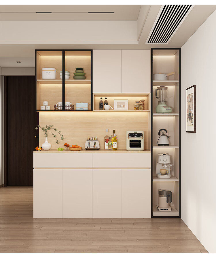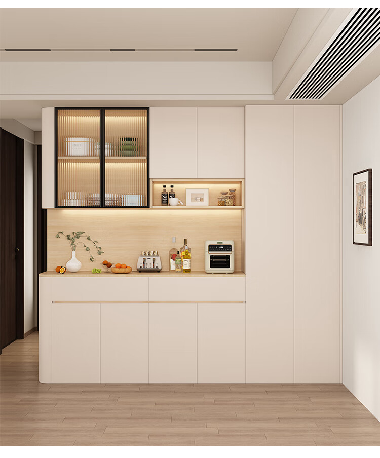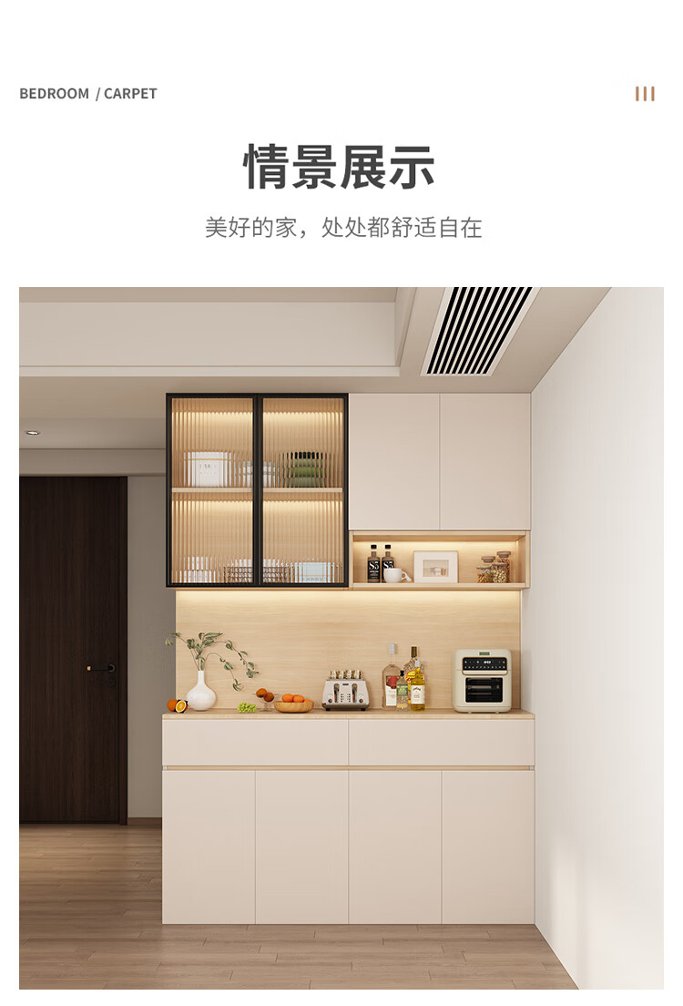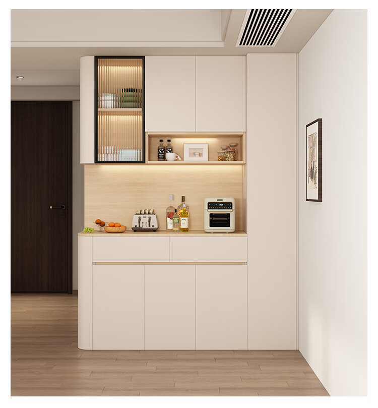 Quercus solid wood Chinese style retro multifunctional sideboard arc wine cabinet integrated wall living room combination storage storage cabinet style 2 length 133cm rounded corners all solid wood