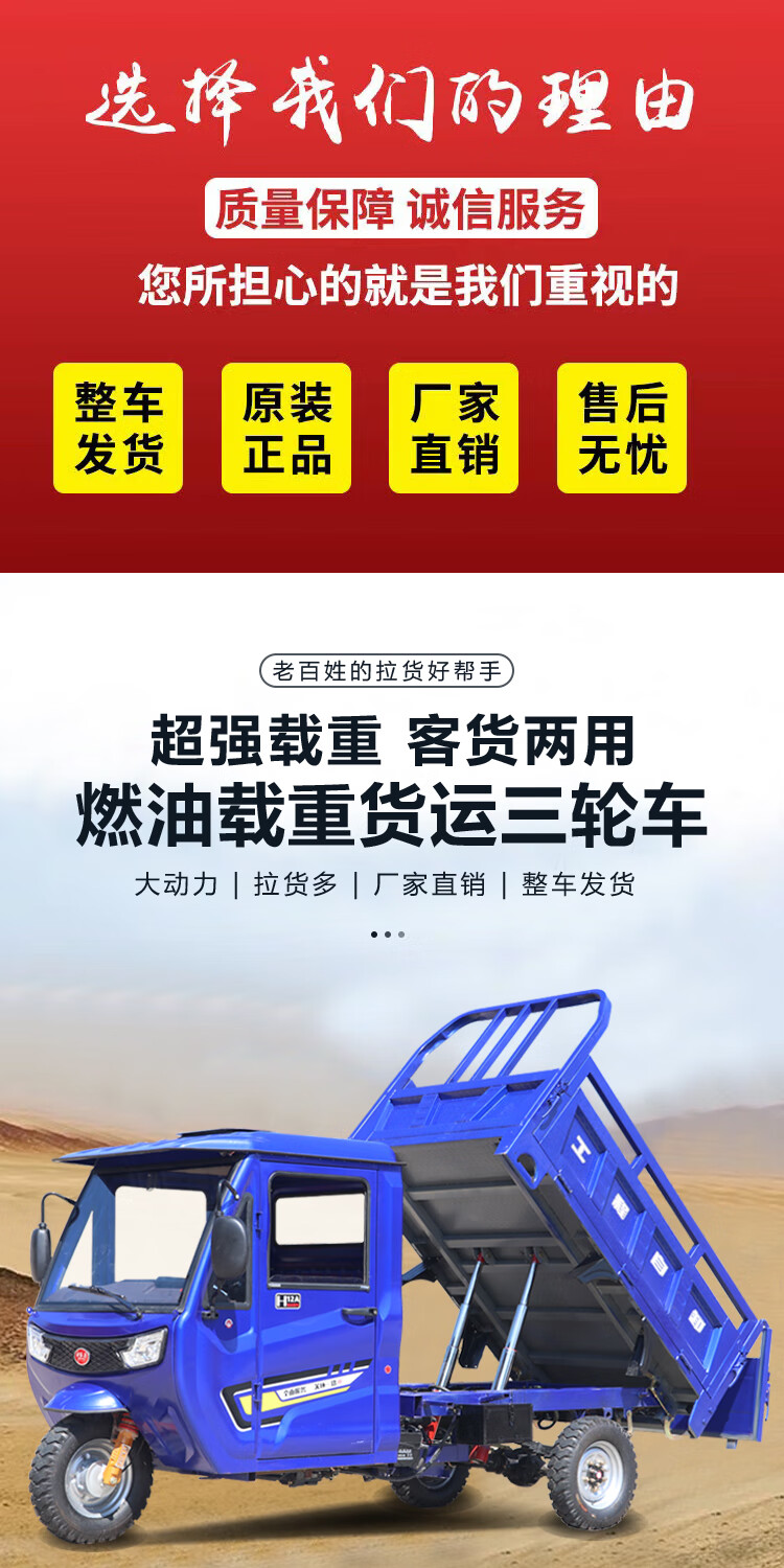 Chu Baili Zongshen Power fully enclosed three-wheeled motorcycle fuel half shed three-wheel five-wheel dump dump double steering wheel five-wheel 350 water-cooled 1.4*2.2 bucket double dump