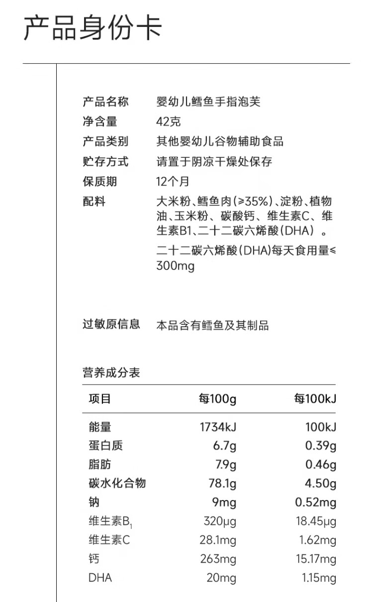 Fujibaby Cod Finger Puffs 6-month-old sugar-free baby food supplement, dissolved bean snacks for infants and toddlers Cod meat content 35% Infant Cod Finger Puffs 42g/can