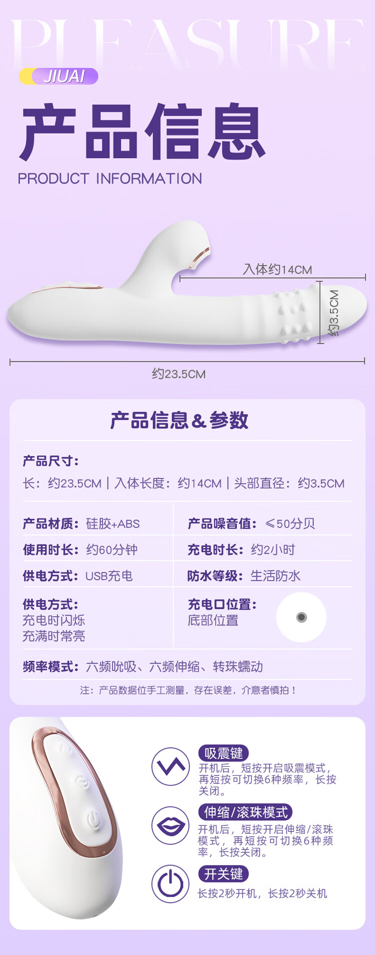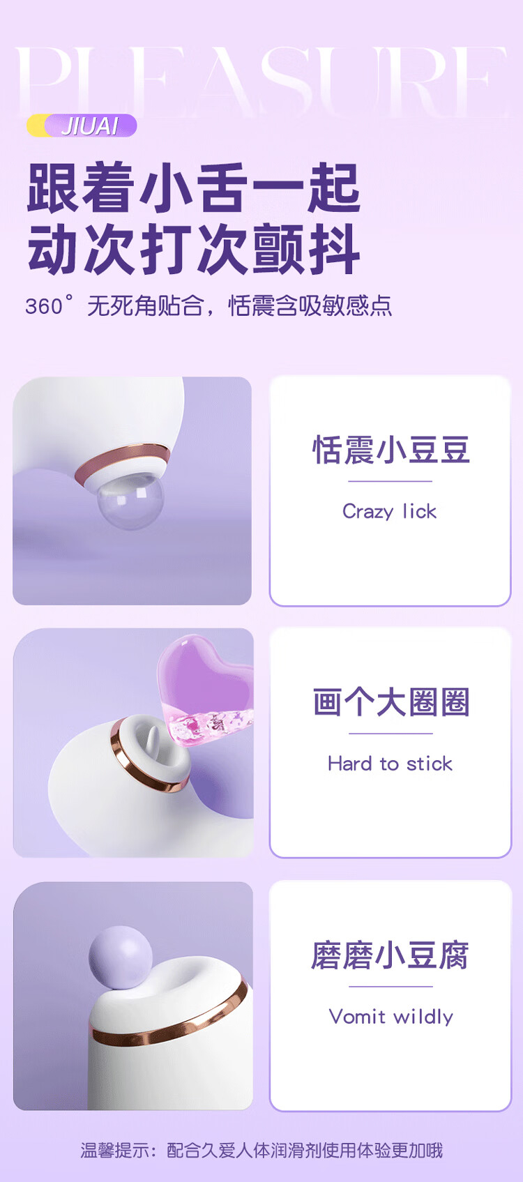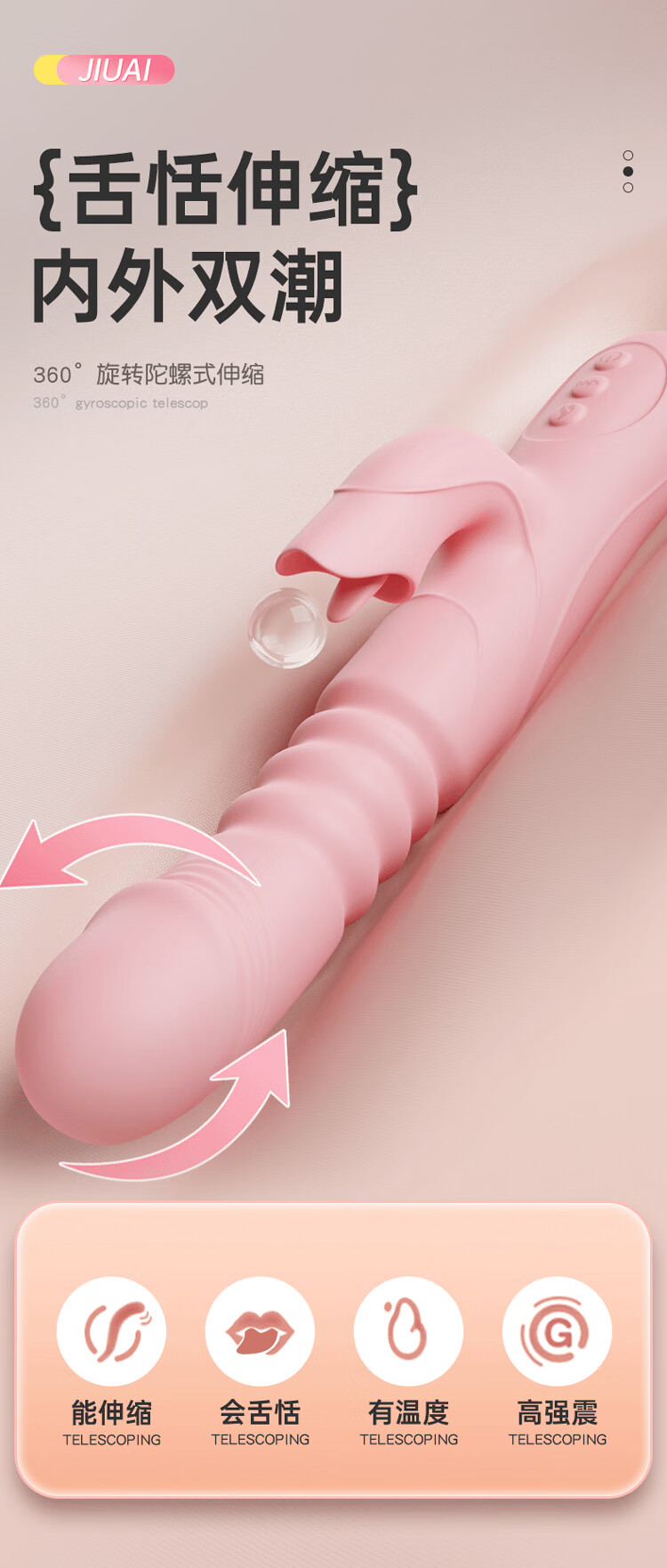 Jiuai vibrator, adult sex toy, vibrator, double bed, love aid tool, female self-comforting physiological massager, telescopic tongue licking, large-scale women's special physiological massager dildo for two people to watch and do at the same time