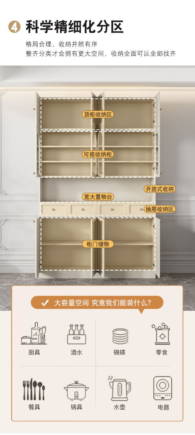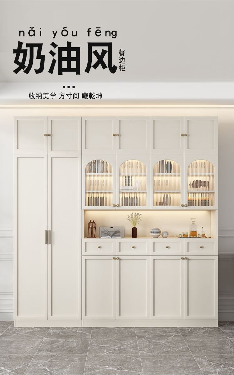 Kongjiang solid wood sideboard modern minimalist storage cabinet kitchen living room storage cabinet wall-mounted restaurant wine cabinet multi-functional cabinet door-to-door delivery + installation package cream style 0.8 meters long full body main cabinet solid wood sideboard
