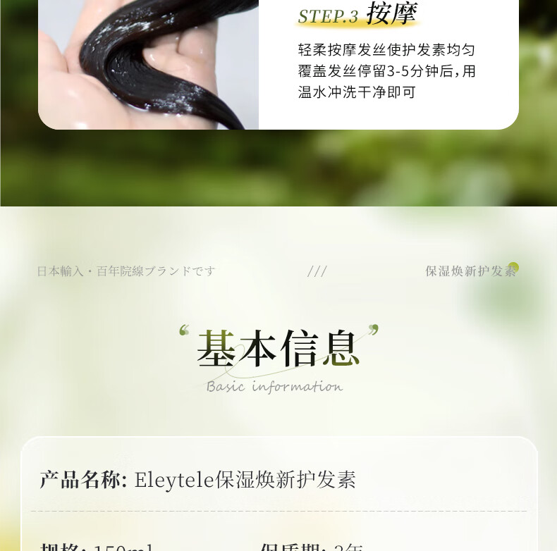 Eleytele Japan imported 3-minute conditioner for dry, frizzy hair, dyed, permed, damaged, long-lasting fragrance for women, elastic conditioner 150ml/bottle