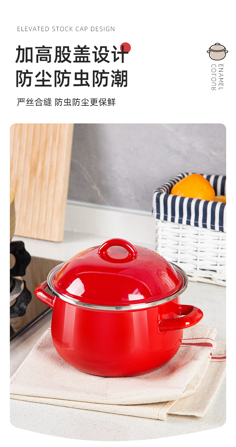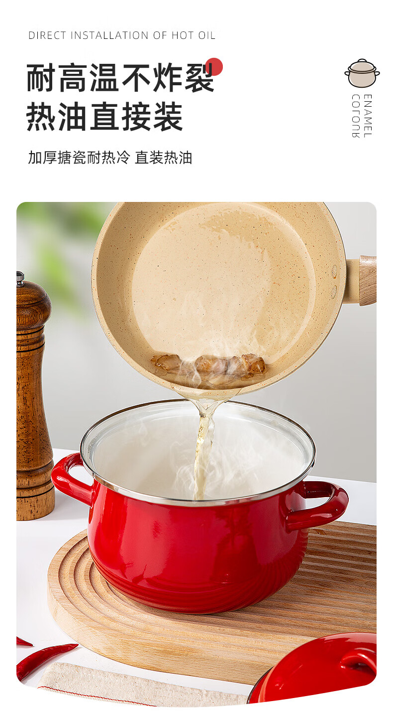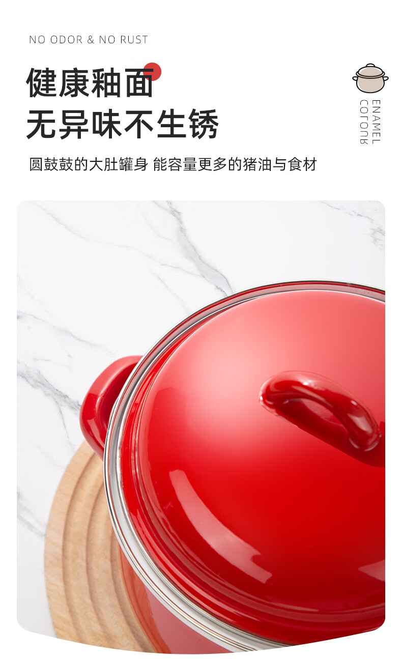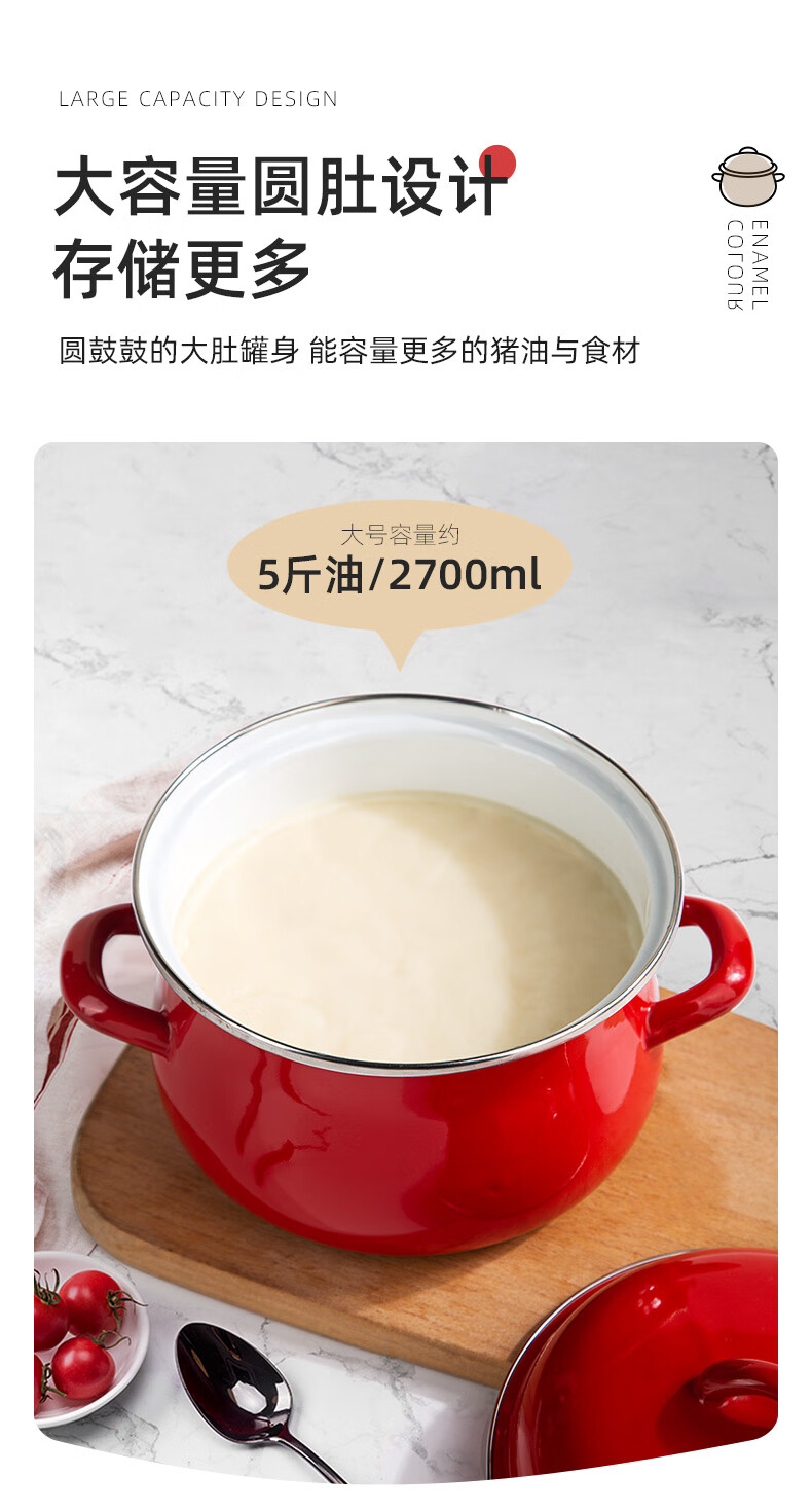 Newair enamel lard can household high temperature resistant old-fashioned meat oil can with lid and double ears large capacity oil storage basin chili oil can Guofeng Rouge Red Small size