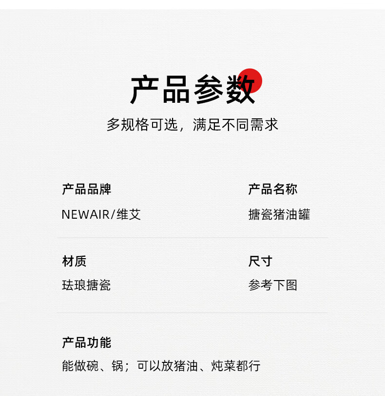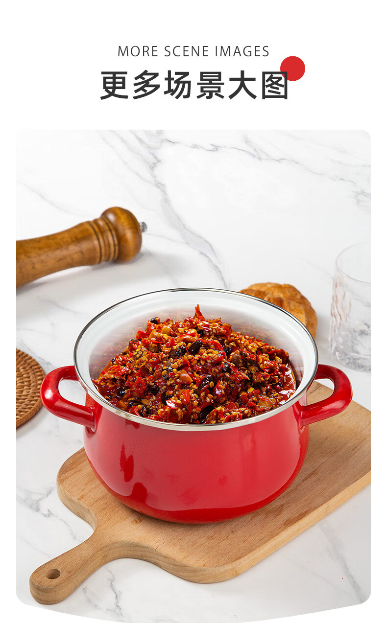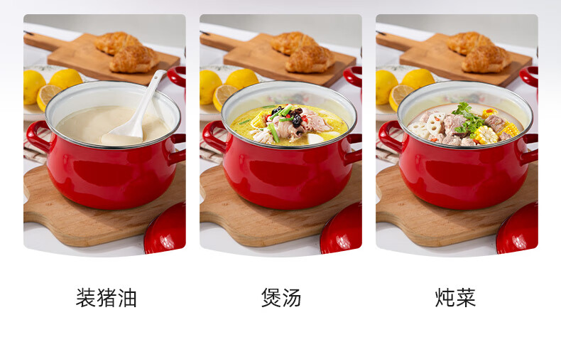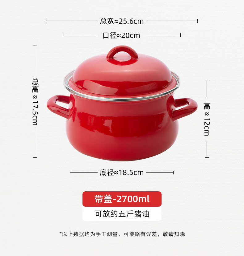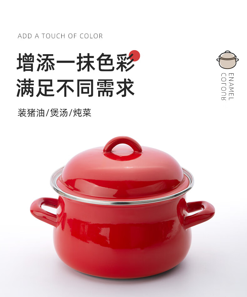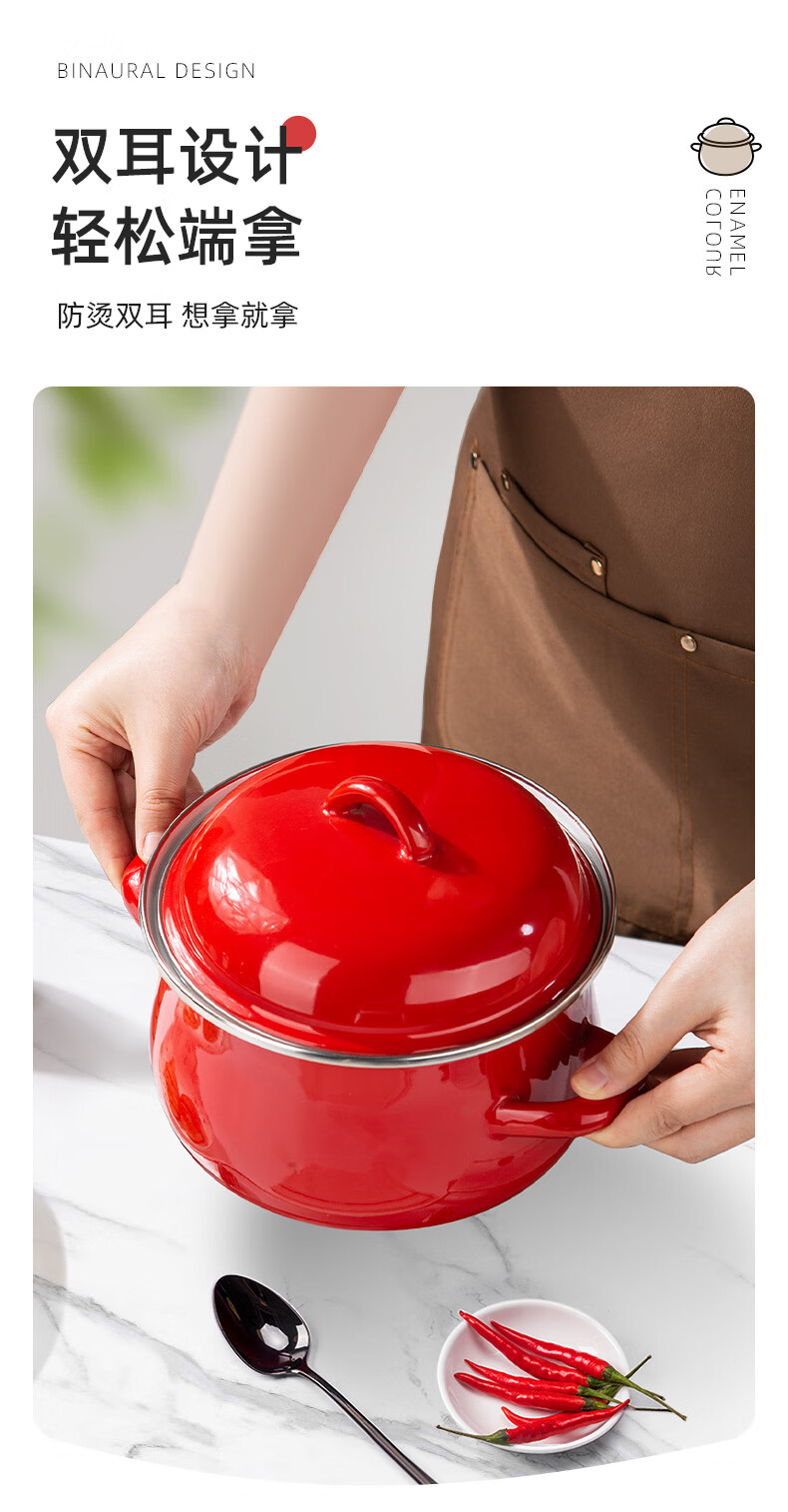 Newair enamel lard can household high temperature resistant old-fashioned meat oil can with lid and double ears large capacity oil storage basin chili oil can Guofeng Rouge Red Small size