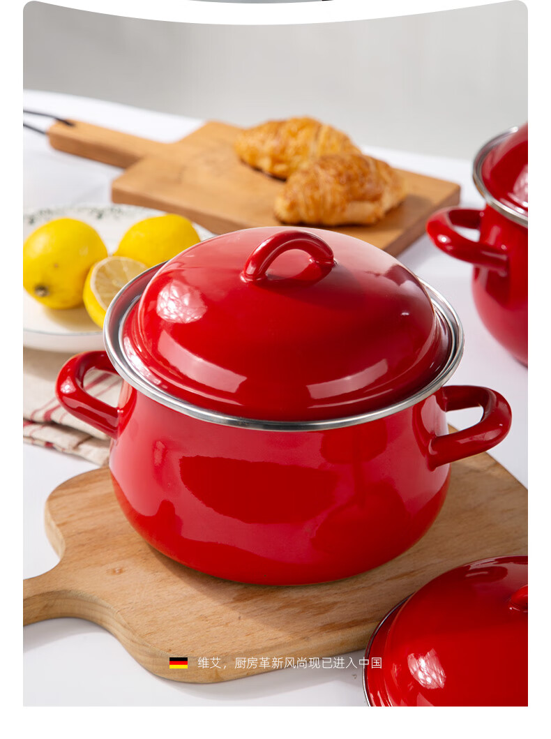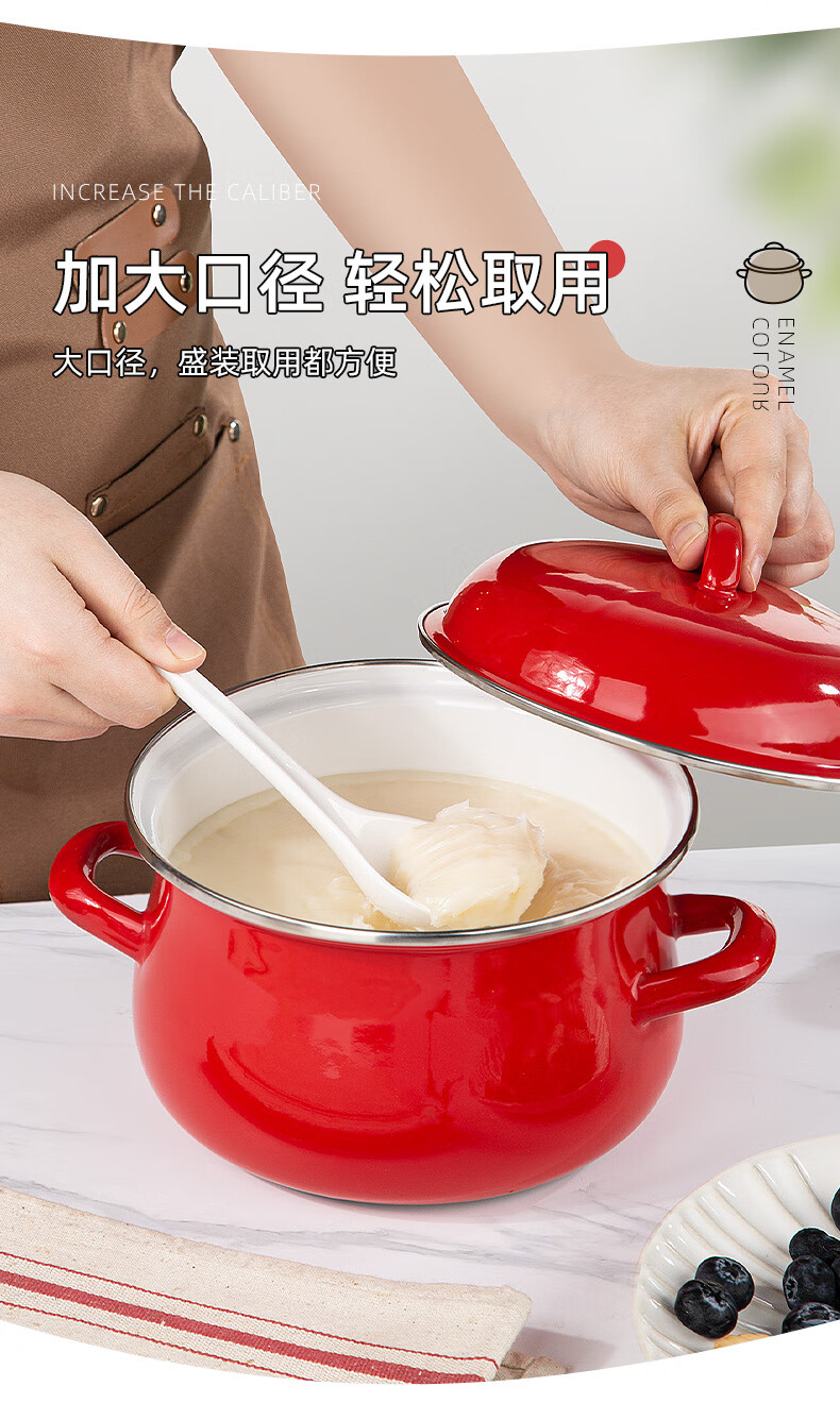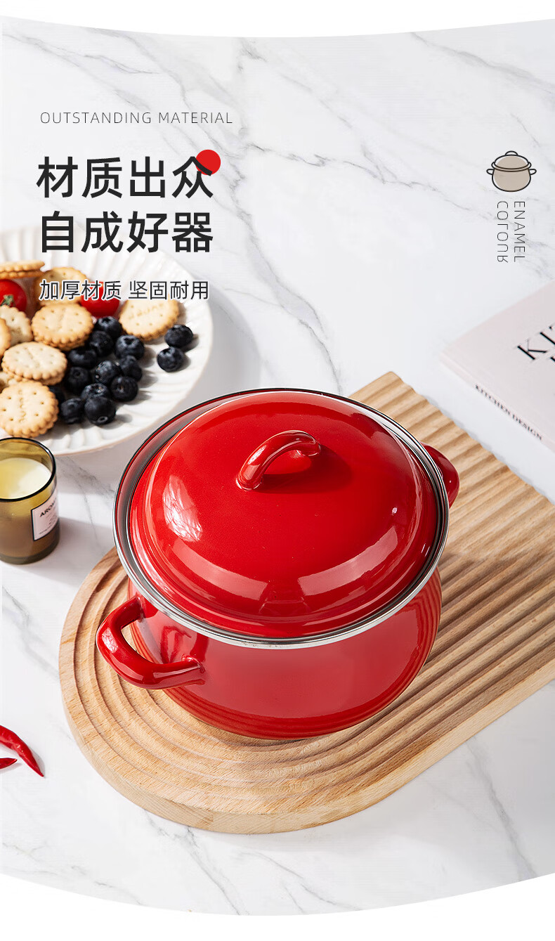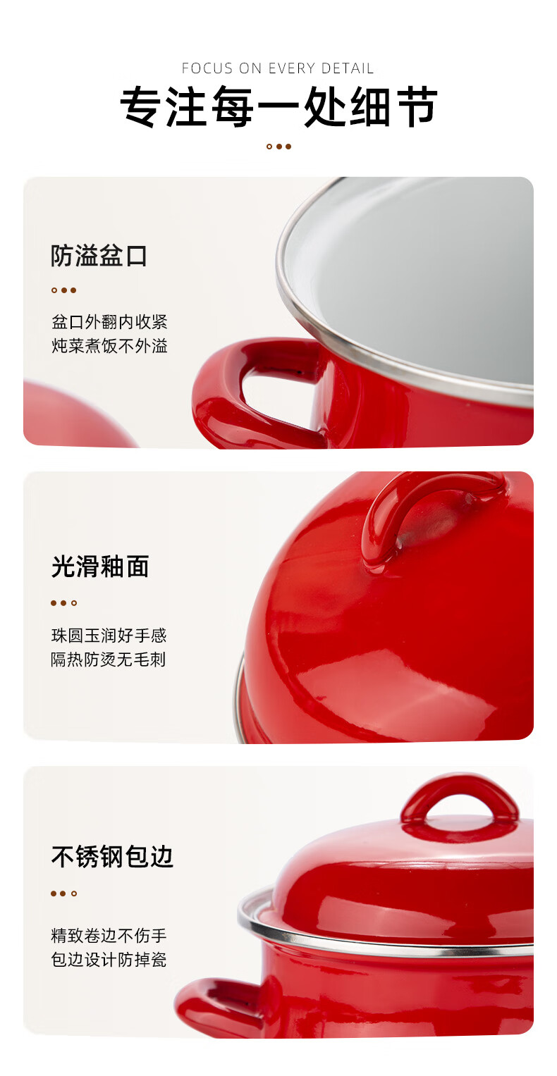 Newair enamel lard can household high temperature resistant old-fashioned meat oil can with lid and double ears large capacity oil storage basin chili oil can Guofeng Rouge Red Small size