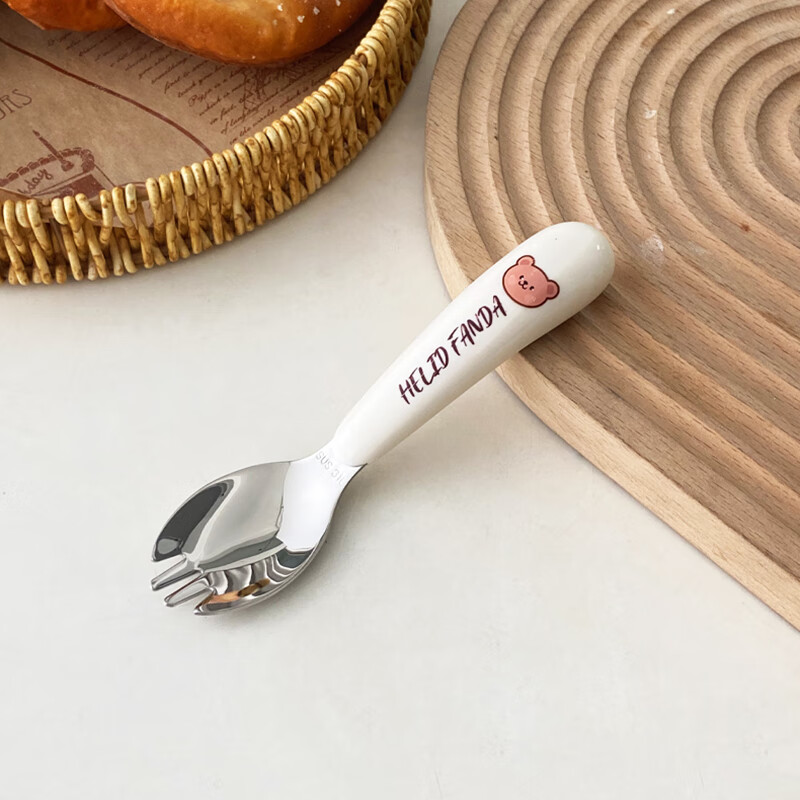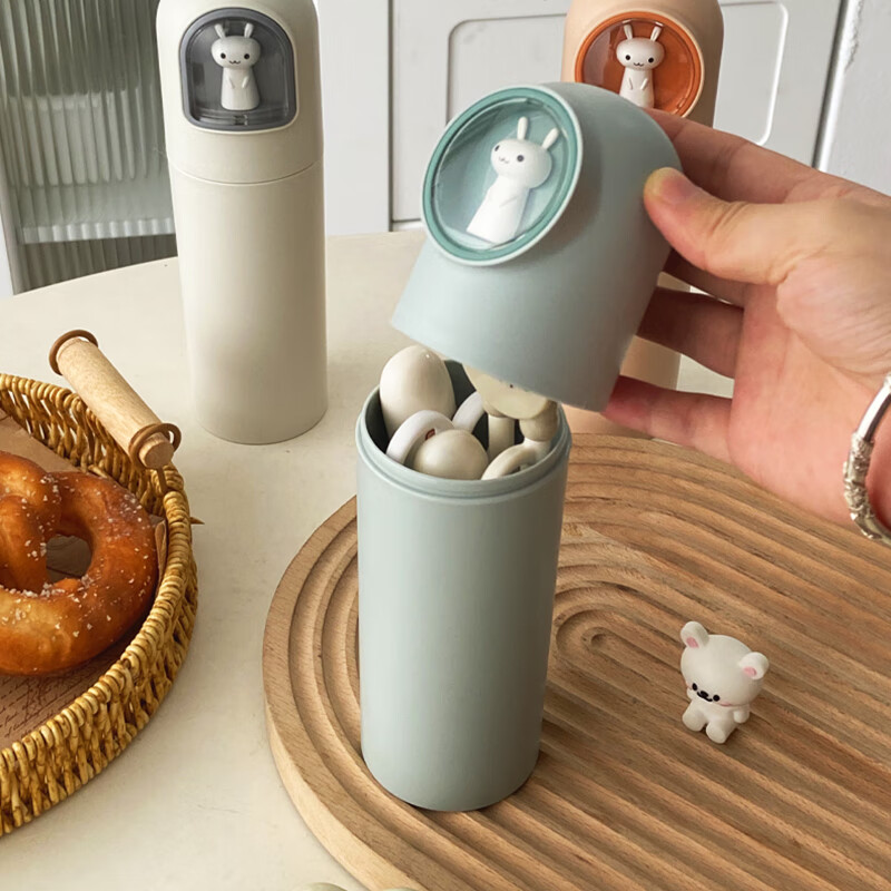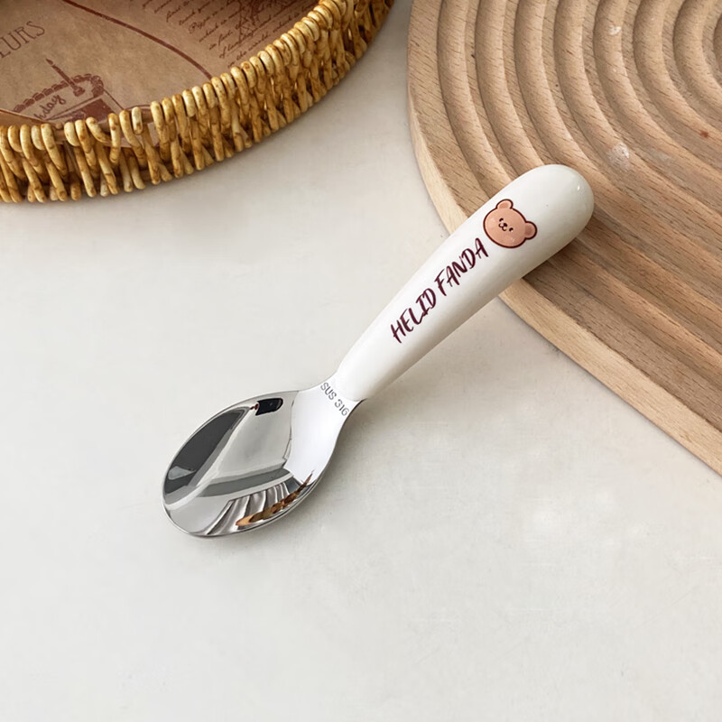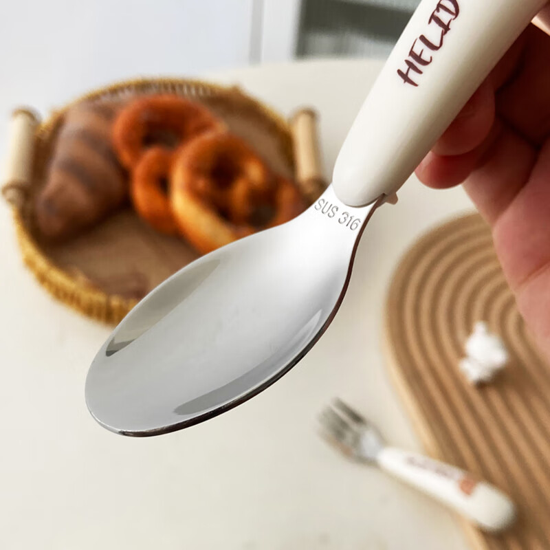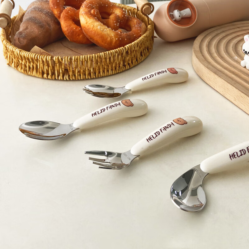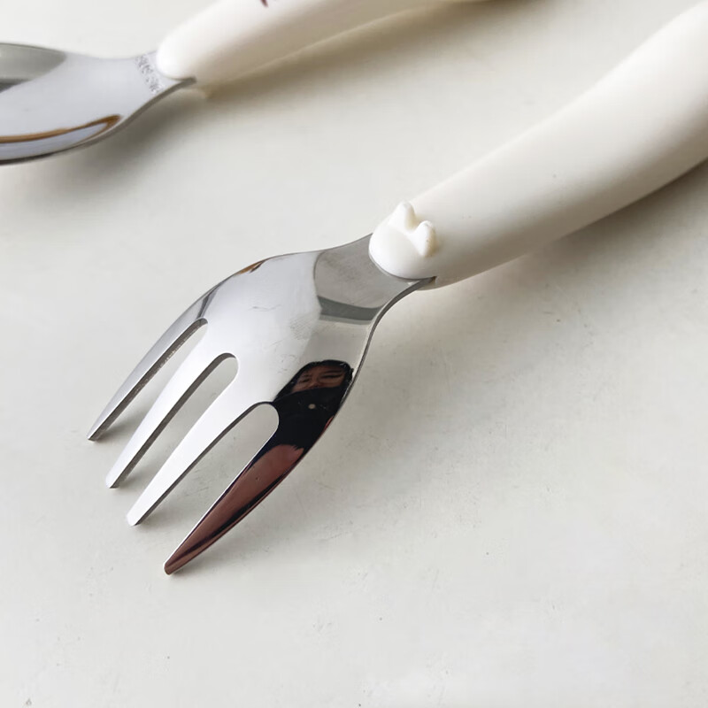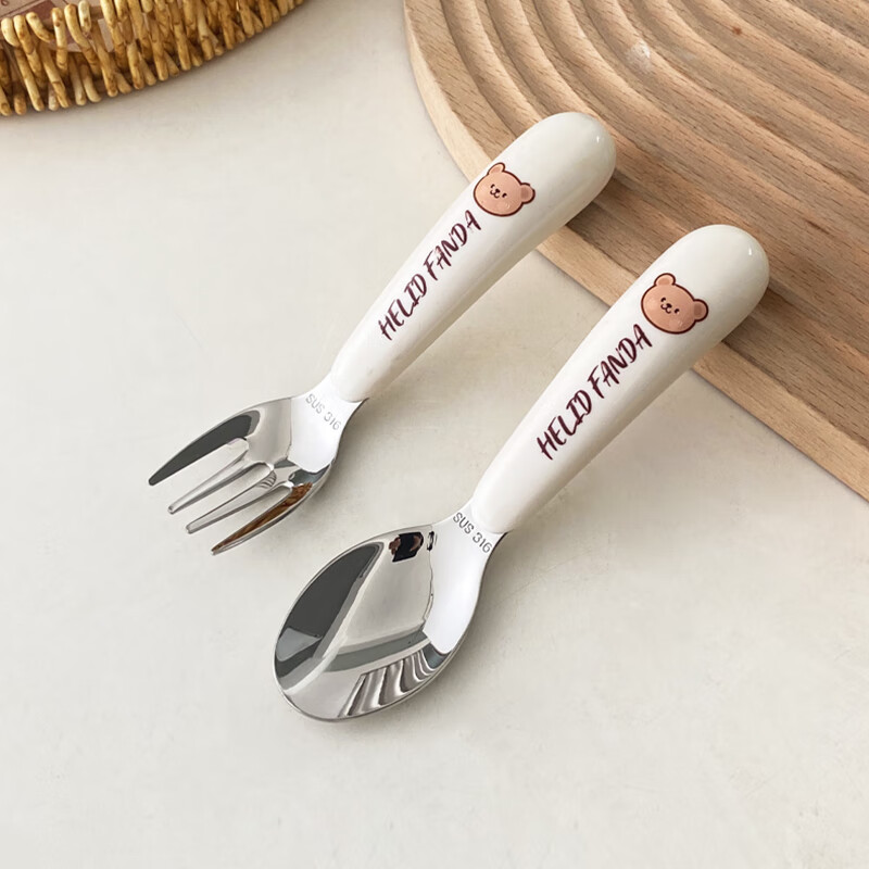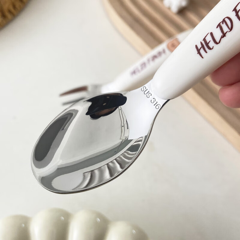 WORTHBUY 316 children's portable tableware stainless steel spoon, chopsticks and fork set training chopstick storage box cute tableware set off-white rabbit + 316 spoon + noodle fork + chopsticks + scissors 5 pieces