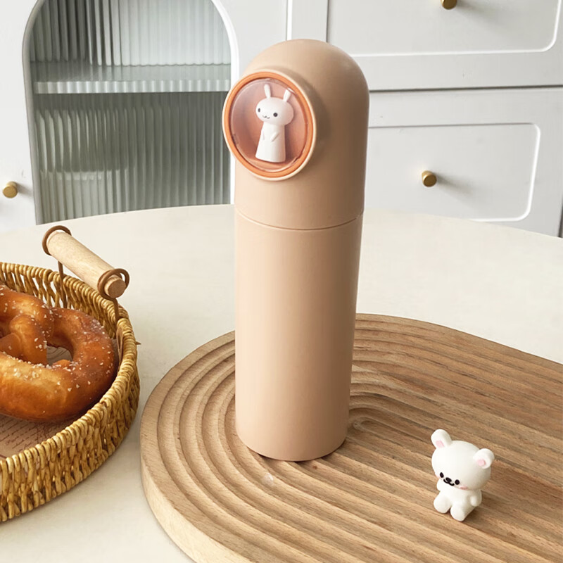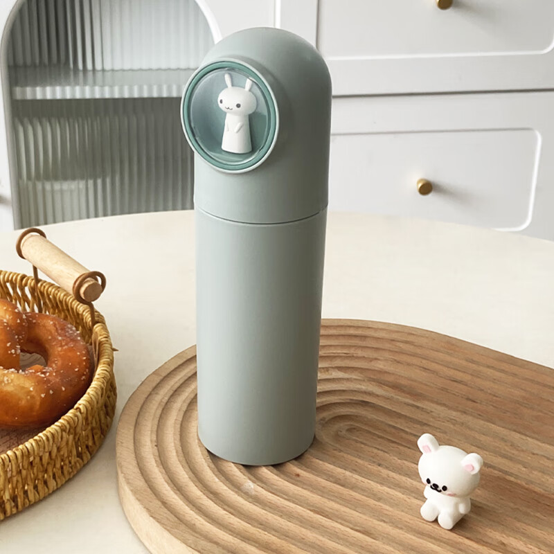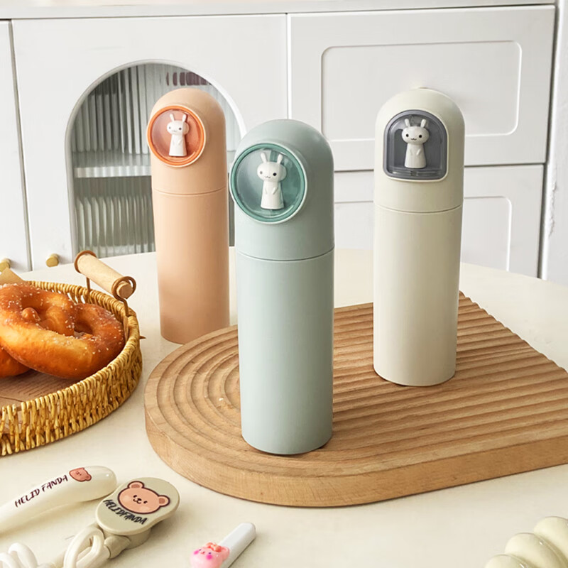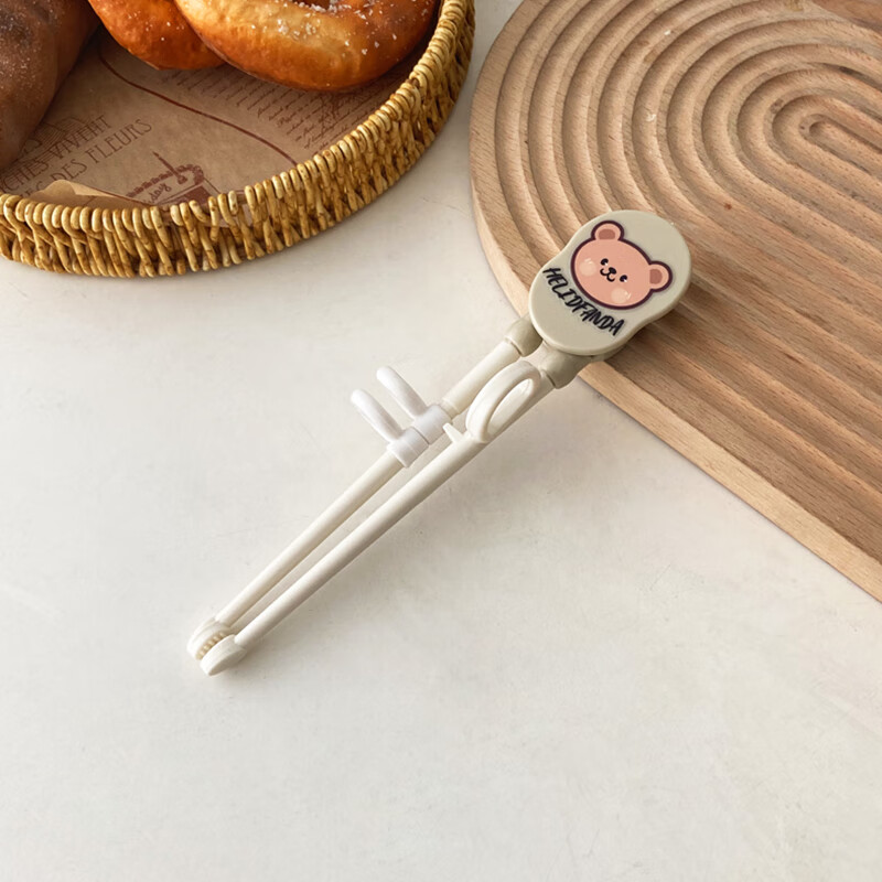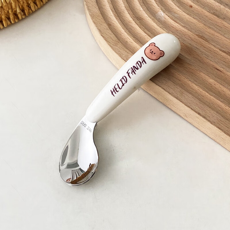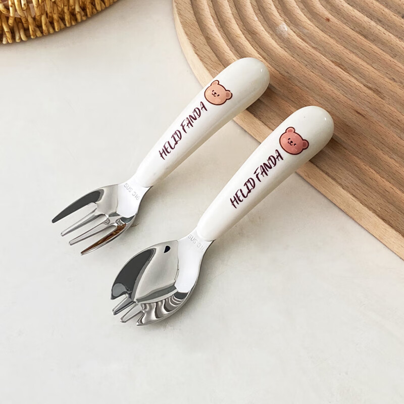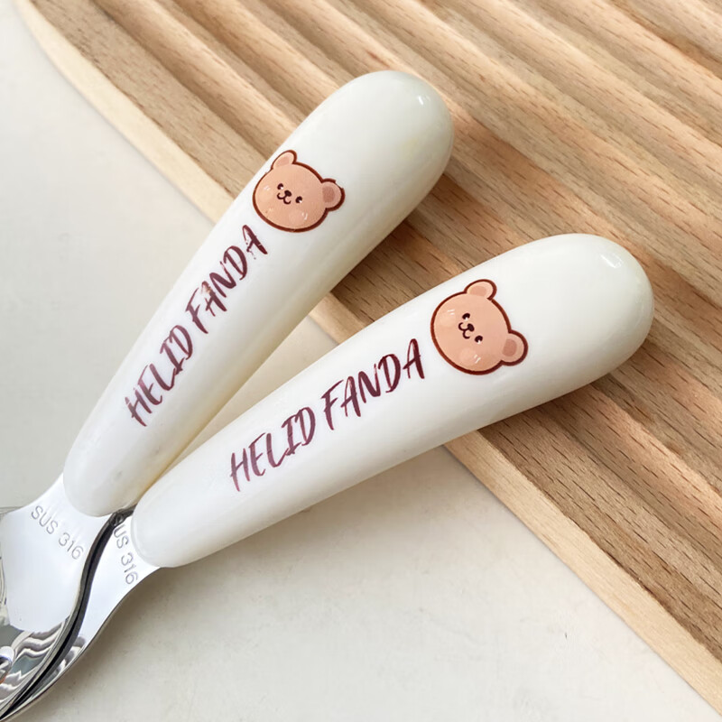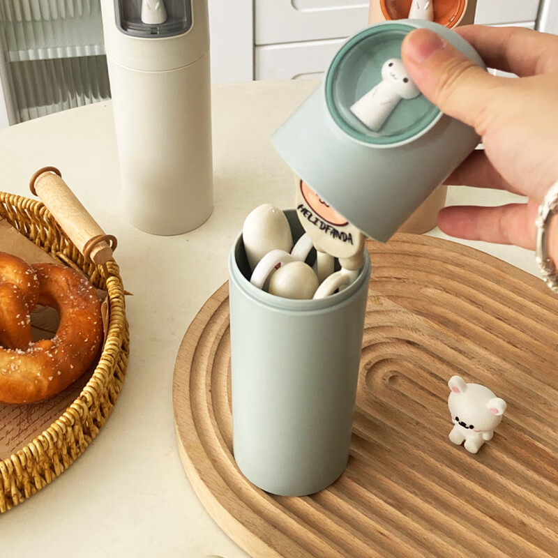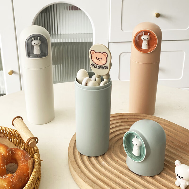 WORTHBUY 316 children's portable tableware stainless steel spoon, chopsticks and fork set training chopstick storage box cute tableware set off-white rabbit + 316 spoon + noodle fork + chopsticks + scissors 5 pieces
