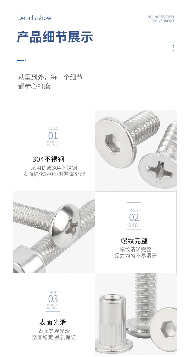 Guwanji 304 stainless steel cross round head countersunk head screws custom-made hexagon socket bolts salt spray passivation processing custom 304 cross countersunk head machine wire M4x16 50 pieces