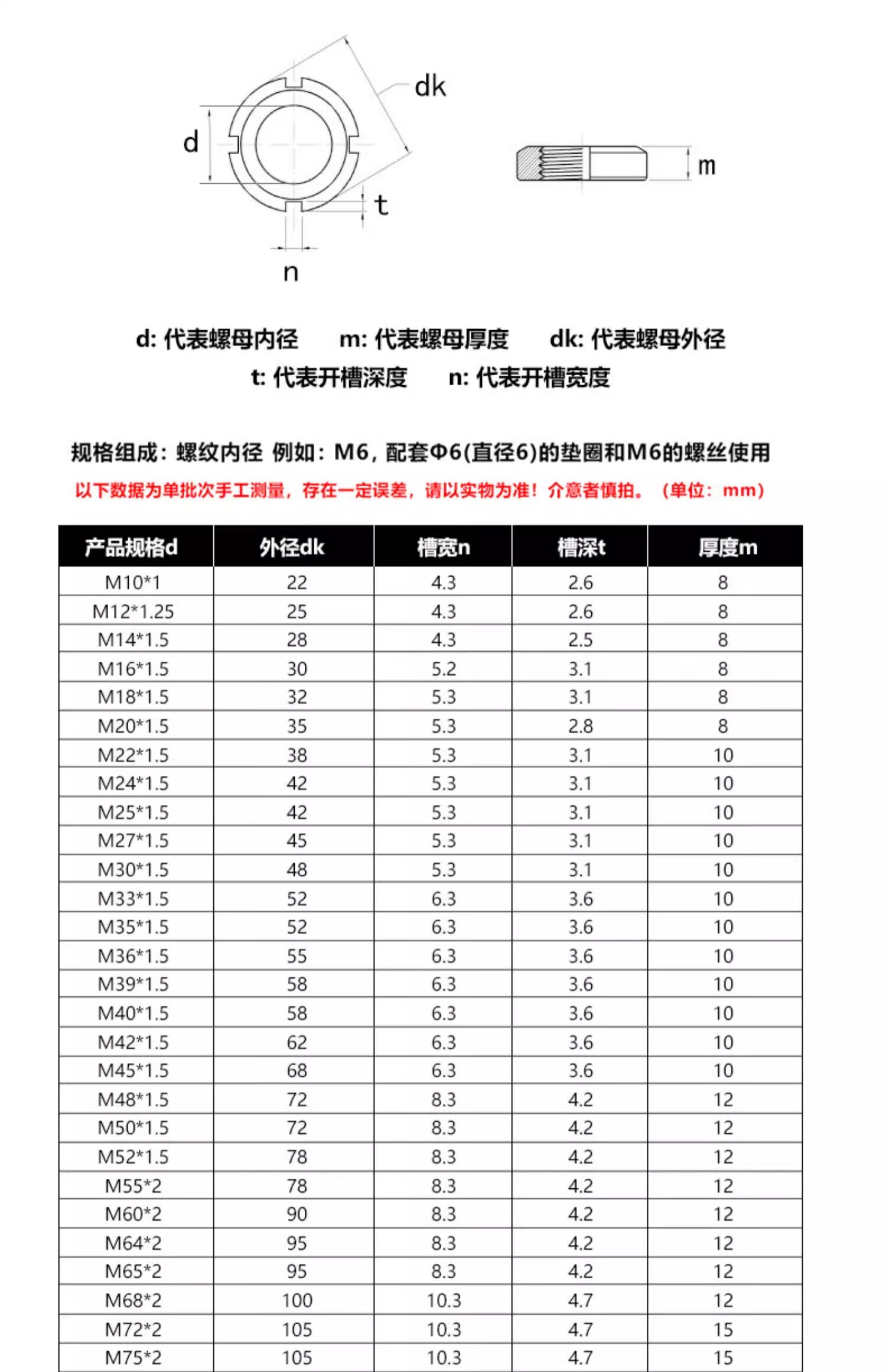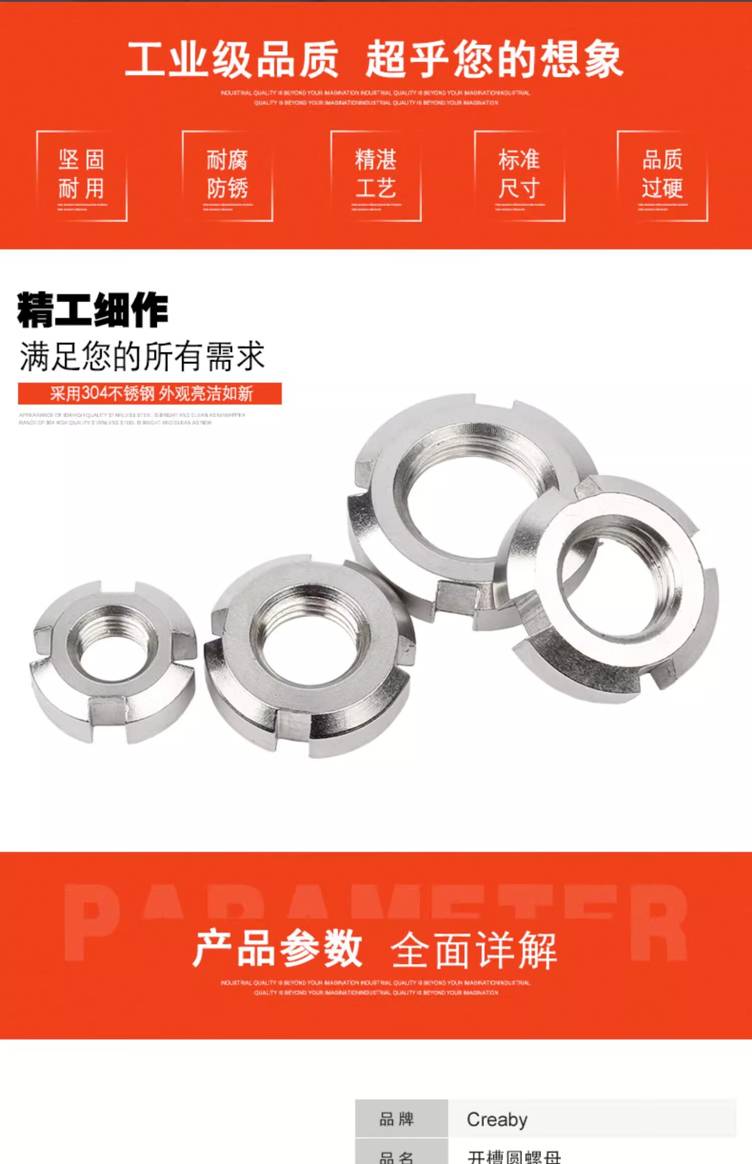 Creaby304 stainless steel slotted round nut locking stop and four-slot nut M18x1.5 thread 1 piece 304