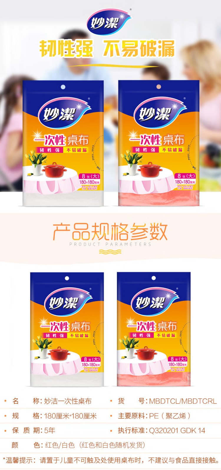 Miaojie disposable tablecloth thickened waterproof and oil-proof no-wash plastic round tablecloth rectangular home wedding red medium size 10 sheets 1.6 meters 1.6 meters