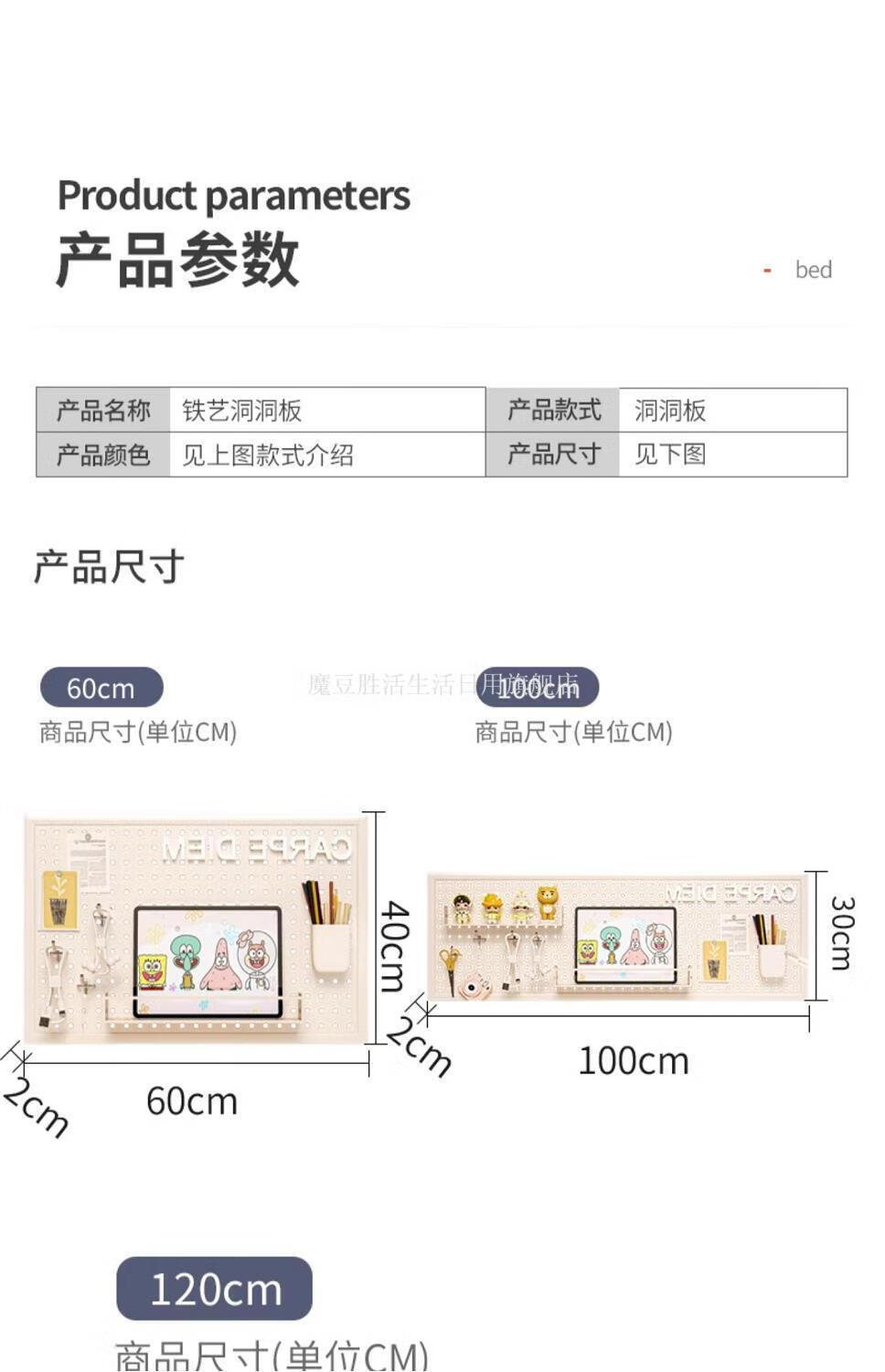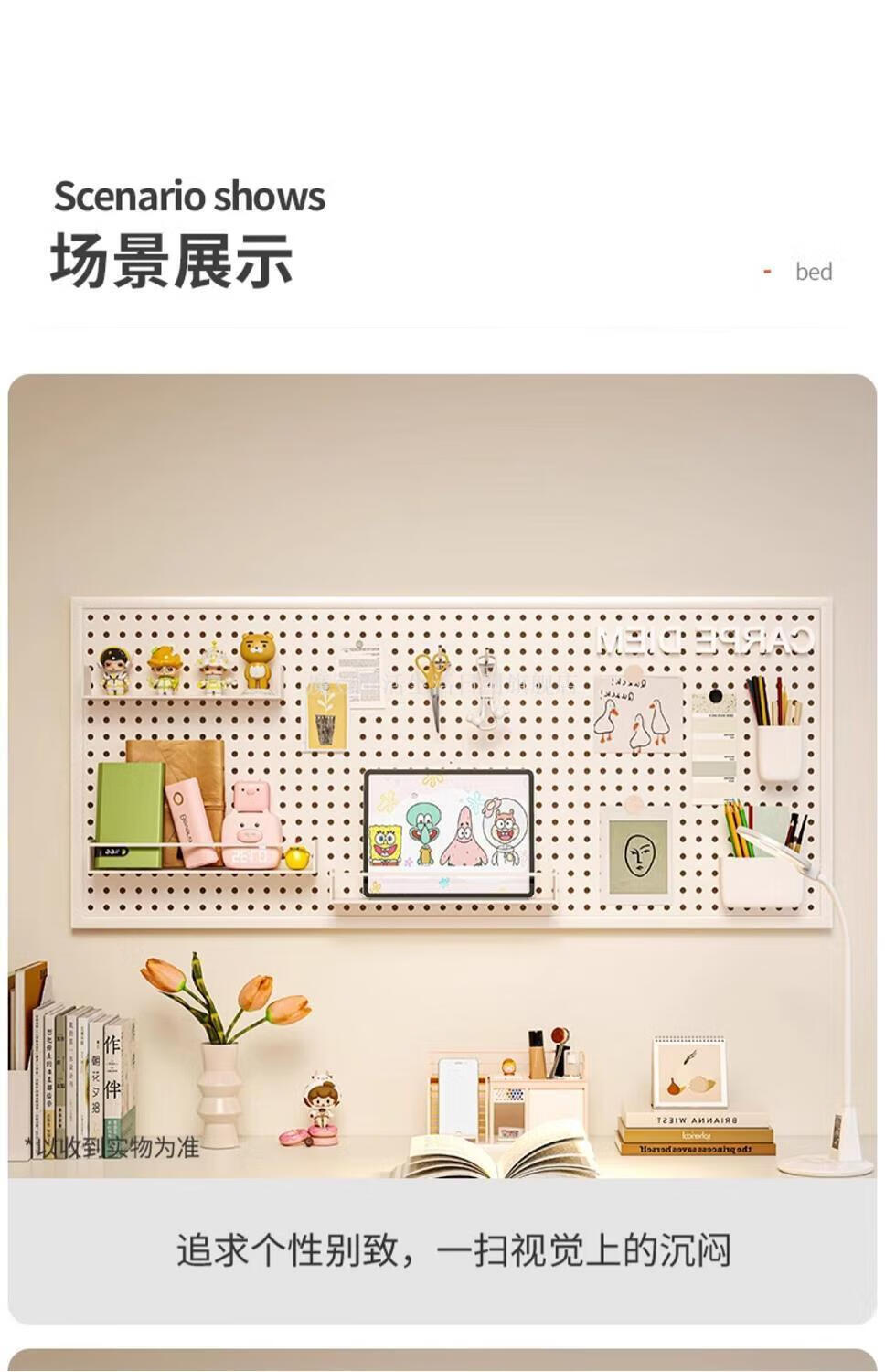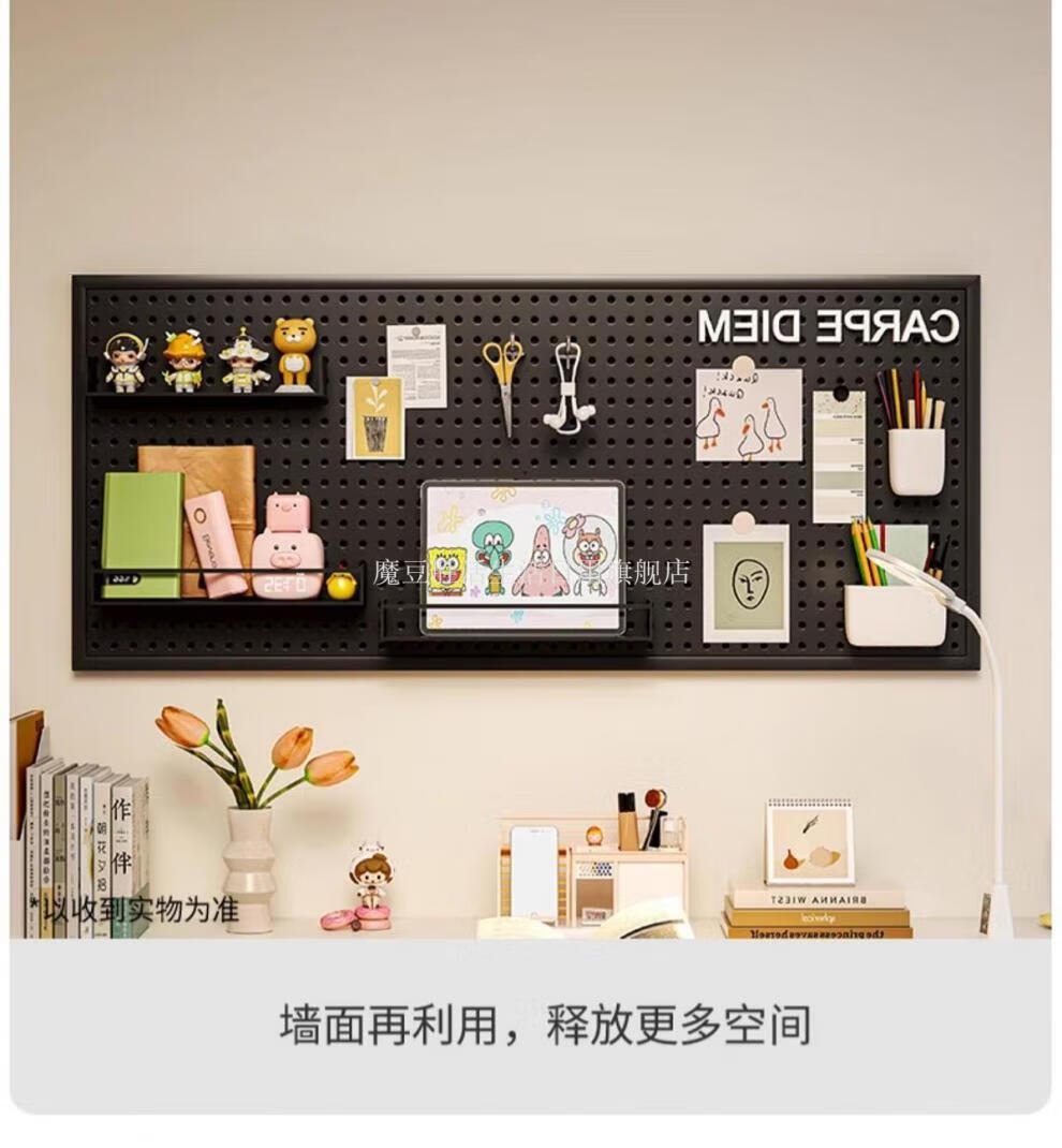 Magic Dou Shenghuo Hole Board Wall Wall Storage Rack Dormitory Display Rack Hanging Board Study Desk Organizing Storage Partition Rack Free Metal Hook White Thickened - Frame 120*80cm