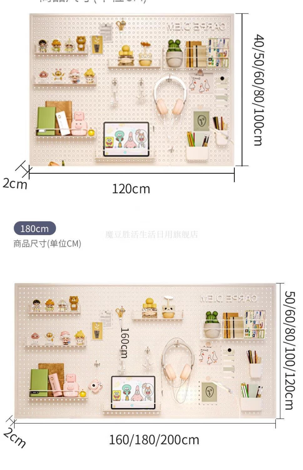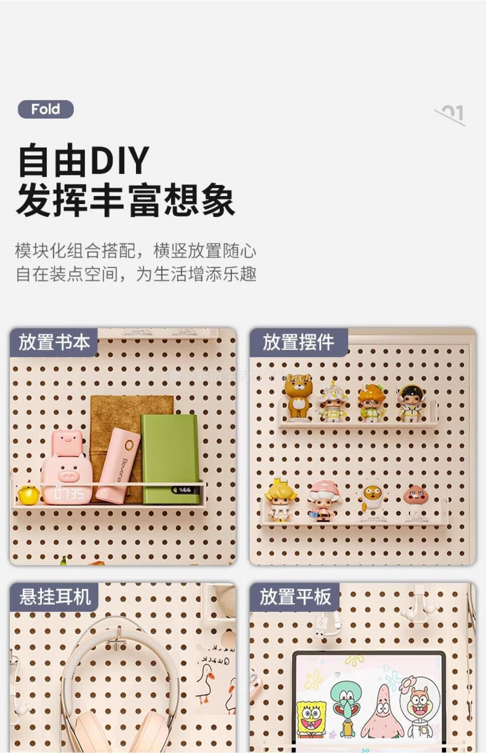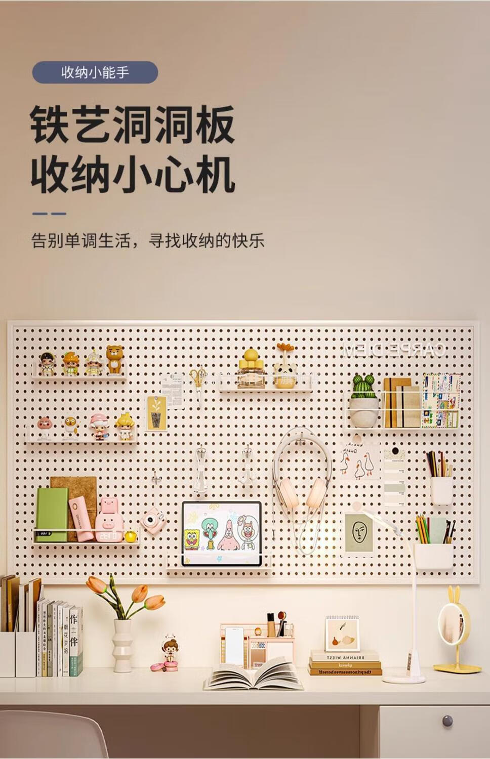 Magic Dou Shenghuo Hole Board Wall Wall Storage Rack Dormitory Display Rack Hanging Board Study Desk Organizing Storage Partition Rack Free Metal Hook White Thickened - Frame 120*80cm