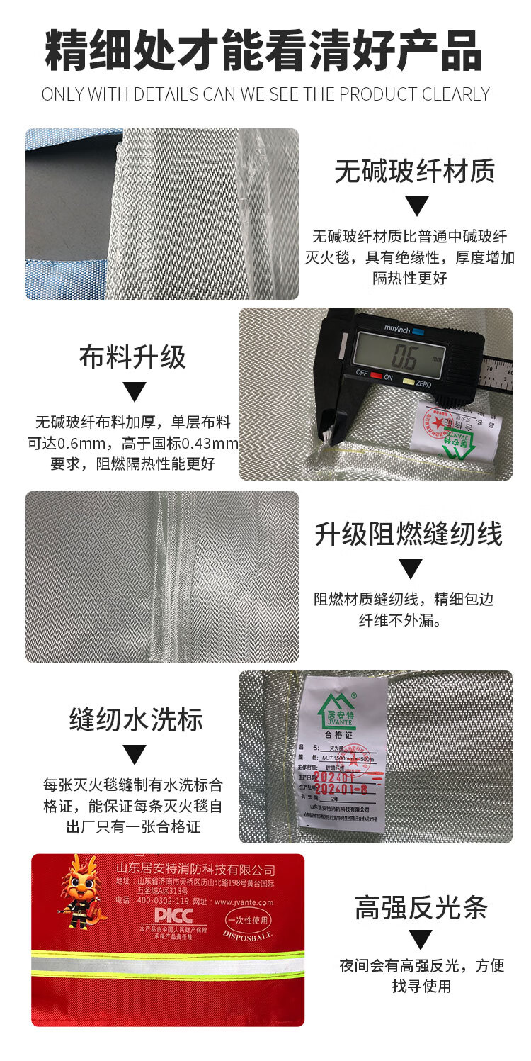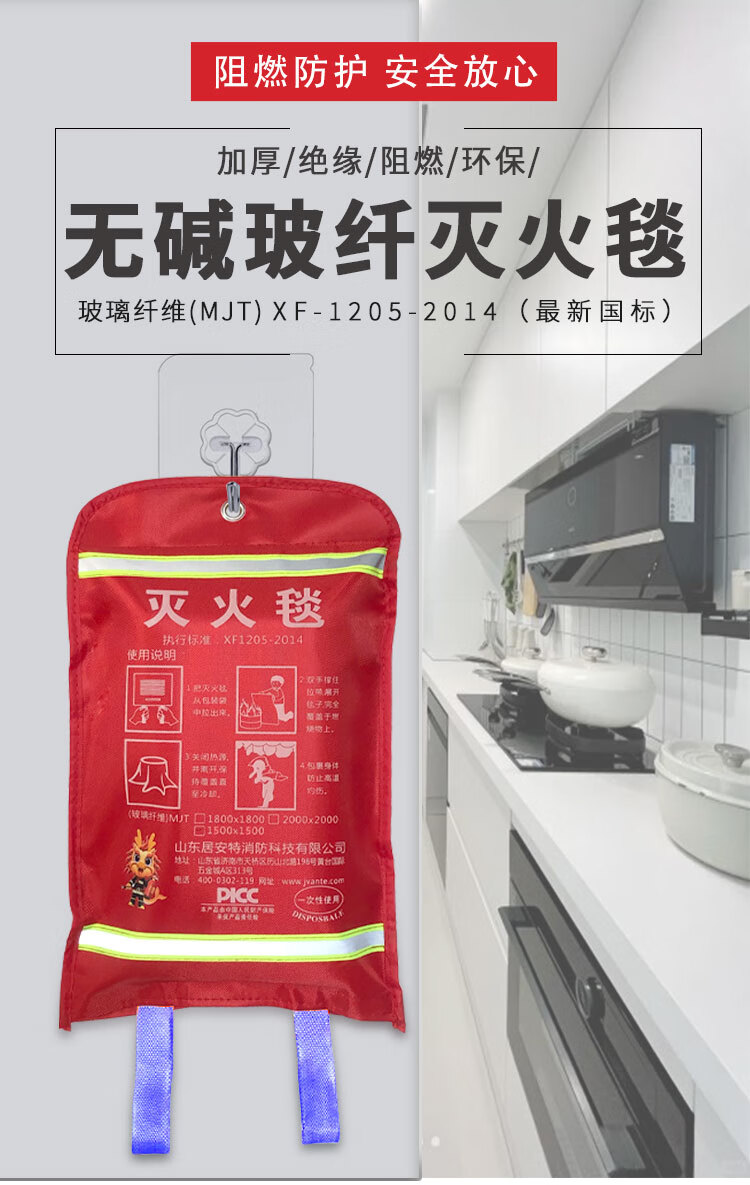 High-end alkali-free fiberglass fire-extinguishing blanket, household and commercial flame-retardant and thermal insulation, thickened material, overall flame-retardant, genuine guarantee glass fiber fire-extinguishing blanket 1m*1m