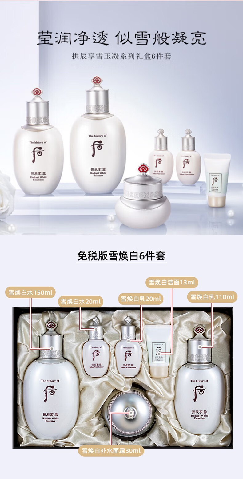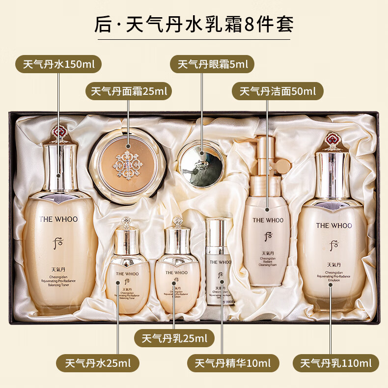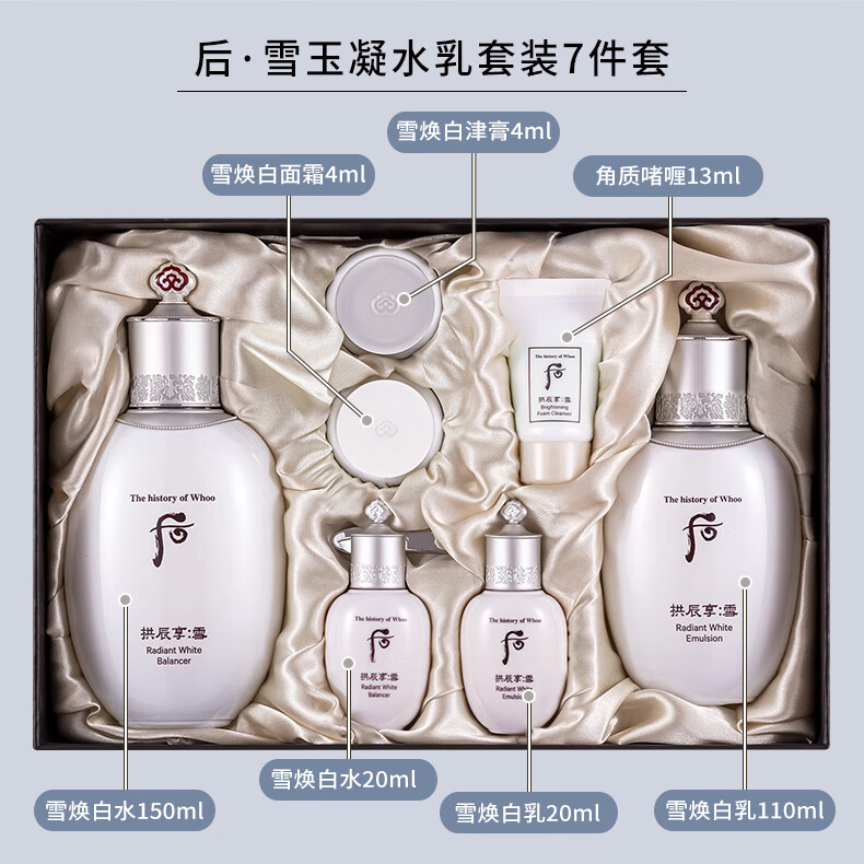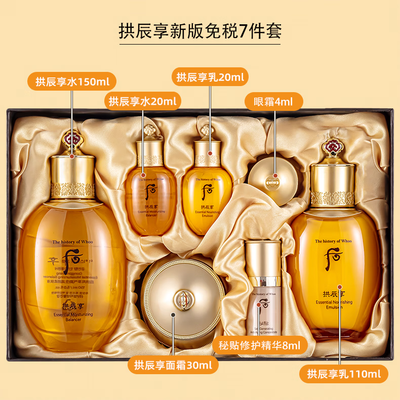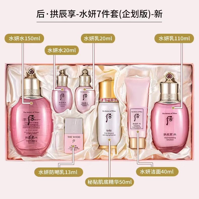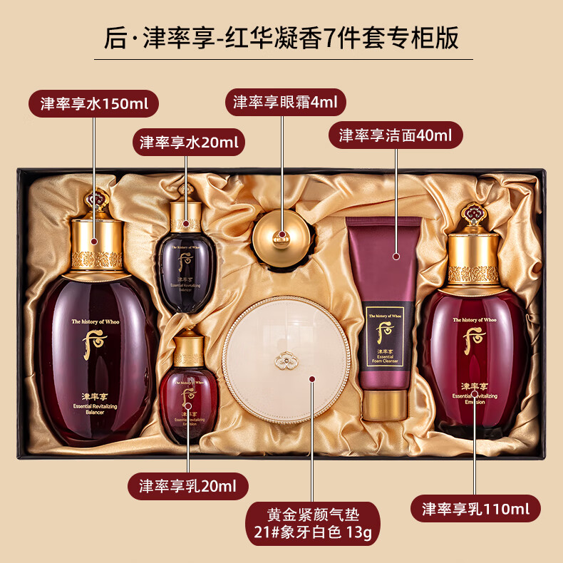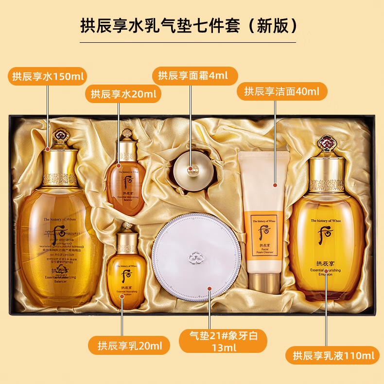 Hou (The history of Whoo) South Korea imported Hou suit weather elixir set box Shuiyan Gongchenxiang Snow Jade Condensation Gift Box Women's Skin Care Products Festival Gongchenxiang Water Lotion Air Cushion 7-piece set