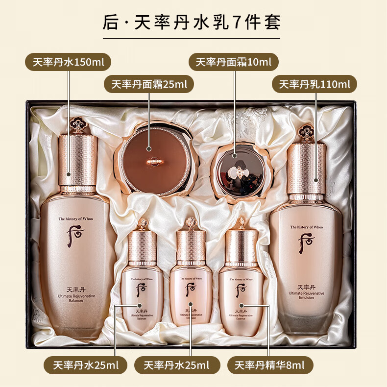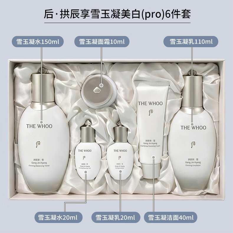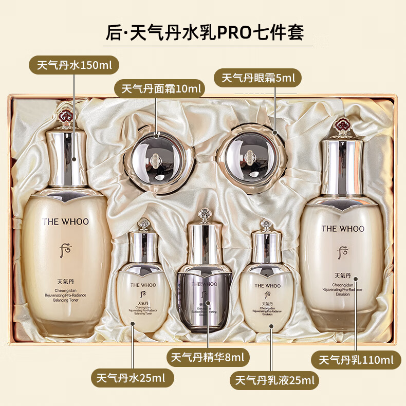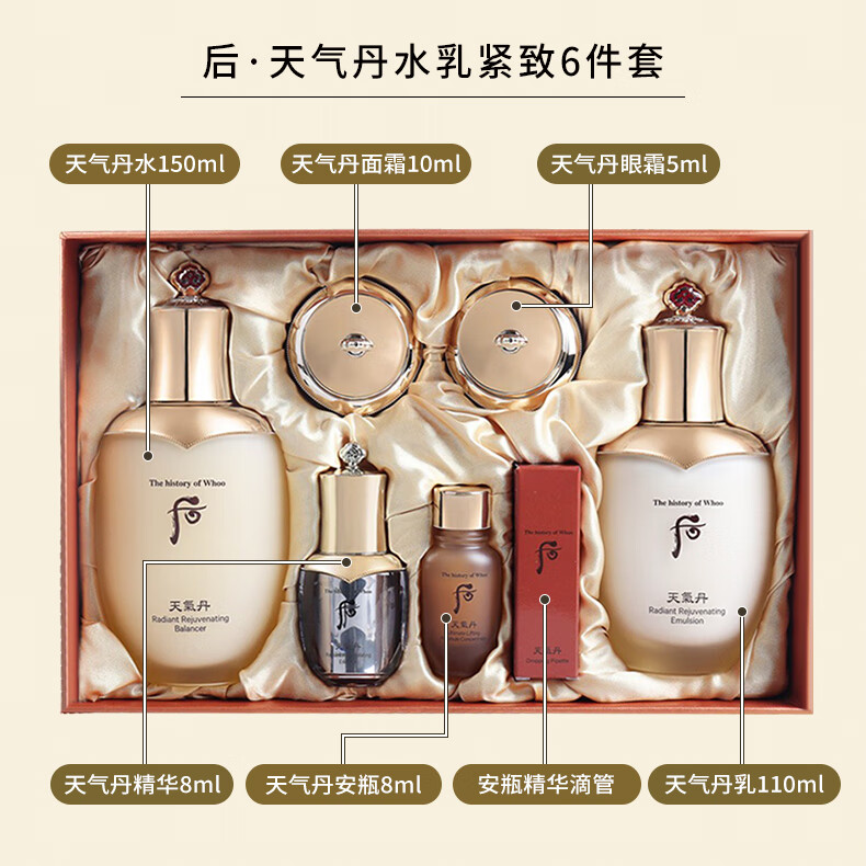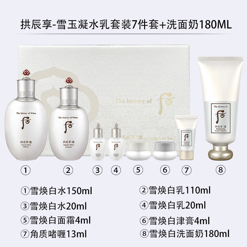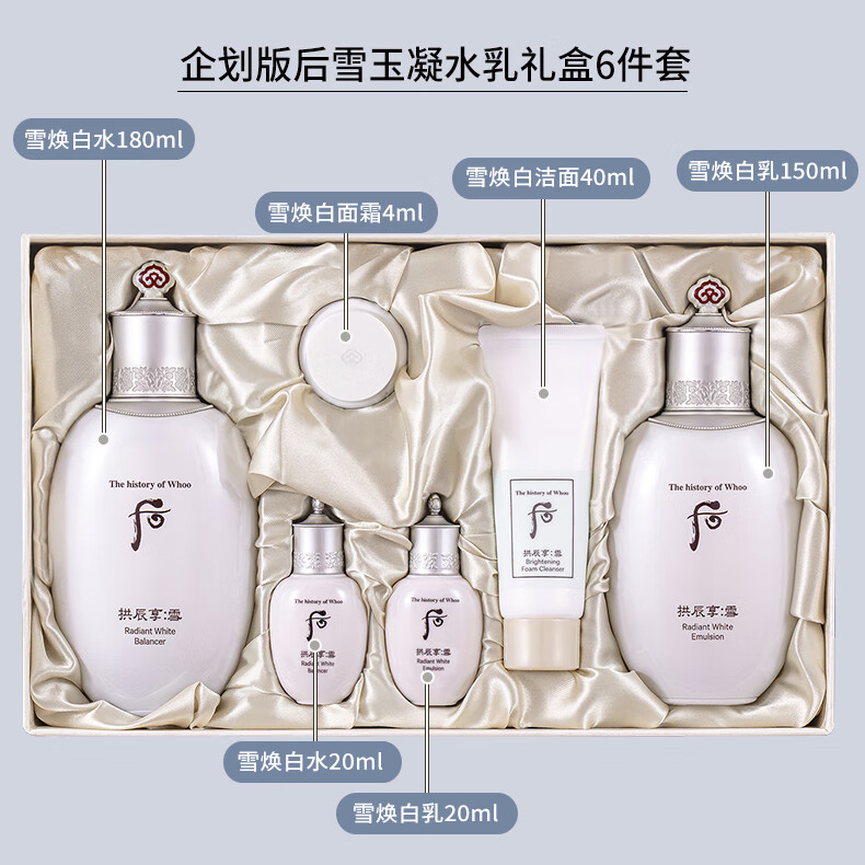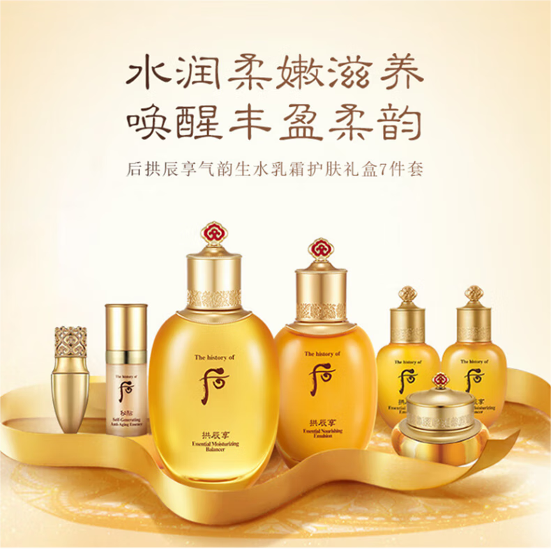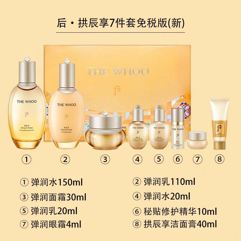 Hou (The history of Whoo) South Korea imported Hou suit weather elixir set box Shuiyan Gongchenxiang Snow Jade Condensation Gift Box Women's Skin Care Products Festival Gongchenxiang Water Lotion Air Cushion 7-piece set