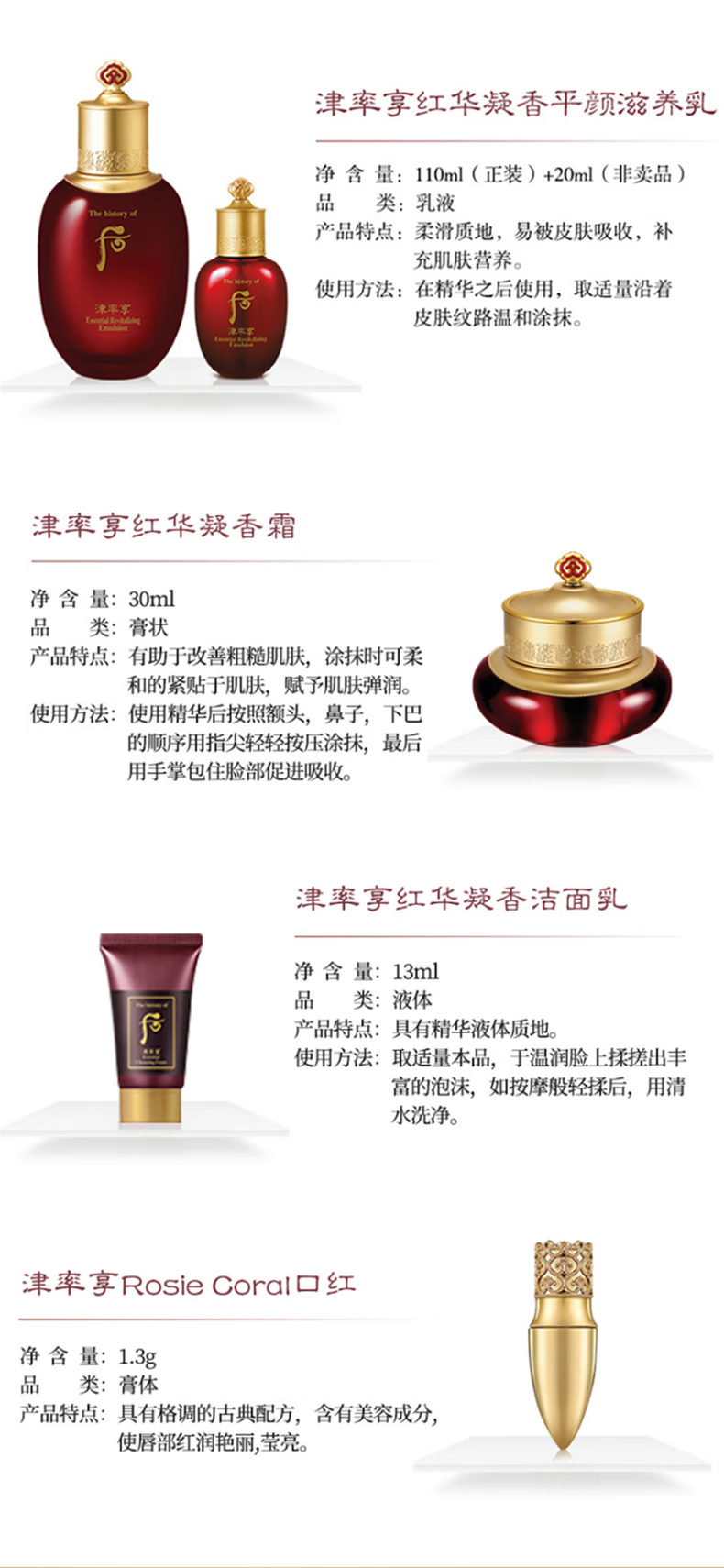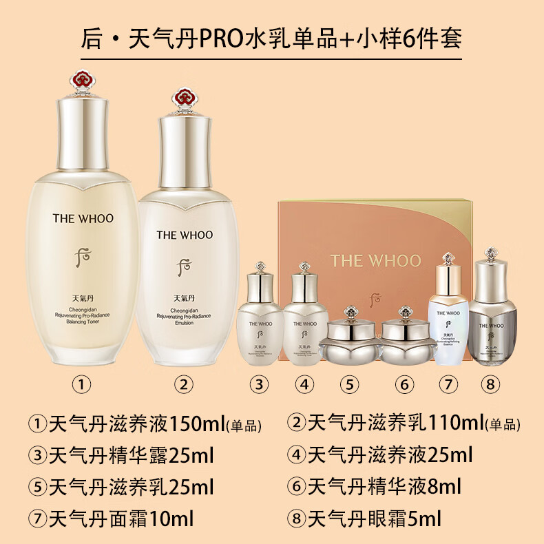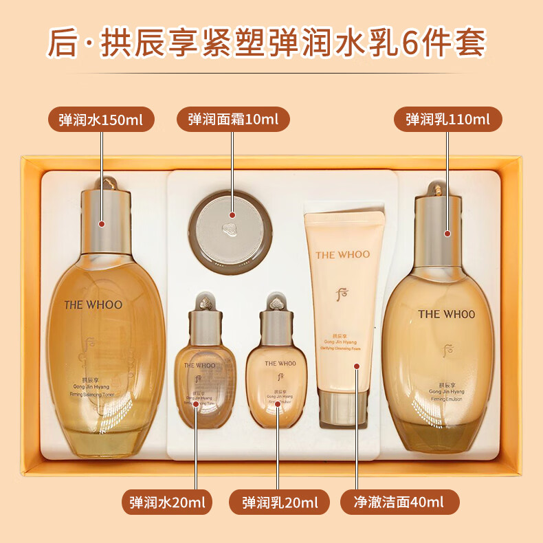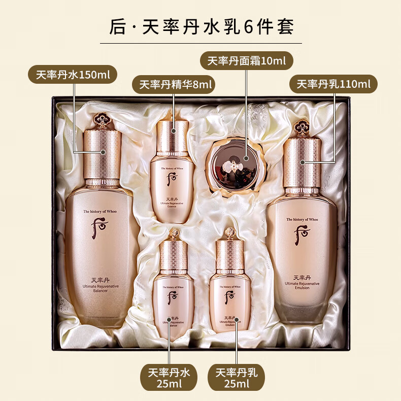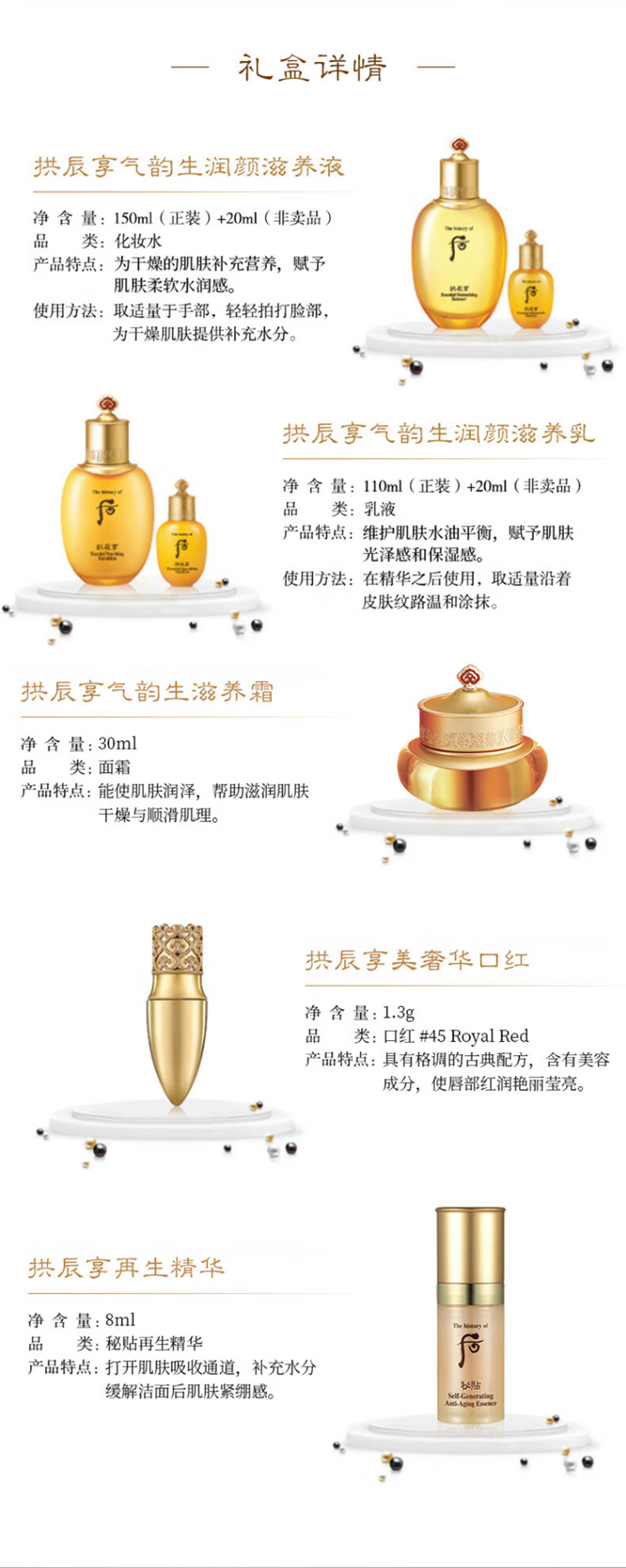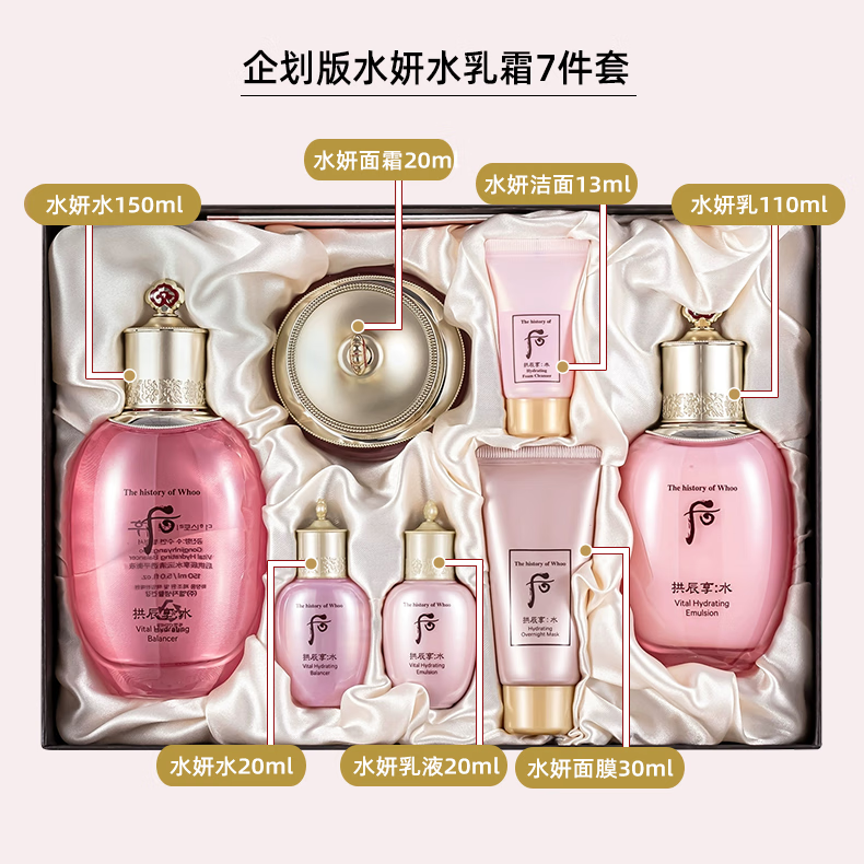 Hou (The history of Whoo) South Korea imported Hou suit weather elixir set box Shuiyan Gongchenxiang Snow Jade Condensation Gift Box Women's Skin Care Products Festival Gongchenxiang Water Lotion Air Cushion 7-piece set