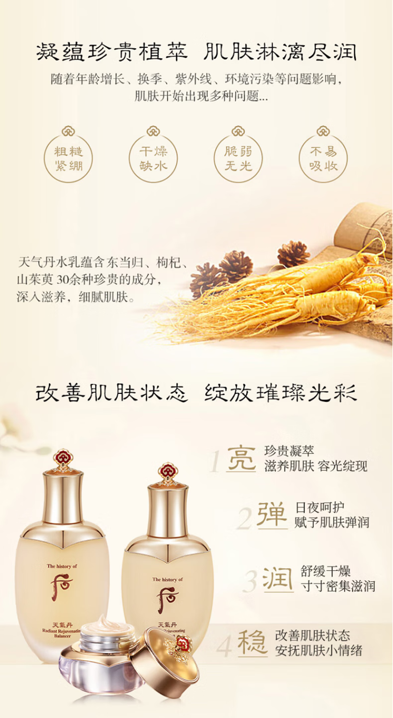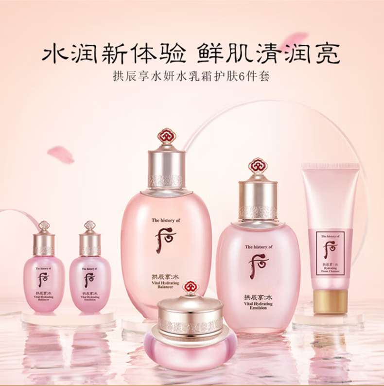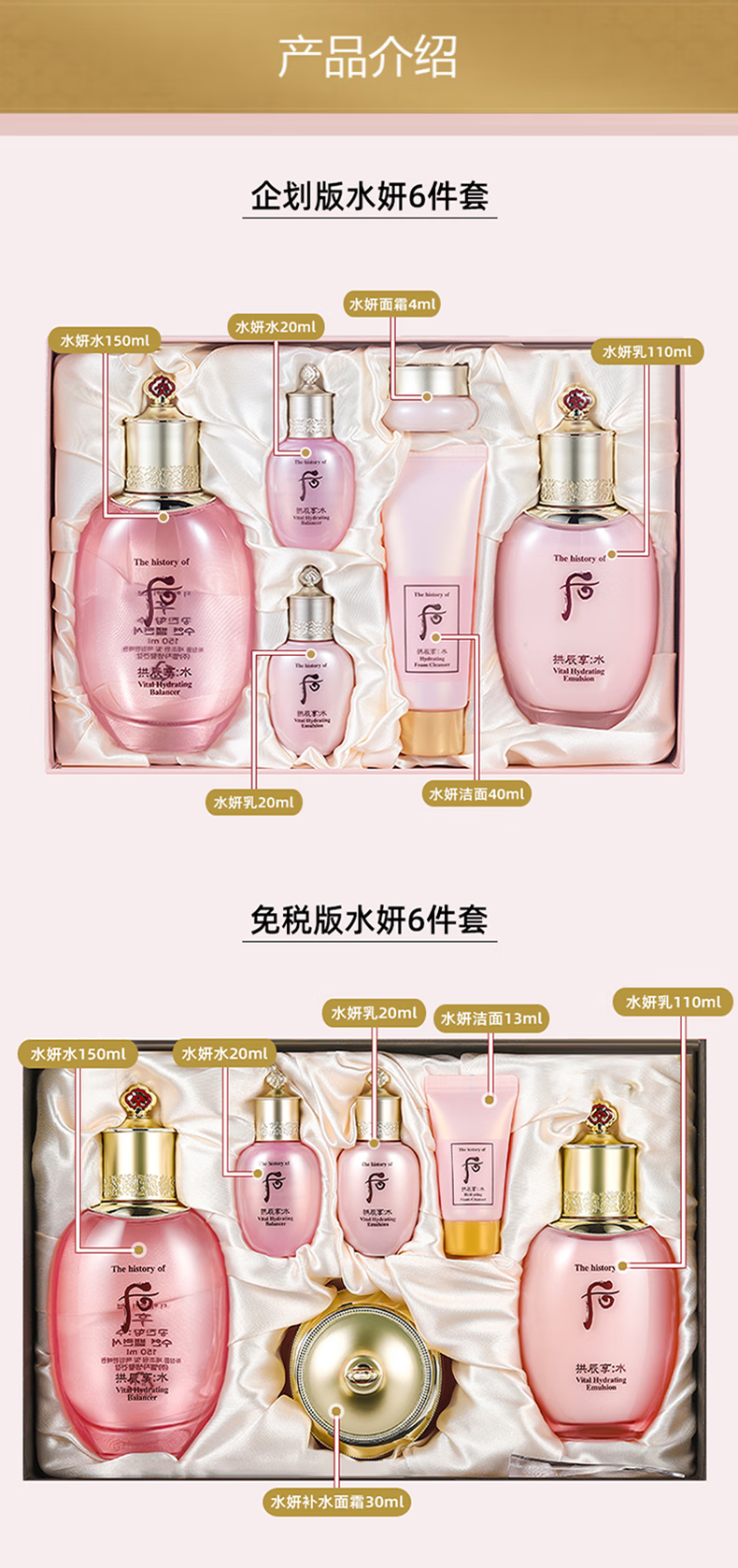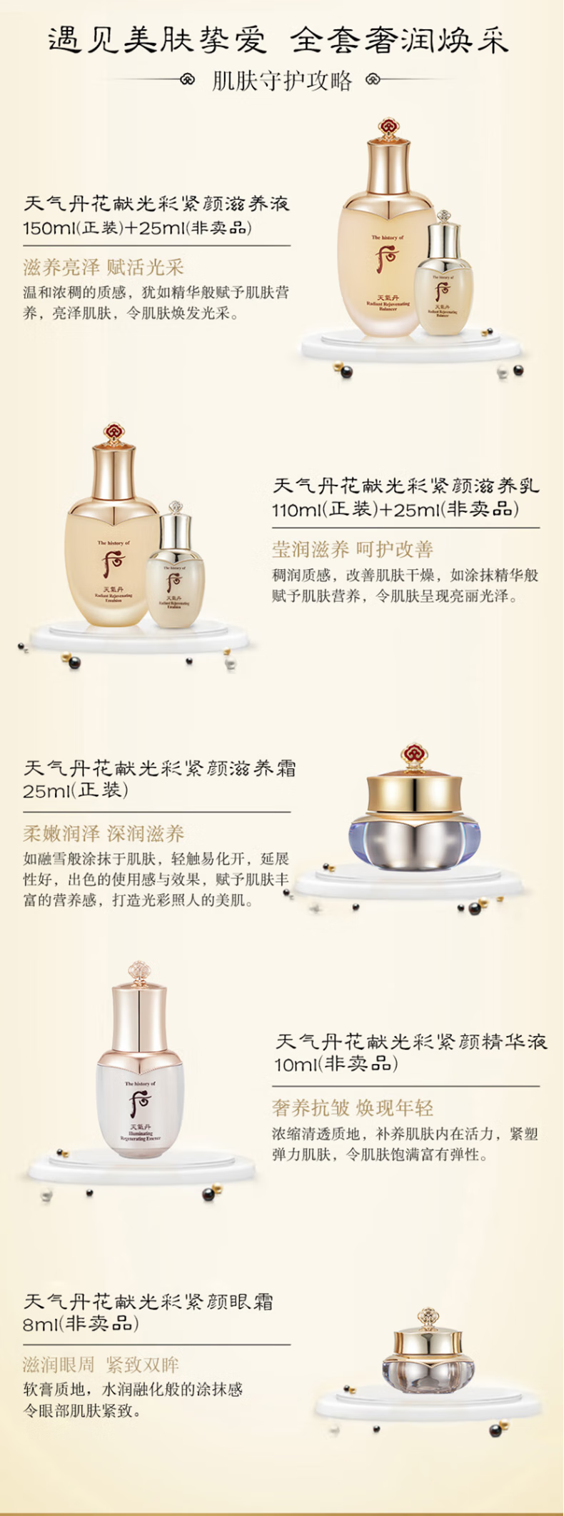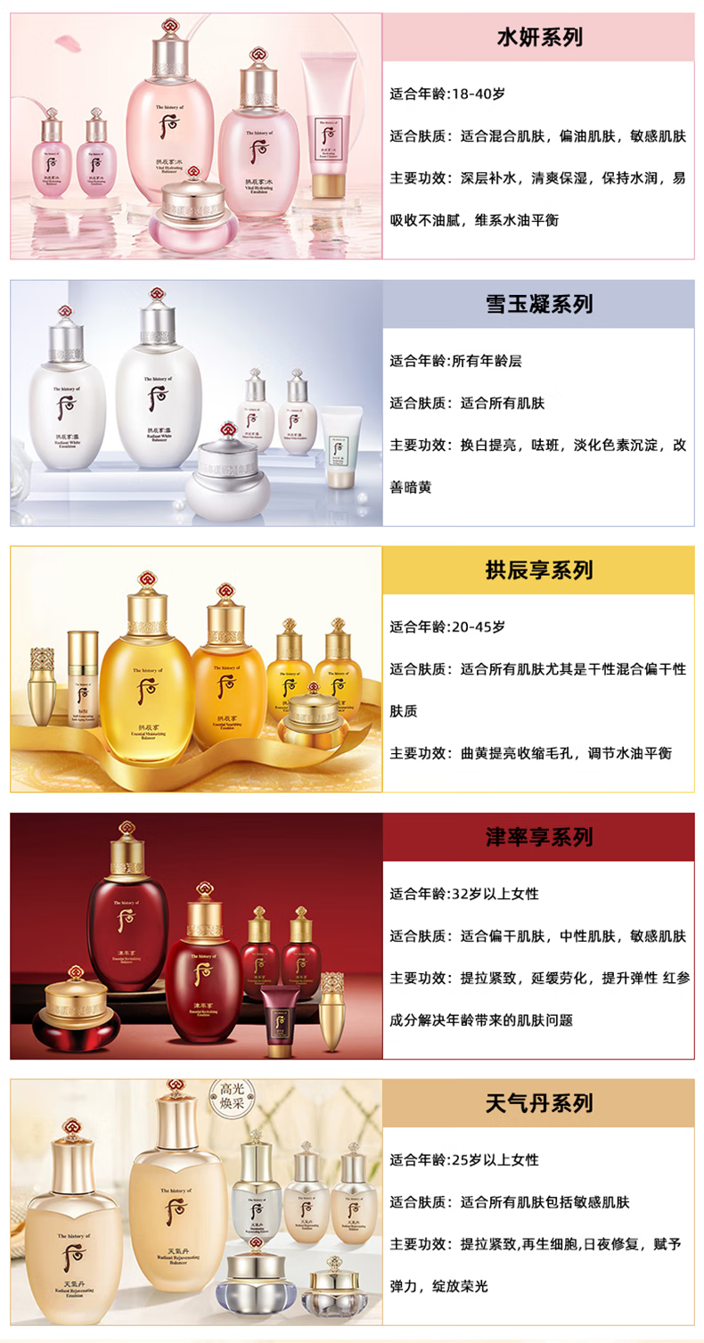 Hou (The history of Whoo) South Korea imported Hou suit weather elixir set box Shuiyan Gongchenxiang Snow Jade Condensation Gift Box Women's Skin Care Products Festival Gongchenxiang Water Lotion Air Cushion 7-piece set
