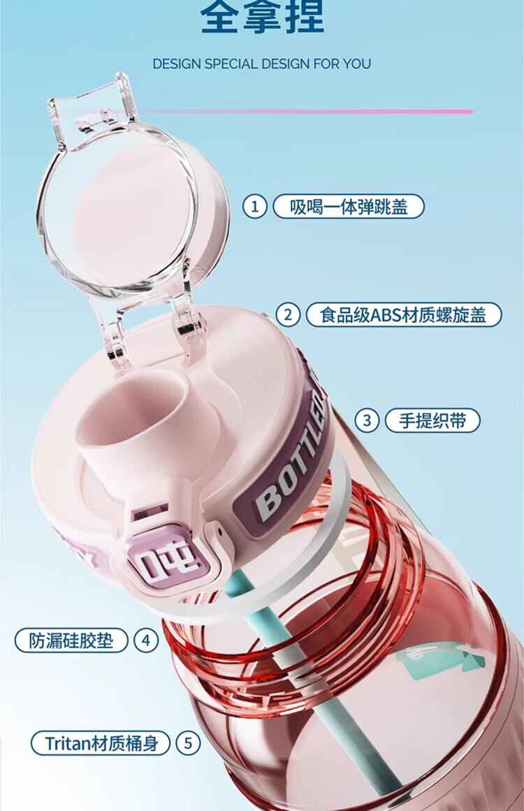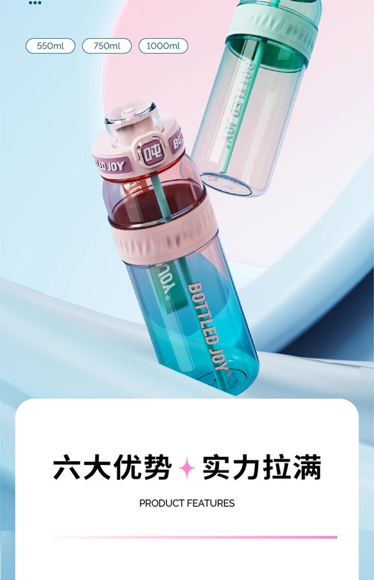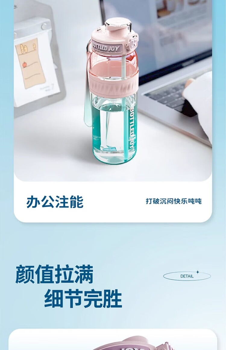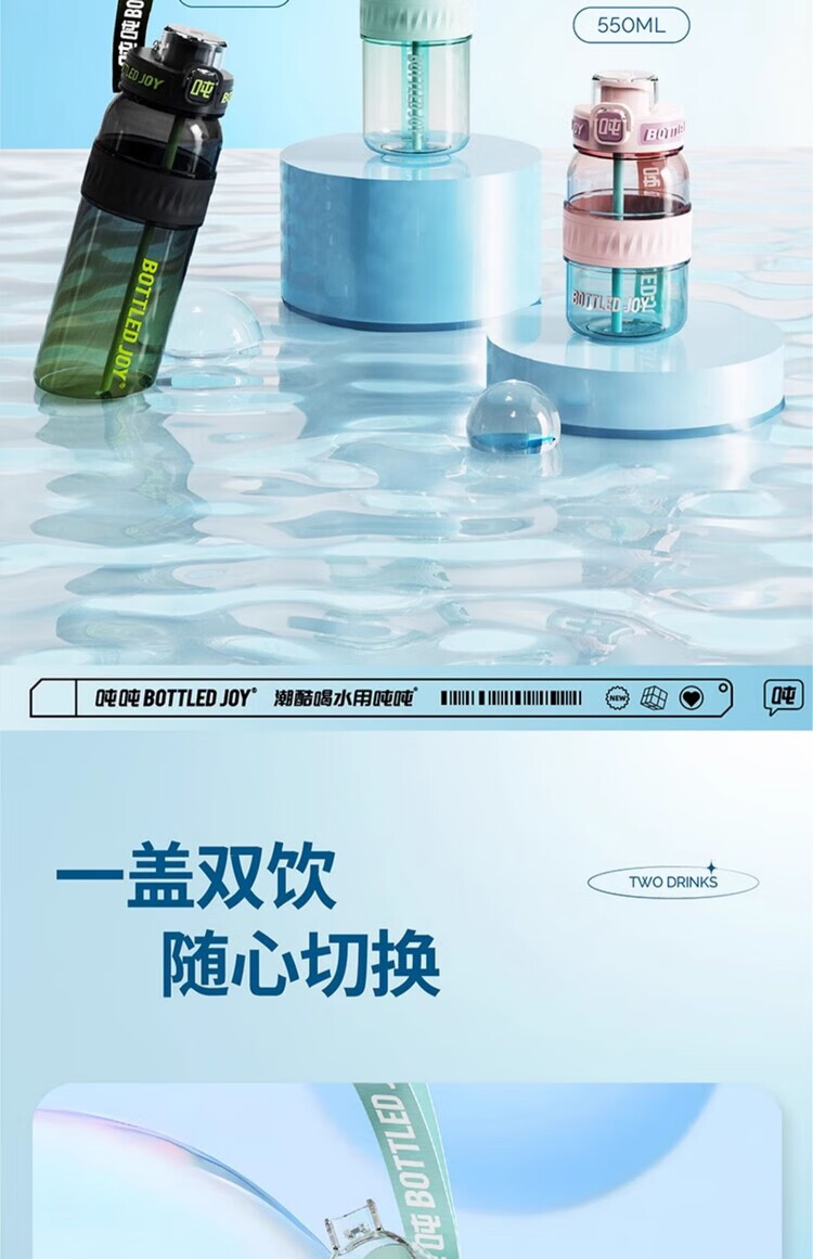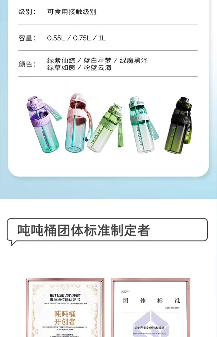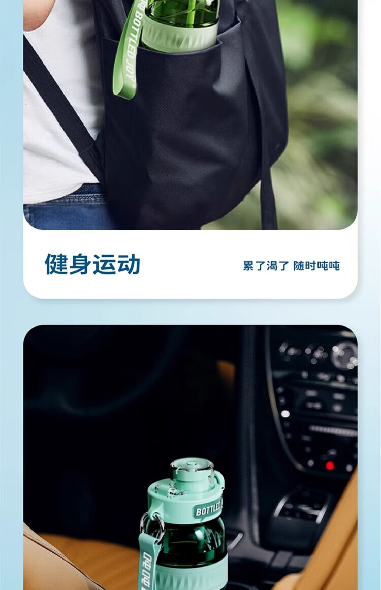 Ton ton Wang Yibo's same BOTTLED JOY slim and smooth ton ton gradient ton ton barrel dopamine large capacity portable cup Green Devil Blackpool-750ML 1L