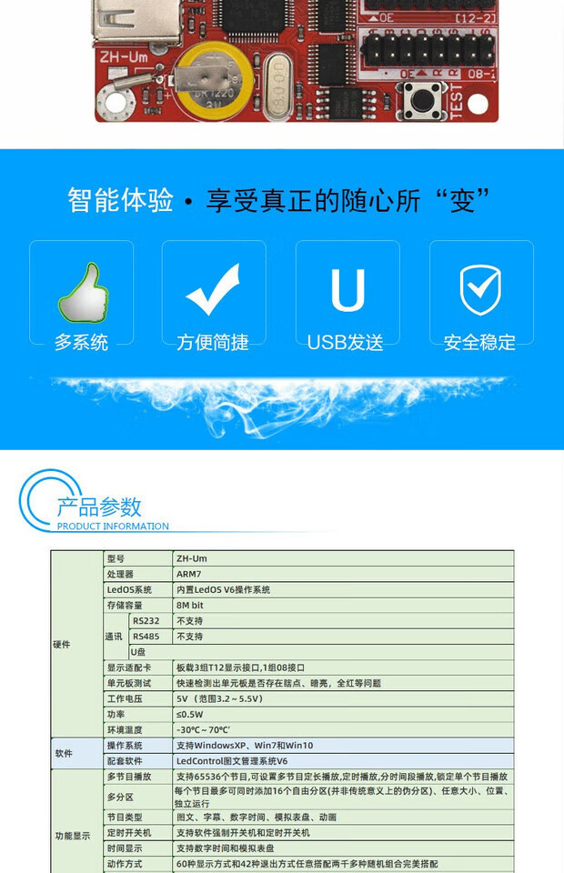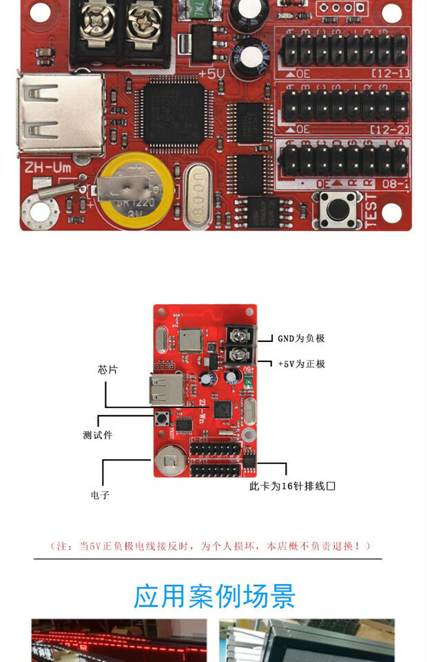 LED control card ZH-Un Um Uc UF U0 U1 U2 U3 U4 U5 U6 U7 Main board ZH-U7 If you need an adapter board, please contact