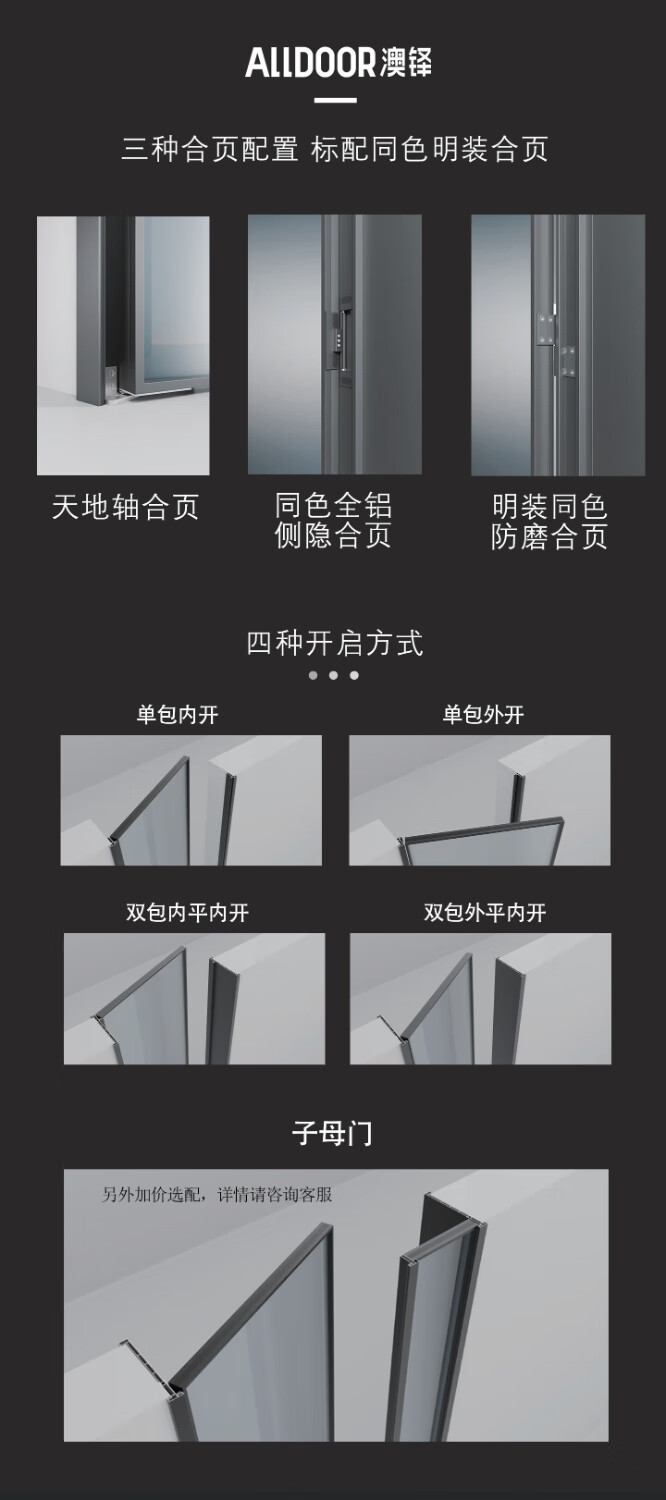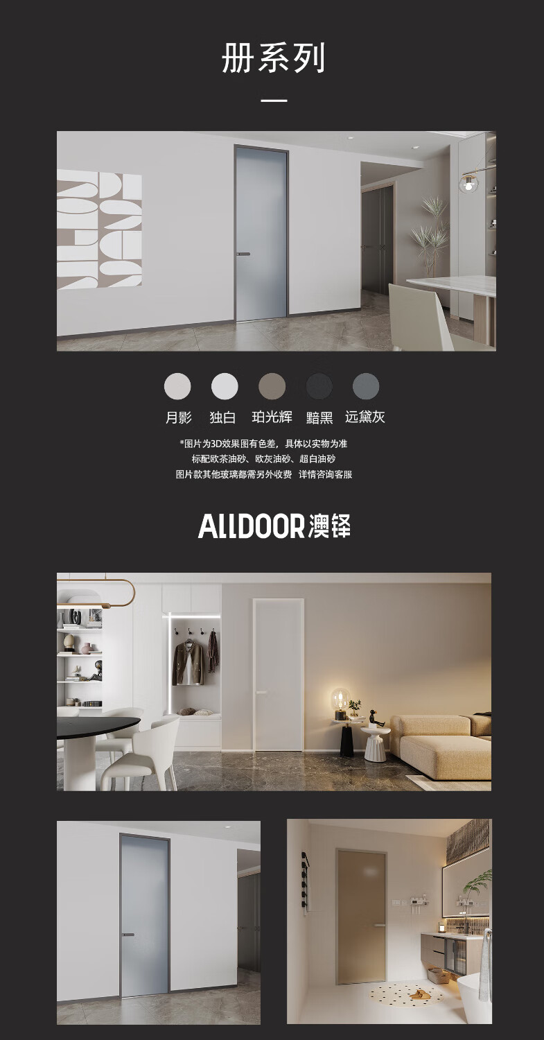Aoduo Aoduo glass swing door kitchen bathroom titanium magnesium alloy bathroom door book series extremely narrow frame/set dark black single cover
