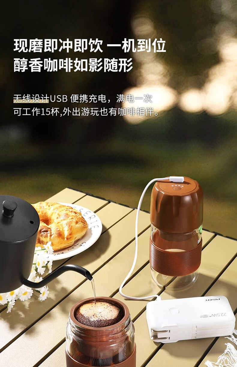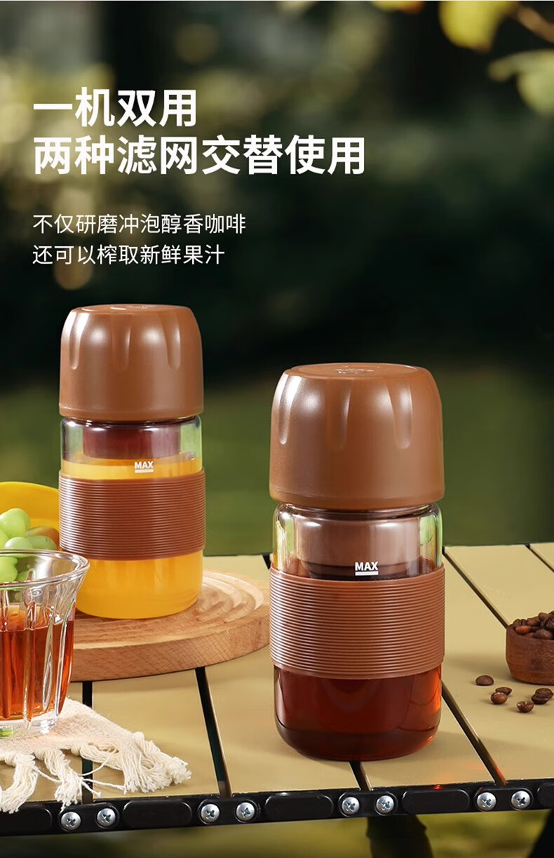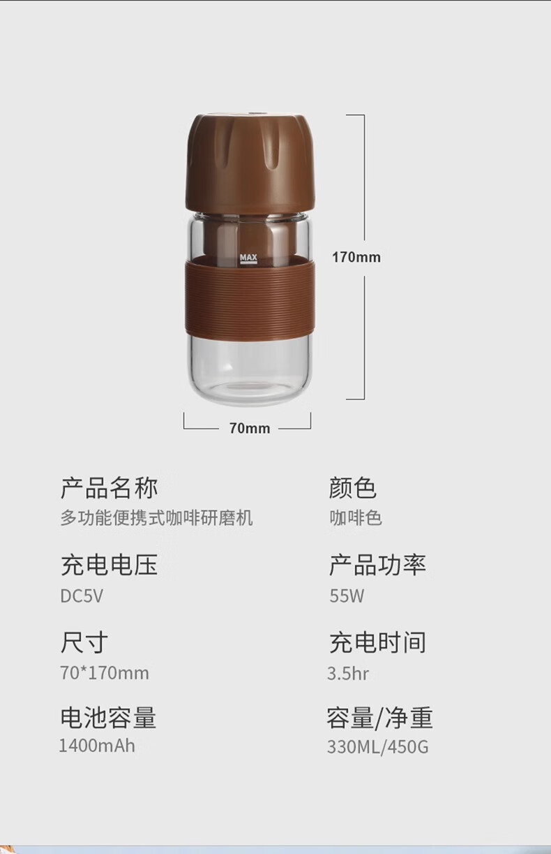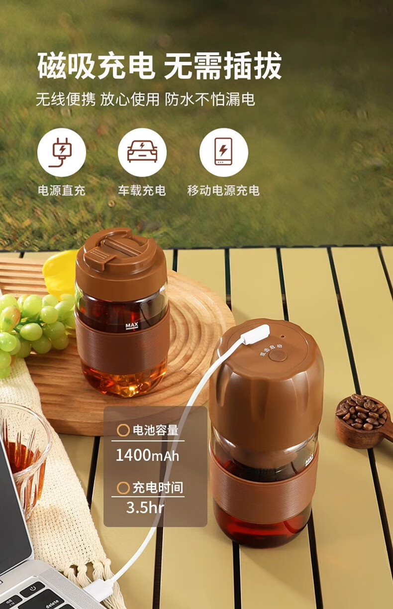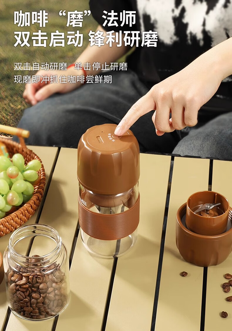 MONDINO Electric Bean Grinder Portable Grinding and Brewing Cup Coffee Bean Grinder Outdoor Coffee Cup Juicer Brown