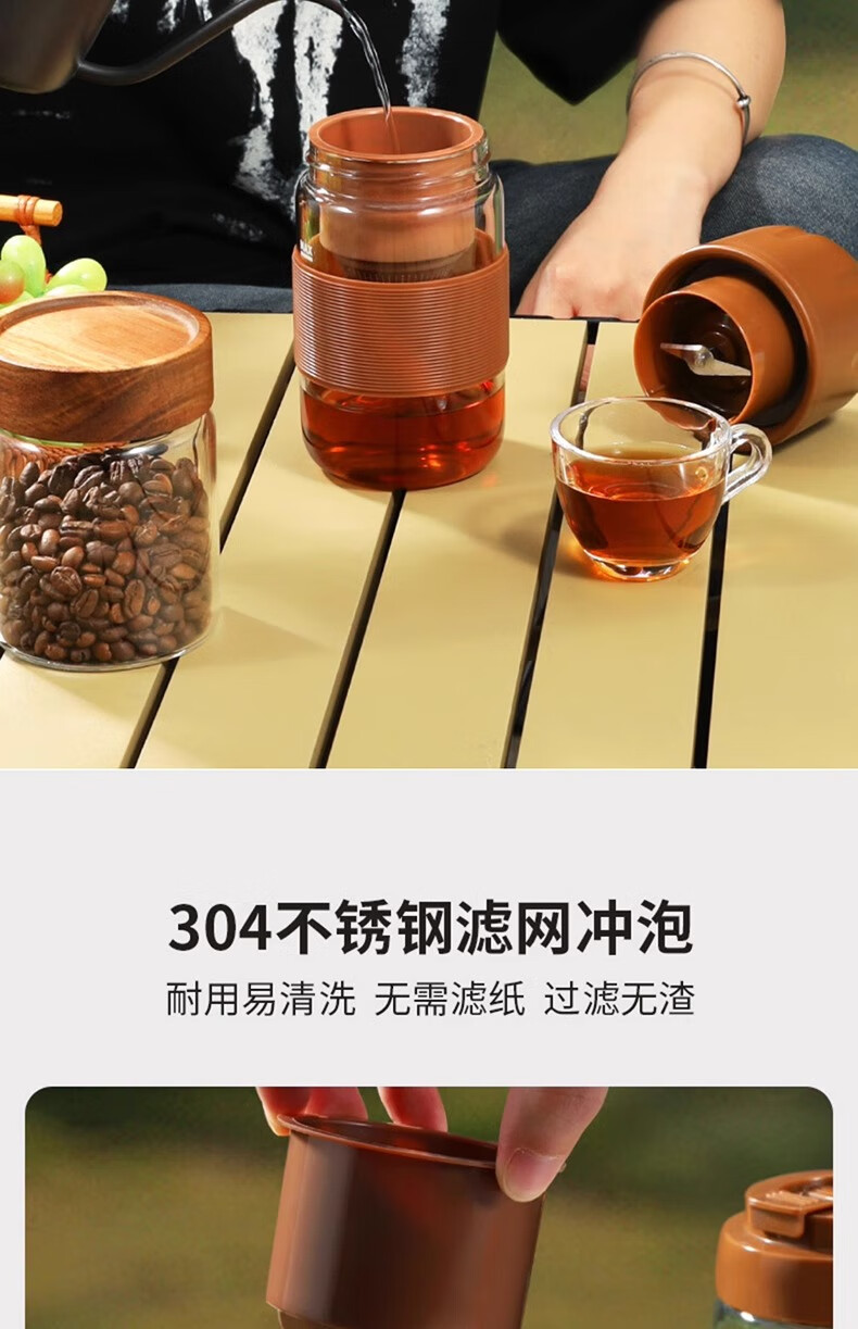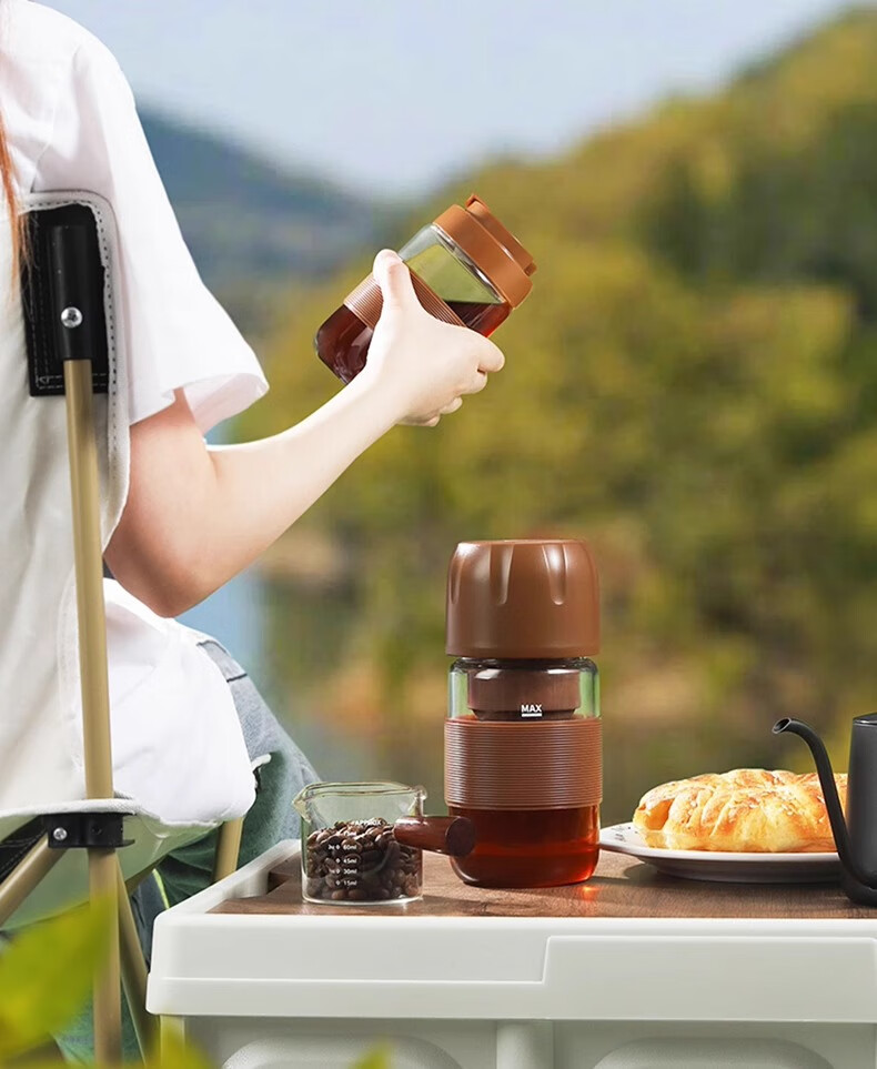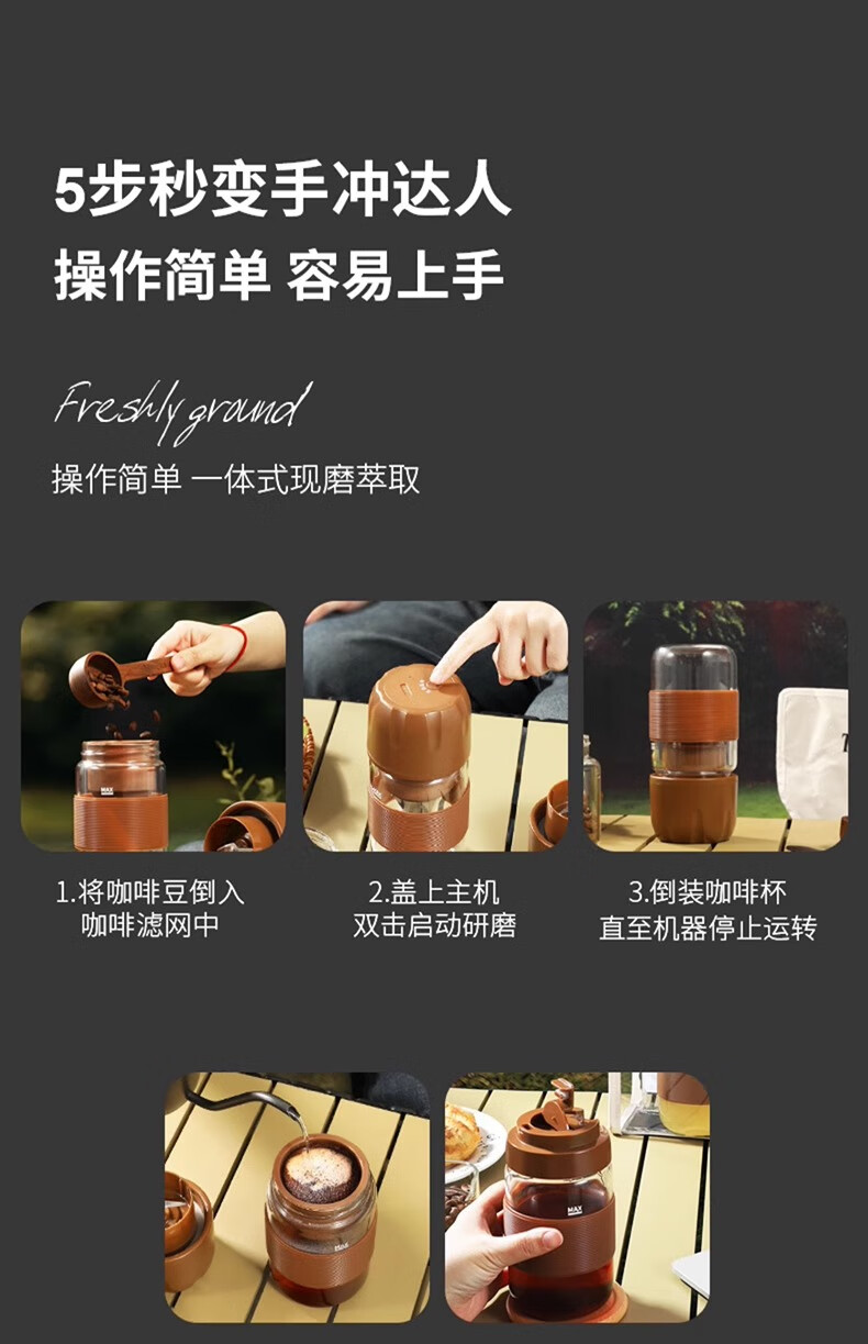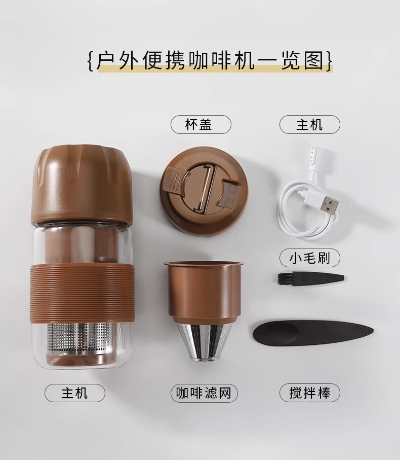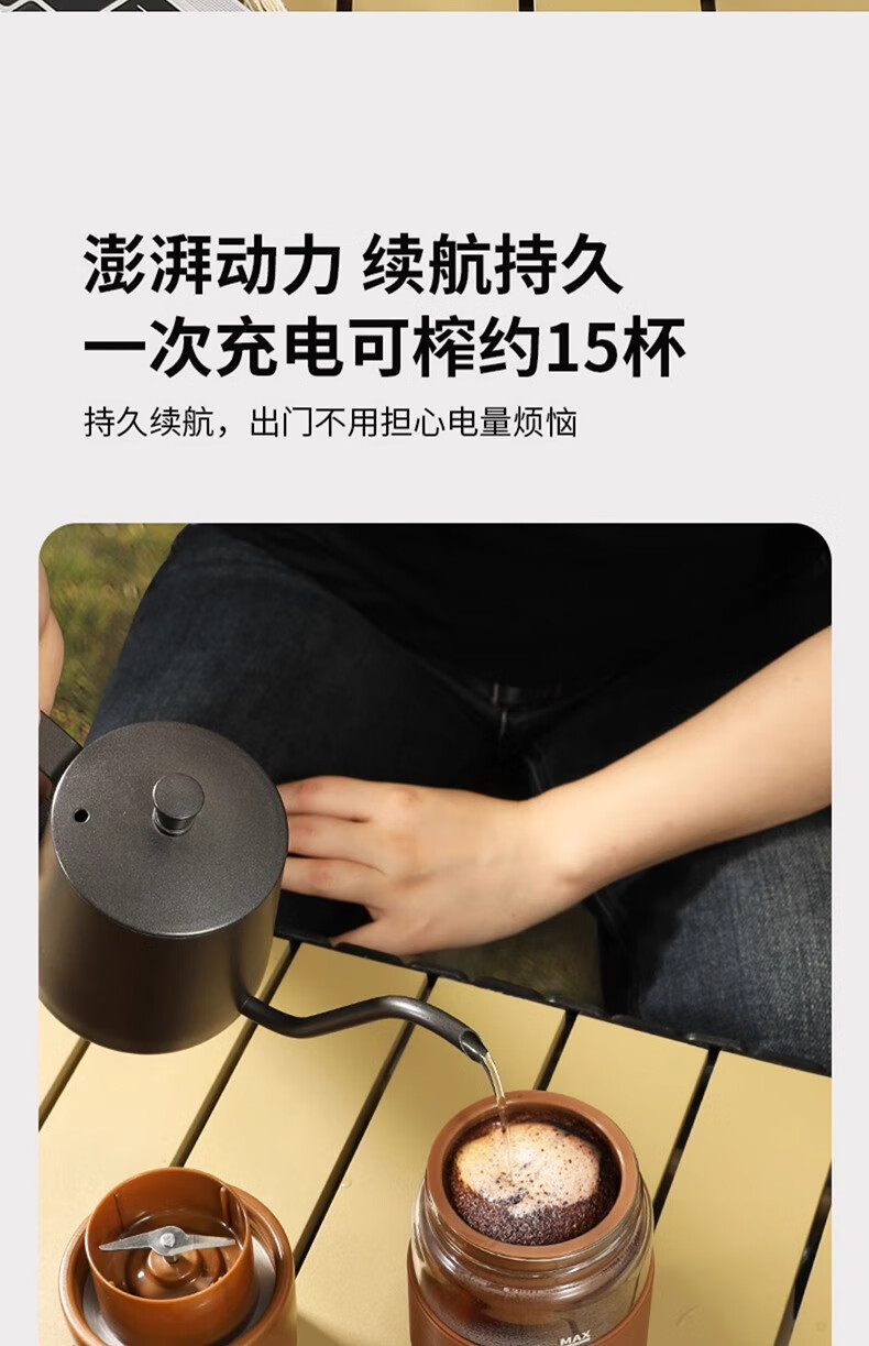 MONDINO Electric Bean Grinder Portable Grinding and Brewing Cup Coffee Bean Grinder Outdoor Coffee Cup Juicer Brown