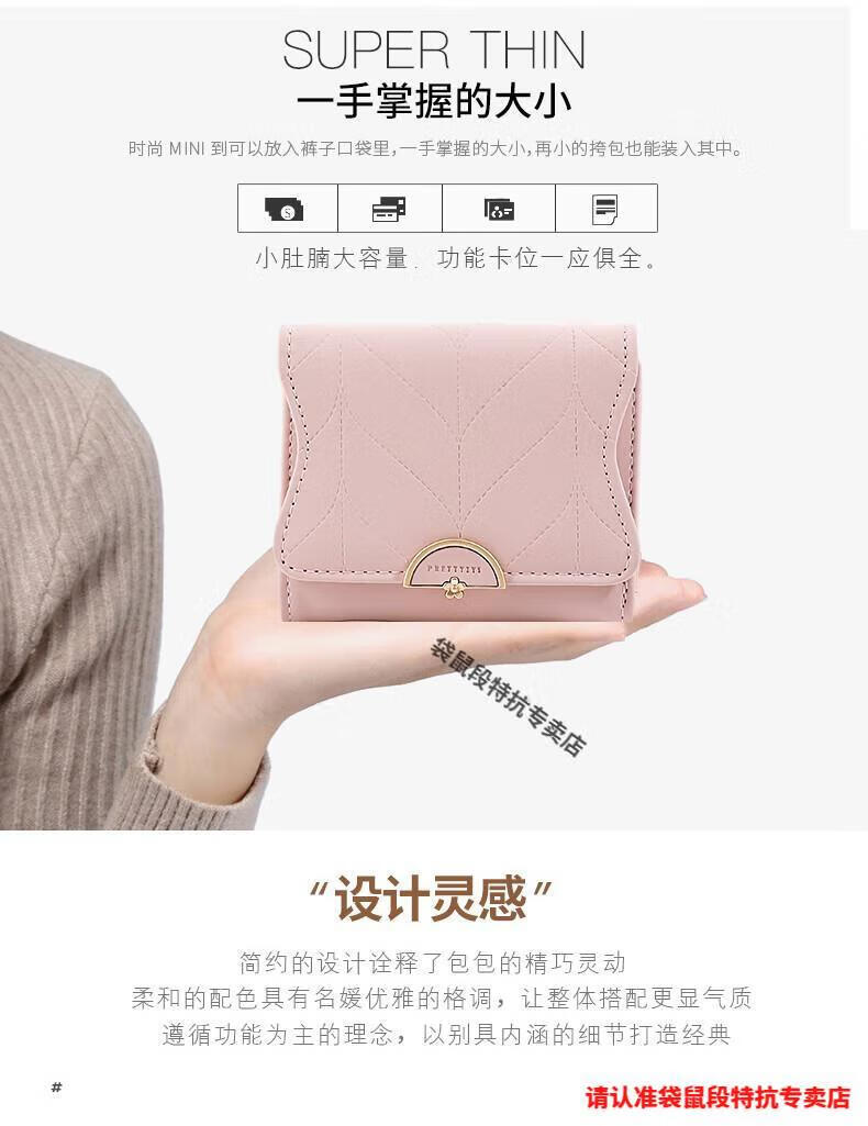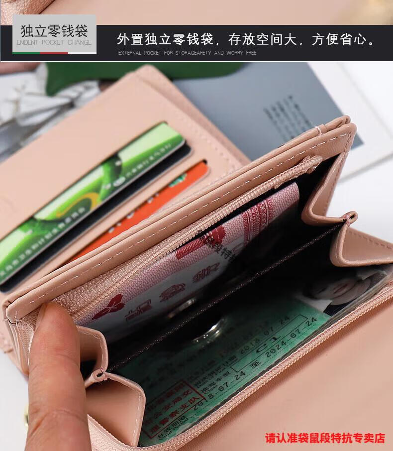 Kangaroo (KANGAROO) small wallet new niche design student Korean version small fresh card holder folding coin purse female small mini pink