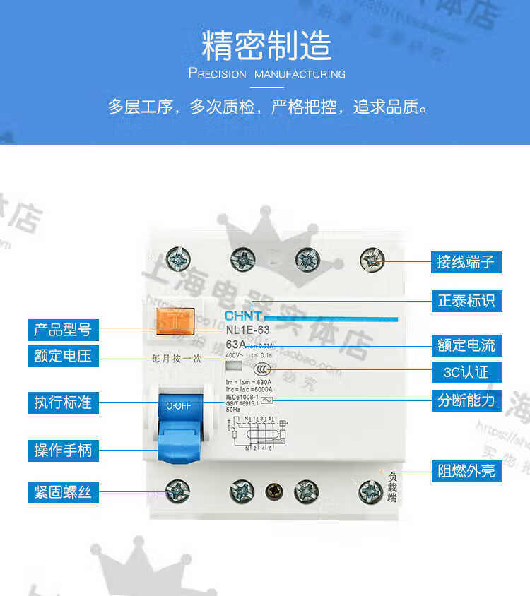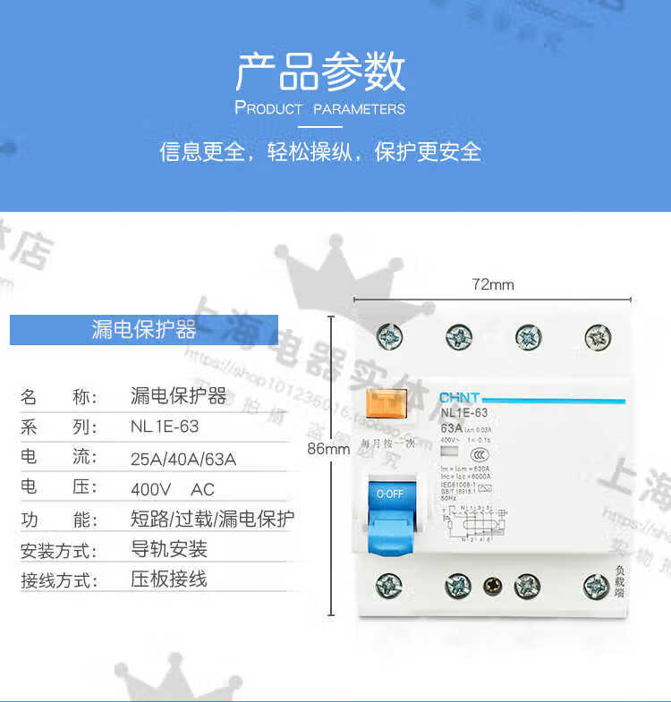 Leakage protector NL1E-63 1P+N (3P+N) 25A 40A 63A three-phase four-wire leakage protector 63A 3P+N