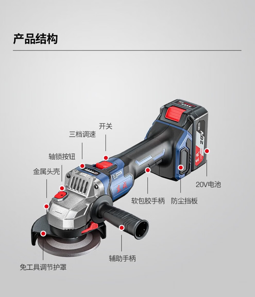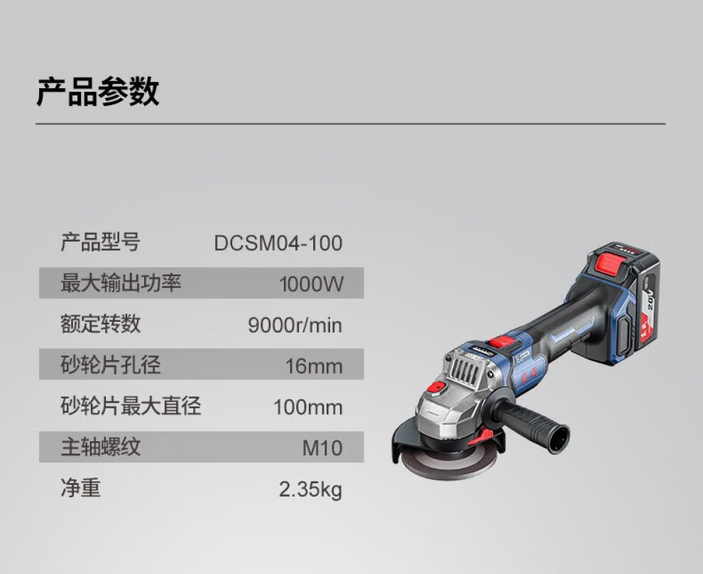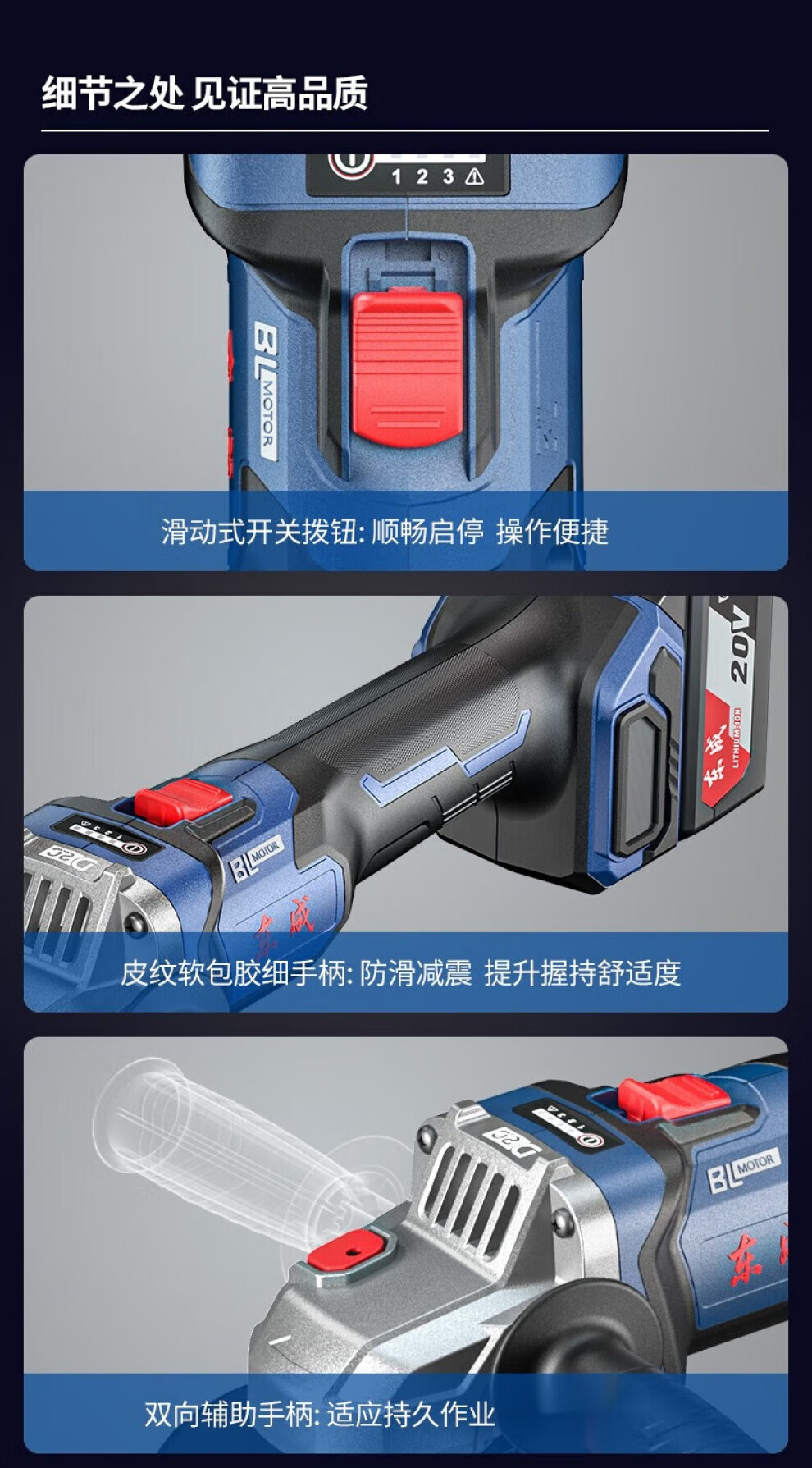Dongcheng Charging is a brushless fine handle angle grinder, 20V lithium battery angle grinder, speed-adjustable multi-functional cutting and grinding machine DCSM04-100 (Z type) bare metal