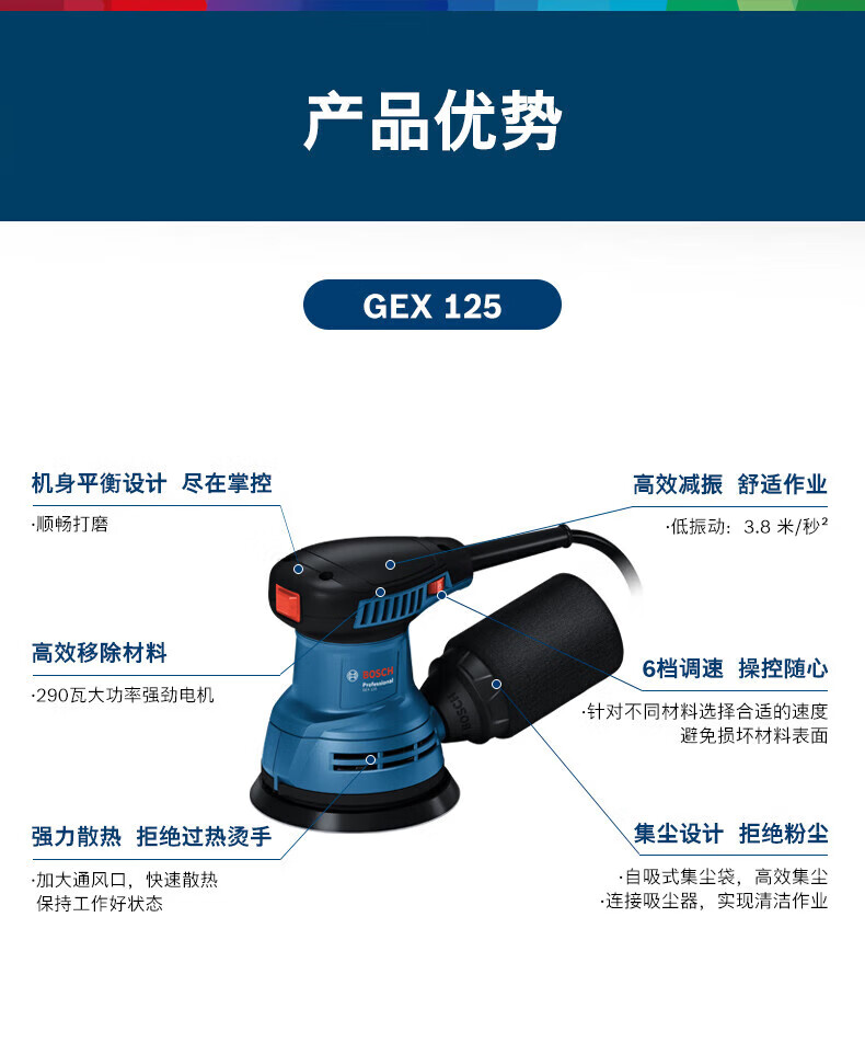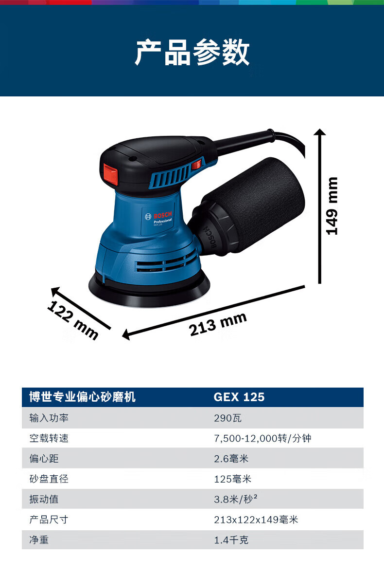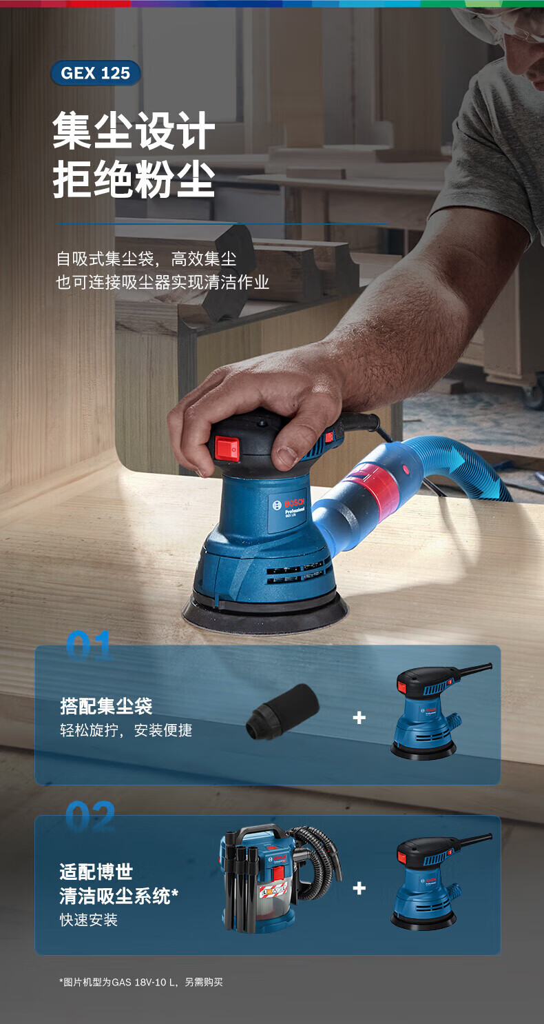 Bosch (BOSCH) eccentric sander GEX125 sander speed-adjustable sandpaper machine grinder polisher vacuum power tool GEX125 eccentric sander